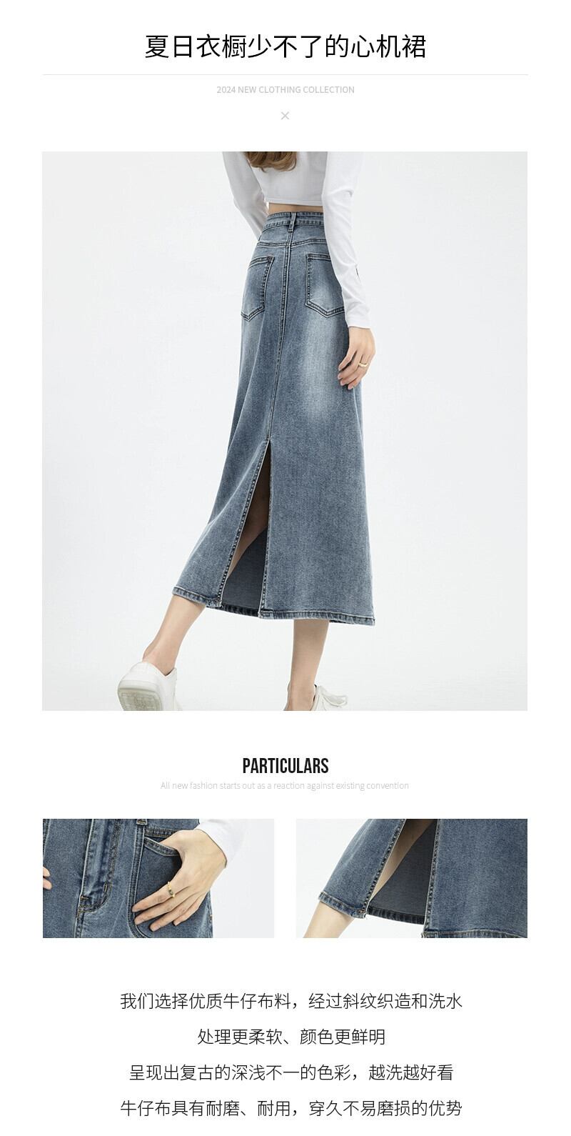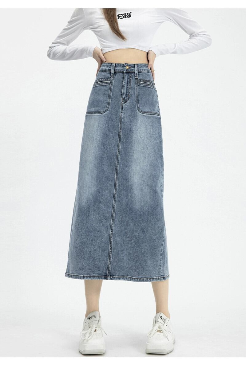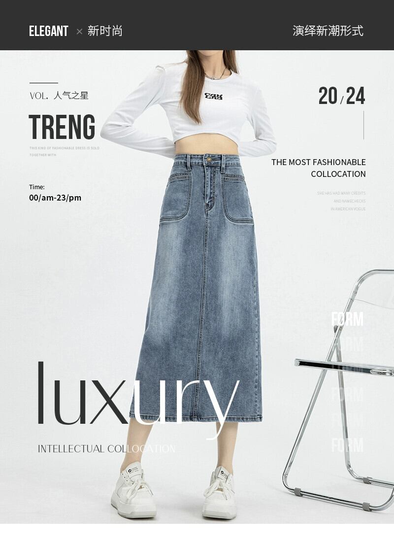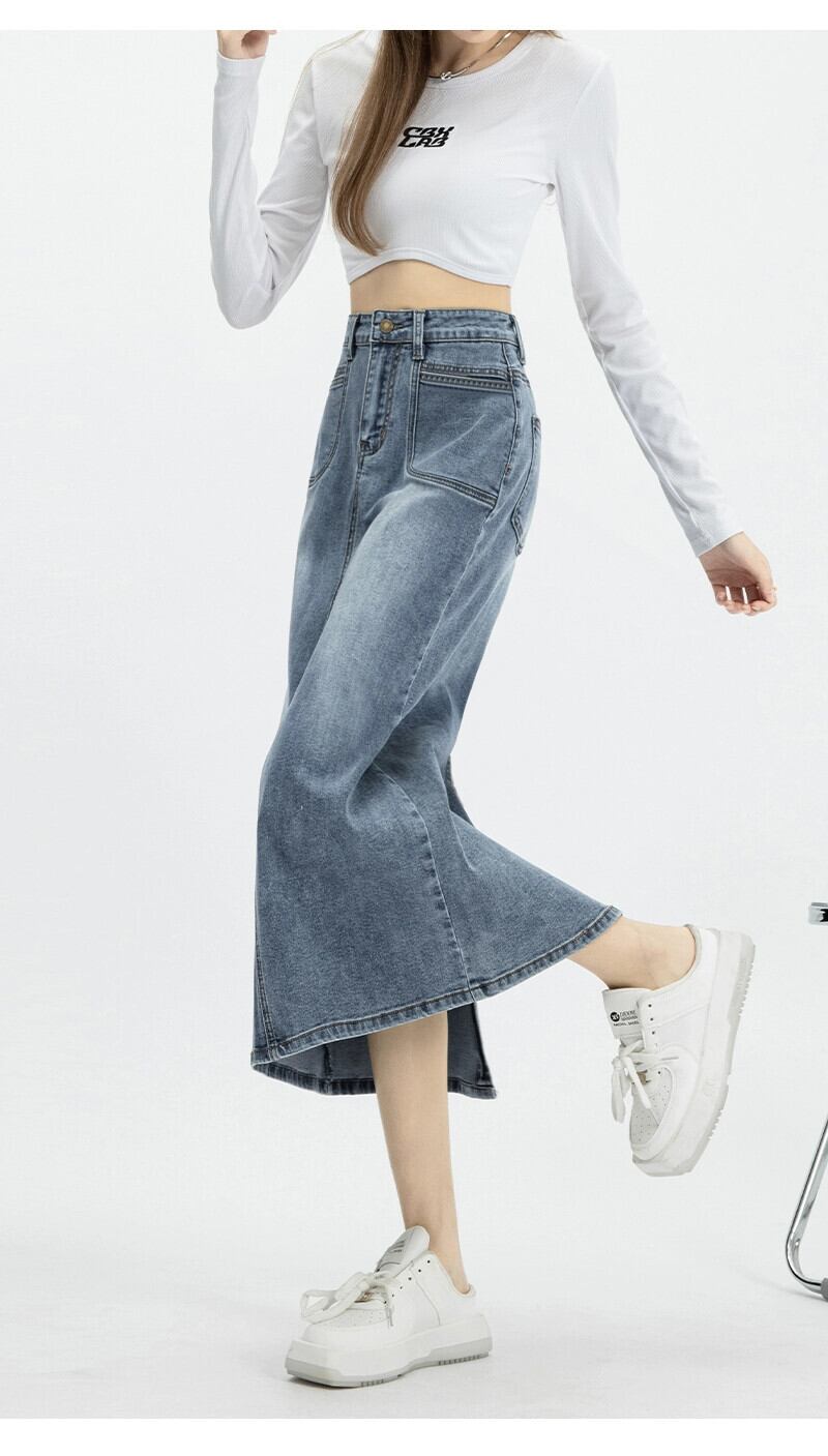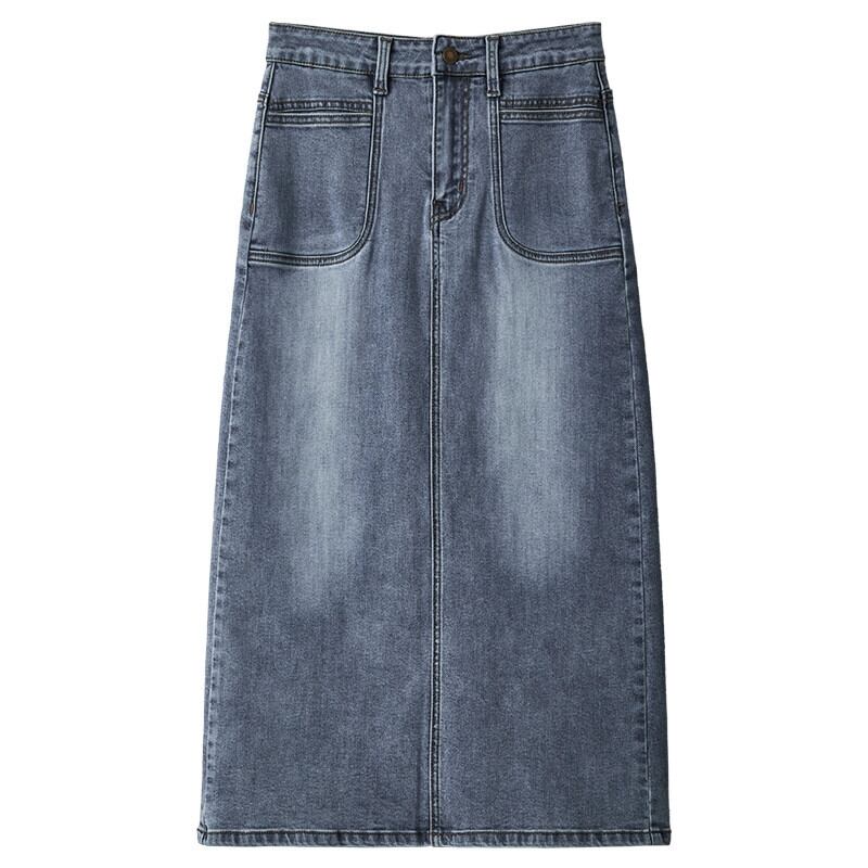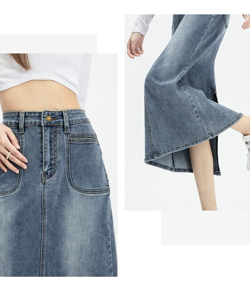 バックスリットデニムスカートレディース、春と秋のレトロなヒップカバー、ハイウエスト、スリムストレートAラインミッドレングスのヒップカバースカート スプリング 春物 オータム 秋物 7460069460284214 | framboise21