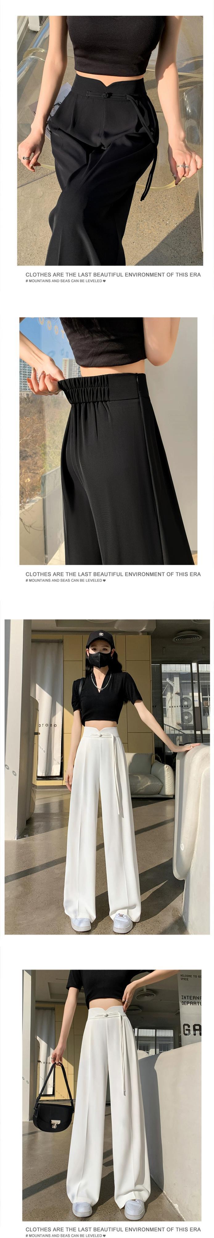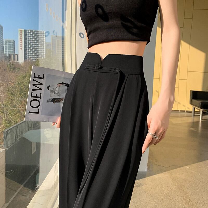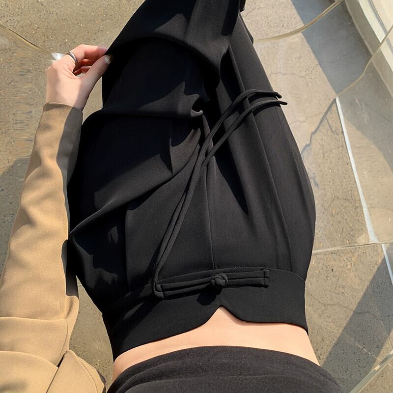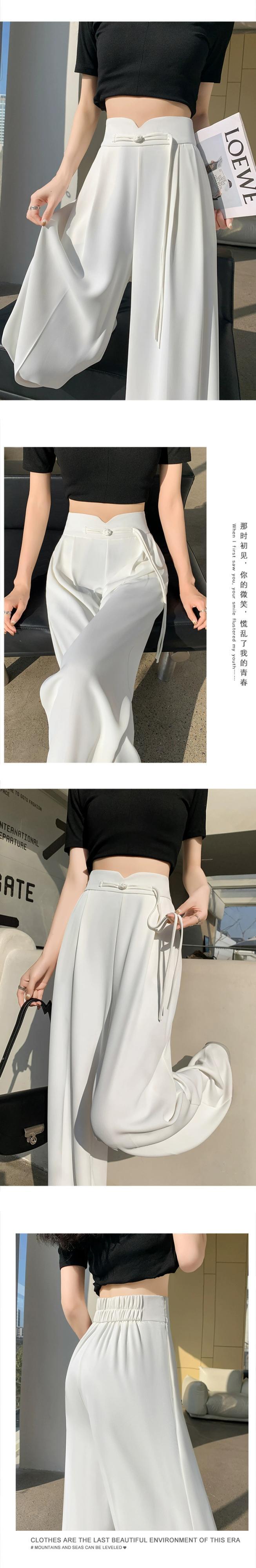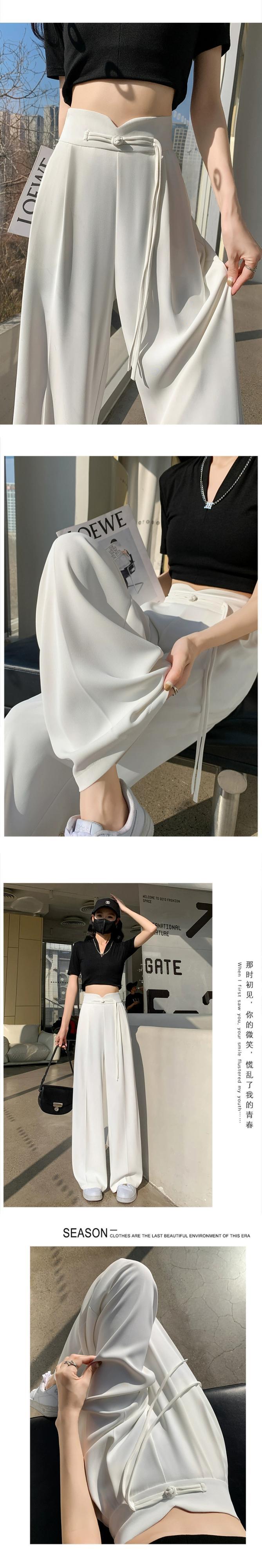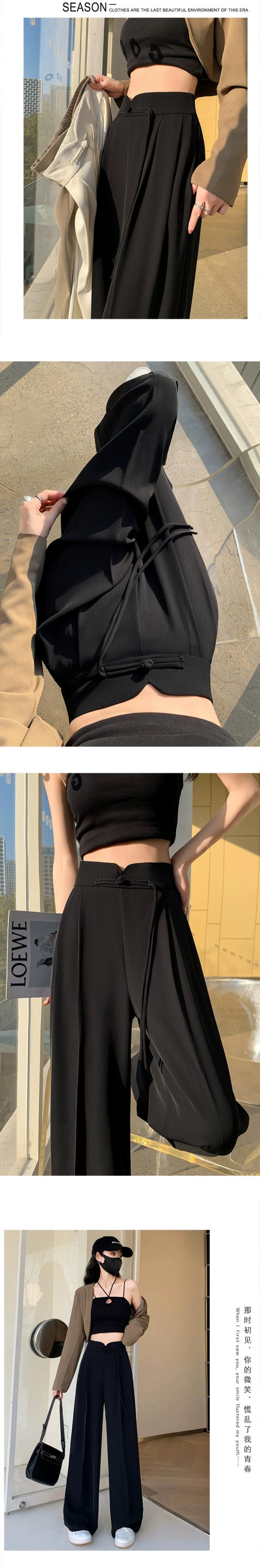 中国風の中国風のボタン付きズボンの女性、春と秋のカジュアルなストレートレッグスーツパンツ、ルーズでスリム、ハイウエストでドレープのあるワイドレッグパンツ スプリング 春物 オータム 秋物 7460075873015565 | framboise21