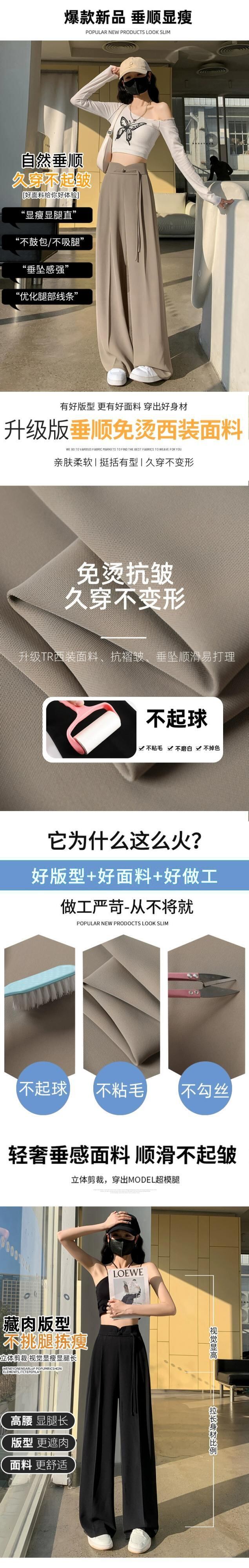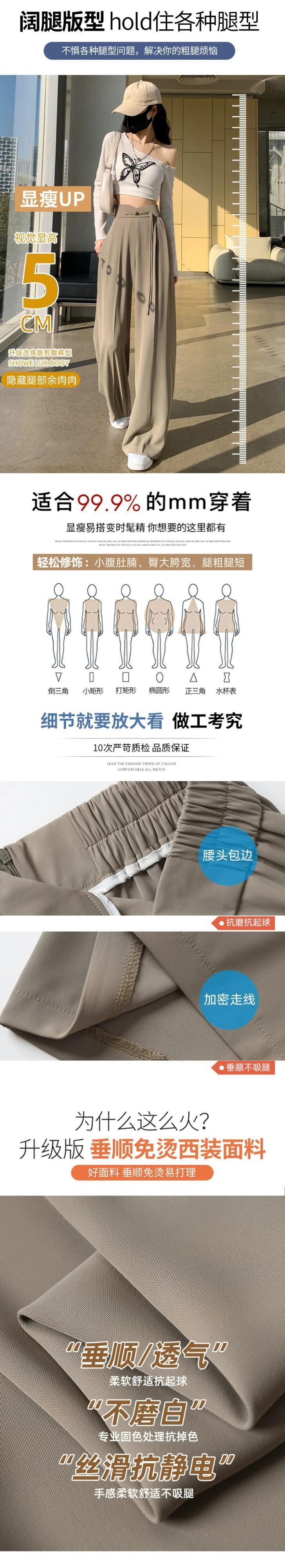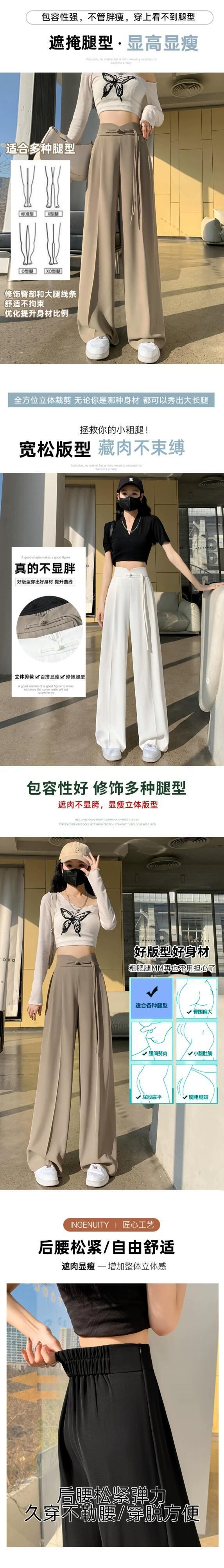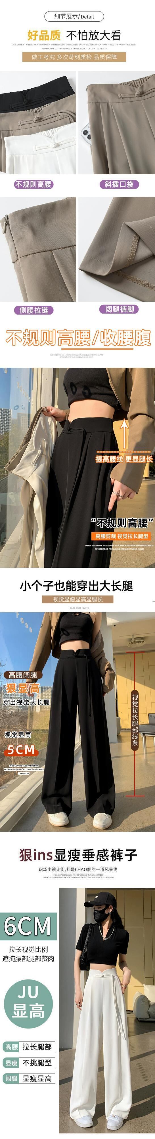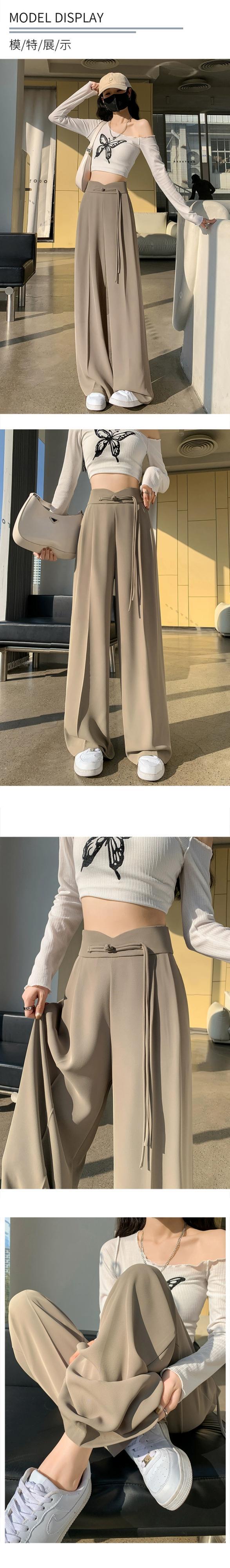 中国風の中国風のボタン付きズボンの女性、春と秋のカジュアルなストレートレッグスーツパンツ、ルーズでスリム、ハイウエストでドレープのあるワイドレッグパンツ スプリング 春物 オータム 秋物 7460075873015565 | framboise21
