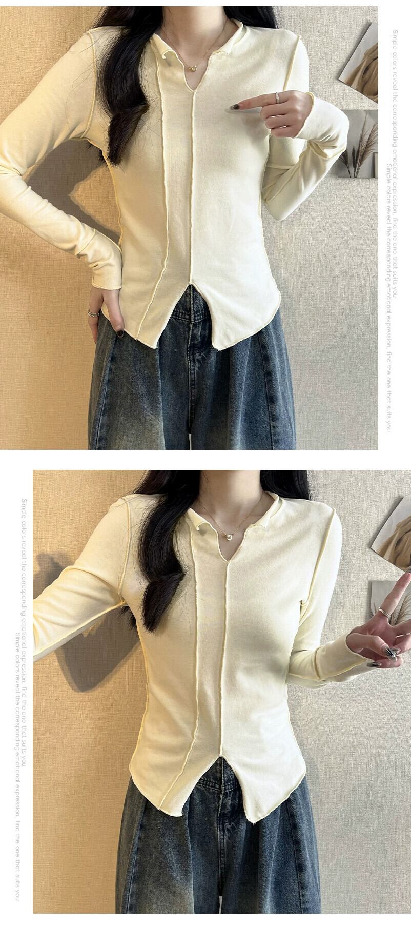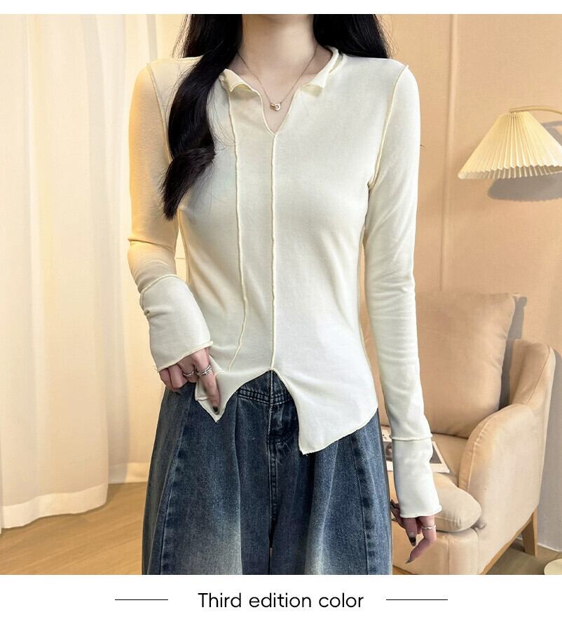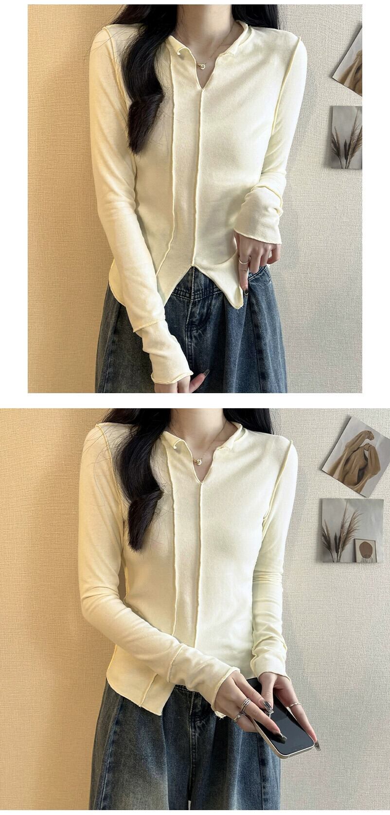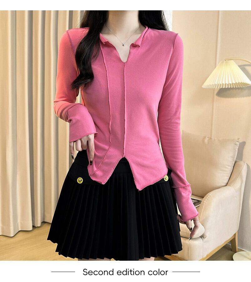 黒長袖トップ女性 2024 春と秋の新デザインニッチシックなスリムフィットインナーコットン v ネック tシャツ ロング ブラック スプリング 春物 オータム 秋物 Vネック 7460015044935949 | framboise21