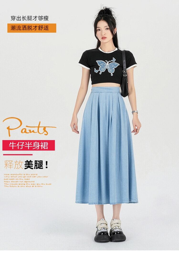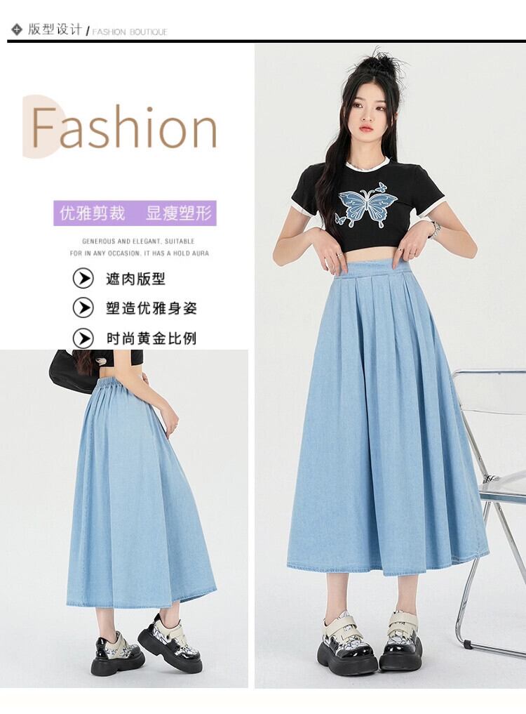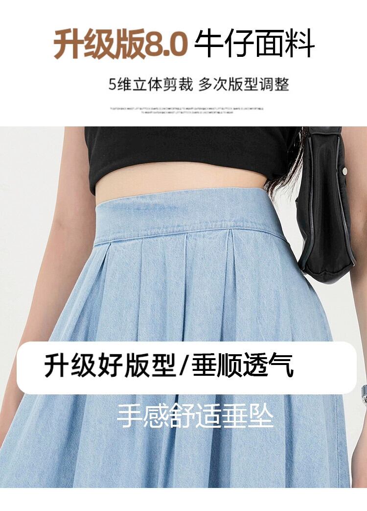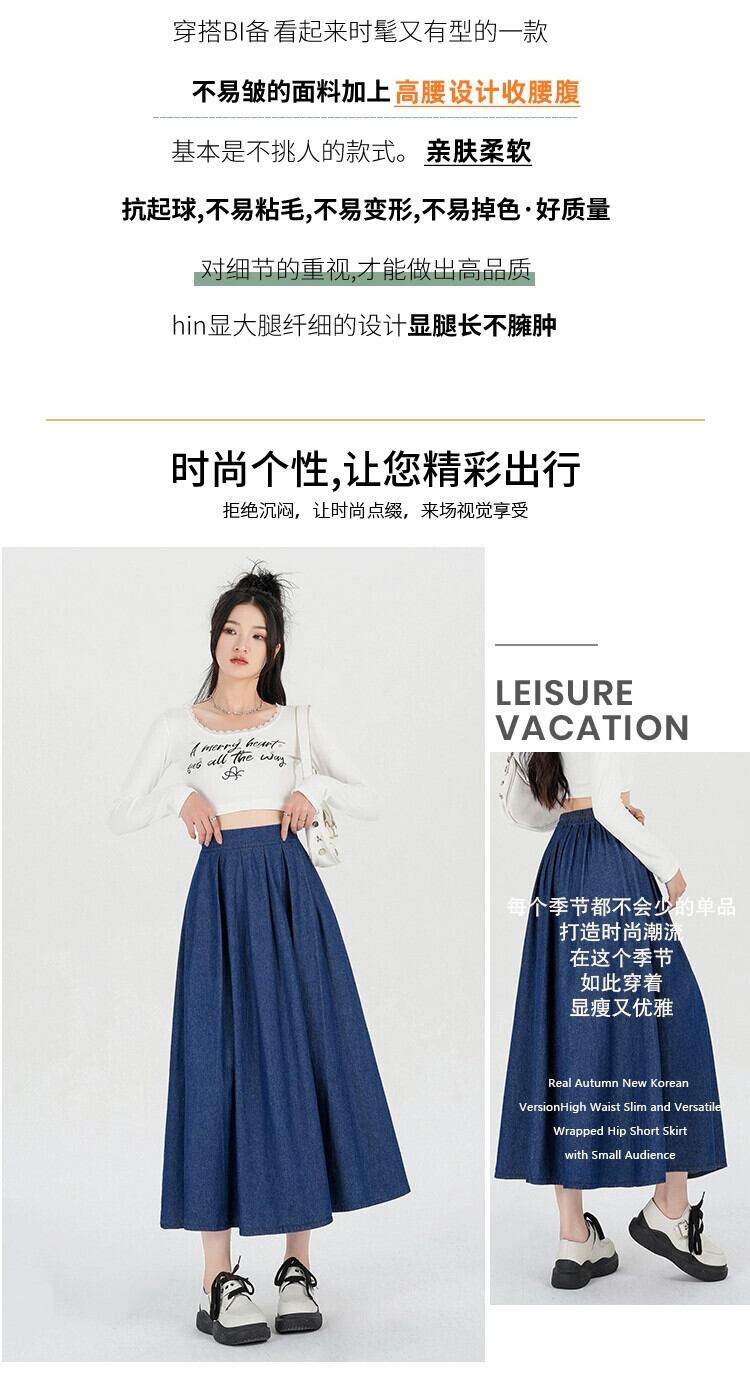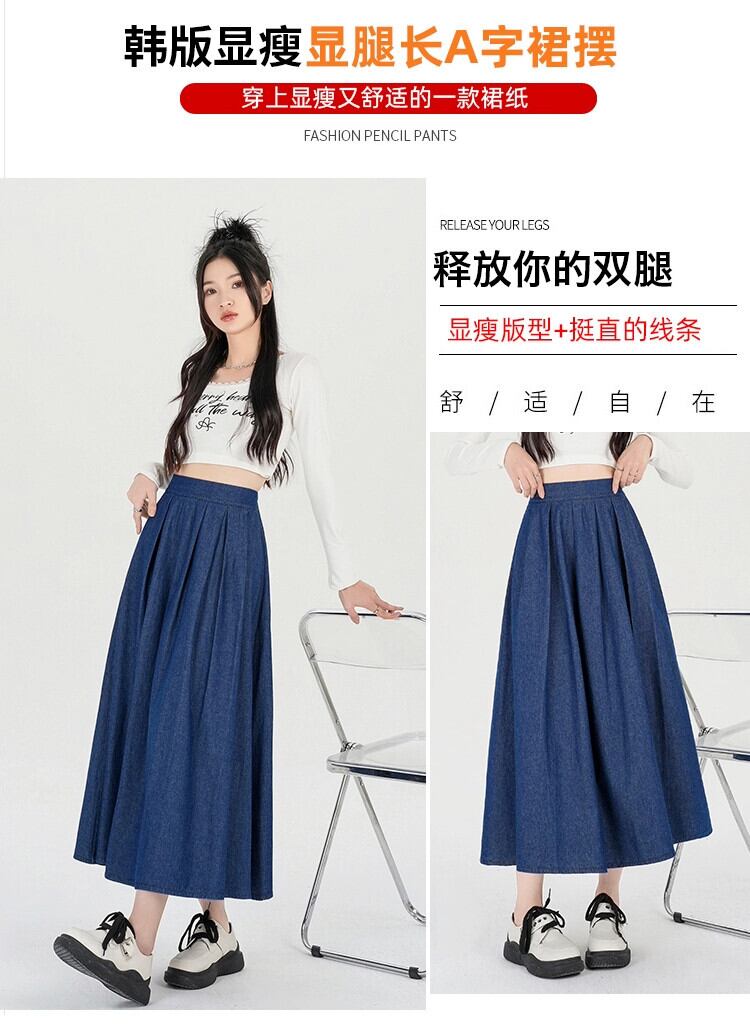 レトロブルー a ラインデニムスカート女性 2024 春と秋の新作ハイウエストスリムミッドレングスプリーツ大スイングアンブレラスカート スプリング 春物 オータム 秋物 Aライン 7460032560741979 | framboise21