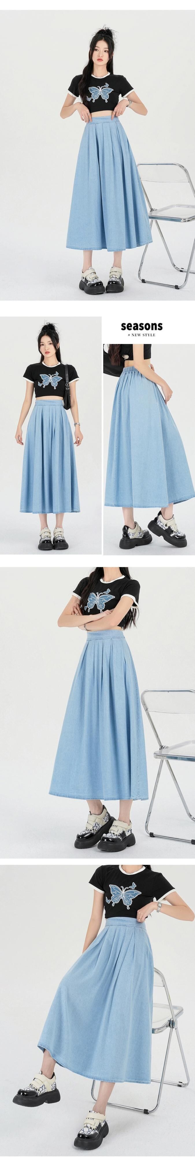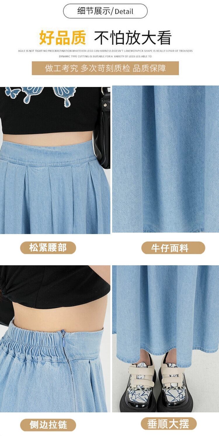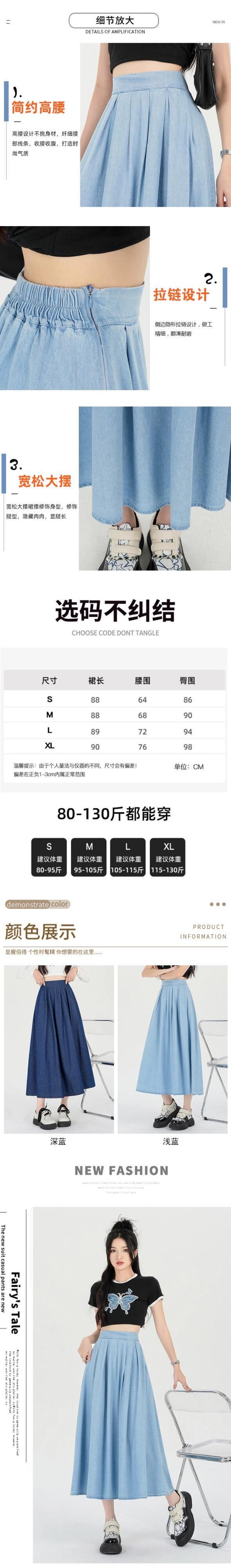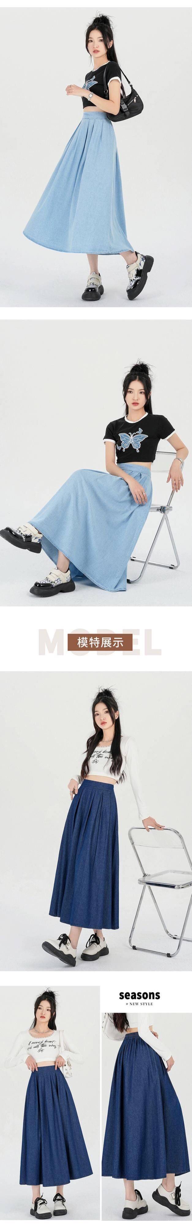 レトロブルー a ラインデニムスカート女性 2024 春と秋の新作ハイウエストスリムミッドレングスプリーツ大スイングアンブレラスカート スプリング 春物 オータム 秋物 Aライン 7460032560741979 | framboise21