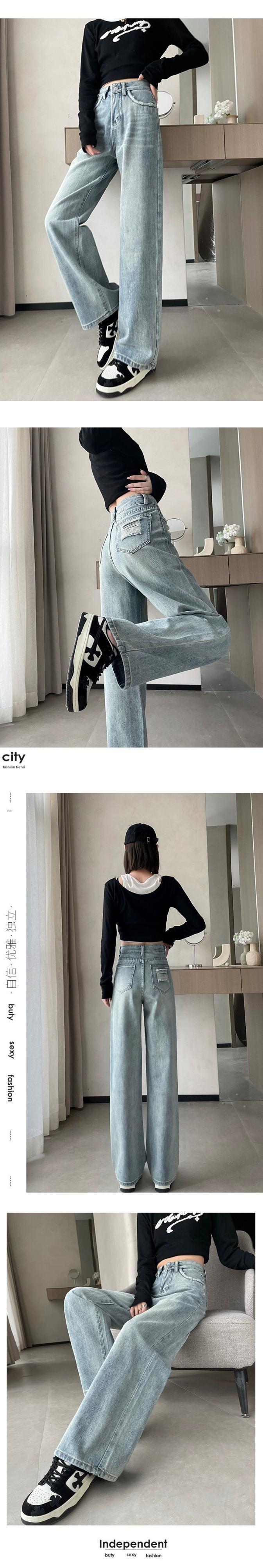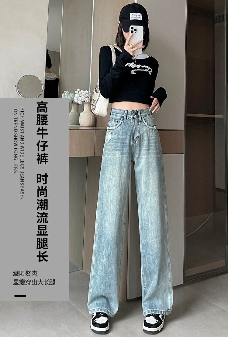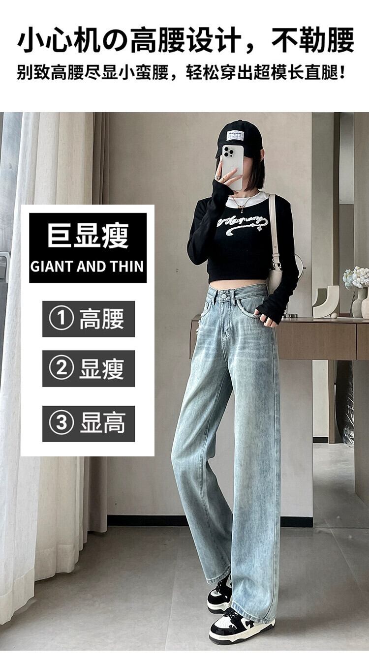 ライトカラーのローエッジハイウエストジーンズ女性 2024 春と秋の新作ルーズ痩身ドレープ床長さの狭いワイドレッグパンツ レッド スプリング 春物 オータム 秋物 7460030204176704 | framboise21