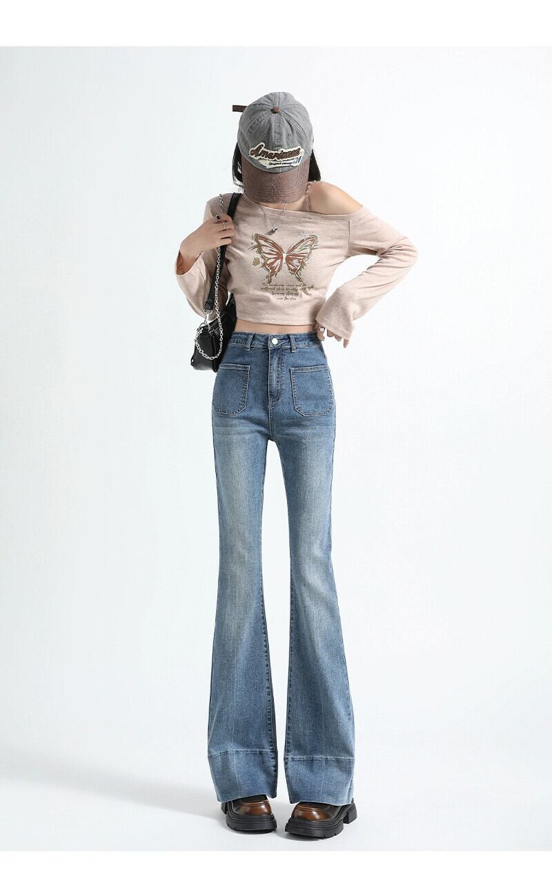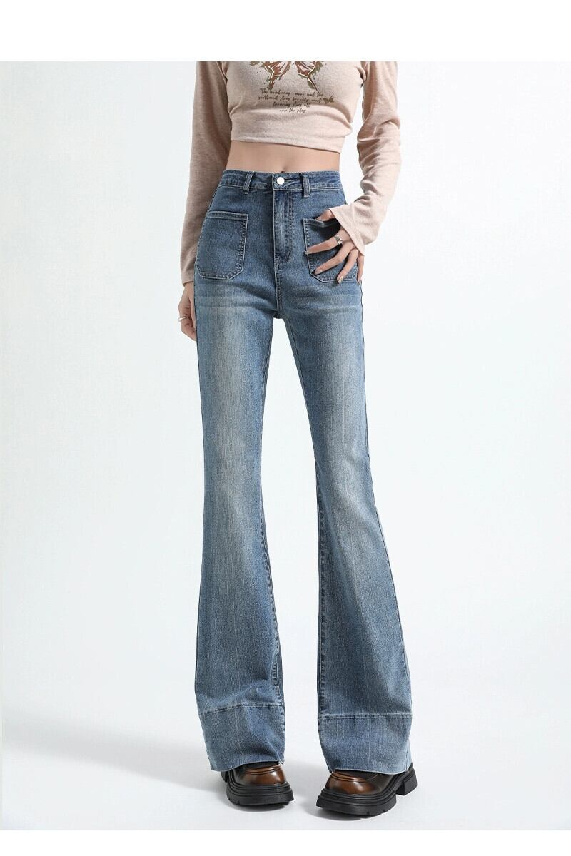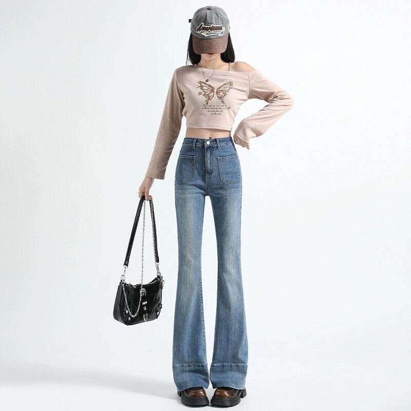 ナローマイクロフレアジーンズレディース、春と秋のハイストリート、アメリカンスリムフィット、伸縮性のあるワイドレッグストレートフロアレングスの馬蹄パンツ レッド スプリング 春物 オータム 秋物 7460048719796094 | framboise21