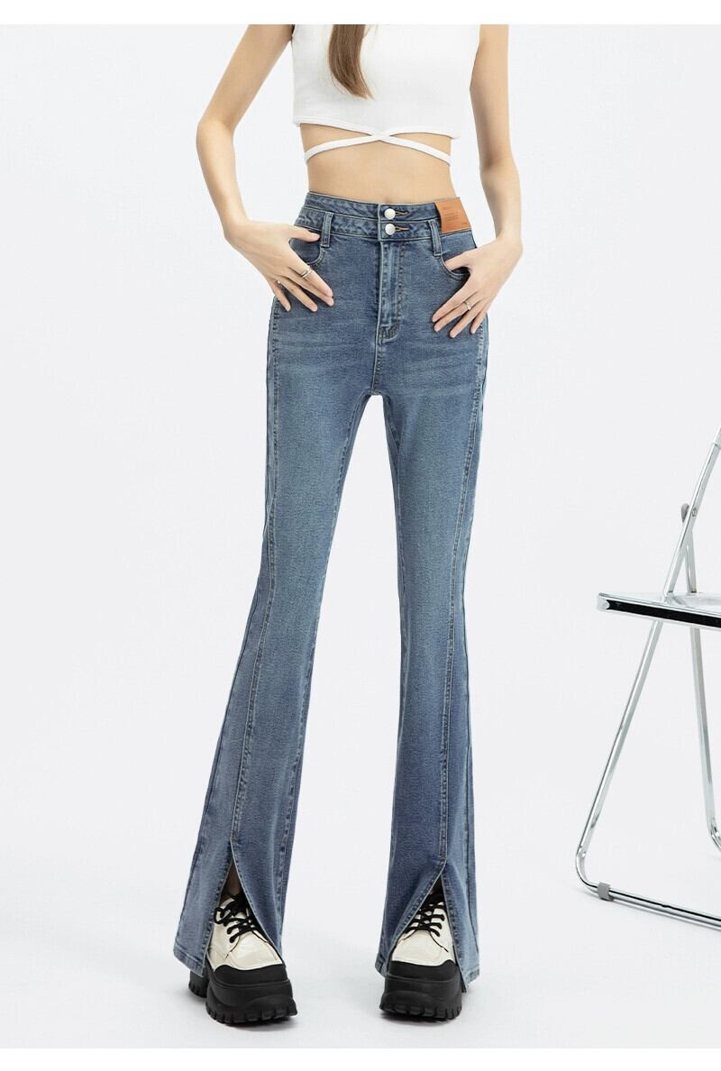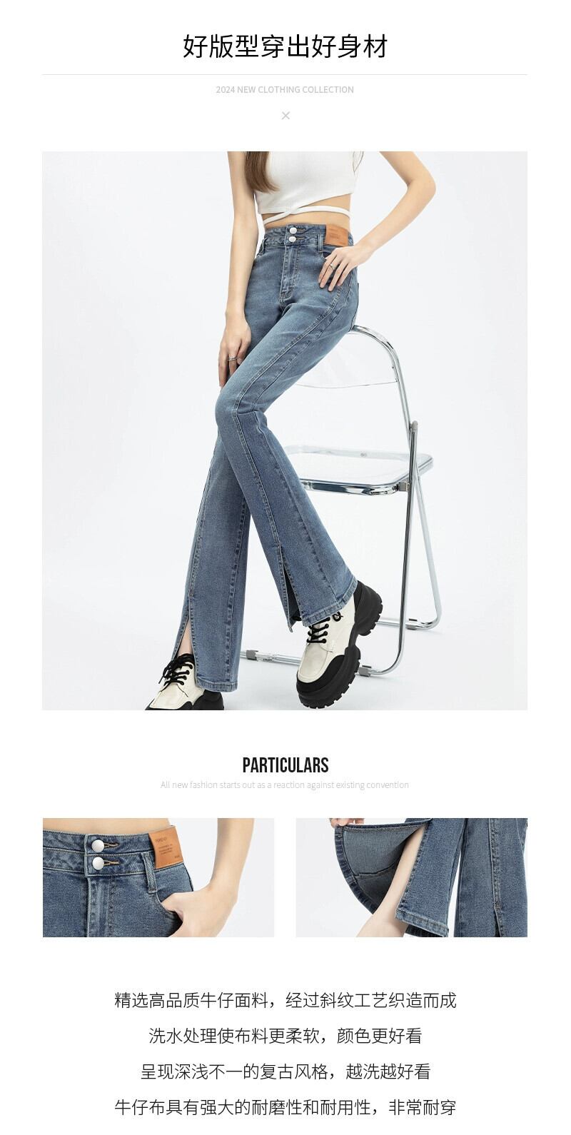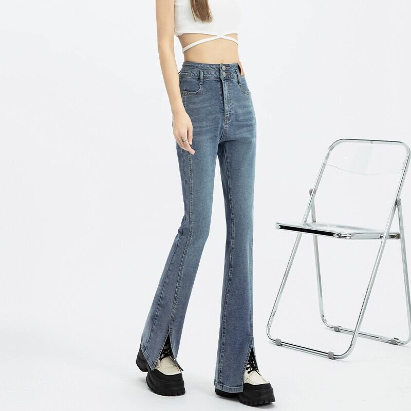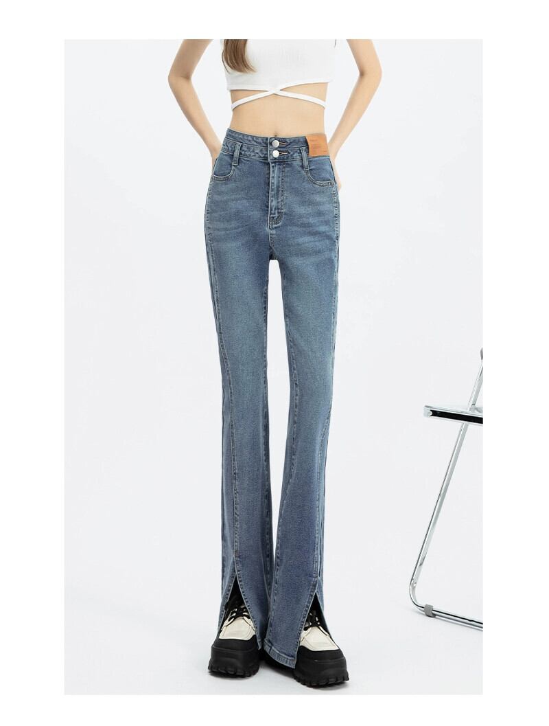 スリットマイクロフレアジーンズレディース、春と秋、レトロ、スリム、スリム、多用途、ナローバージョン、ハイウエストストレートパンツ レッド スプリング 春物 オータム 秋物 7460057662391793 | framboise21