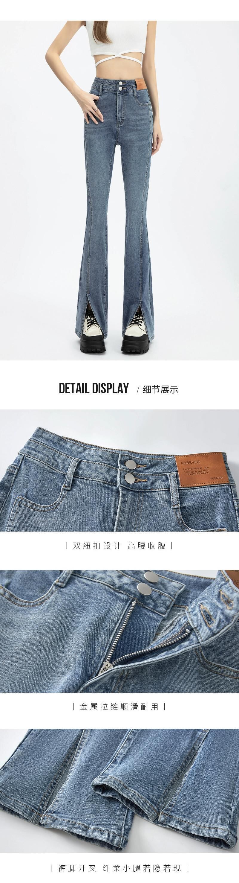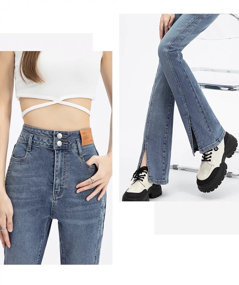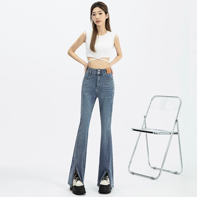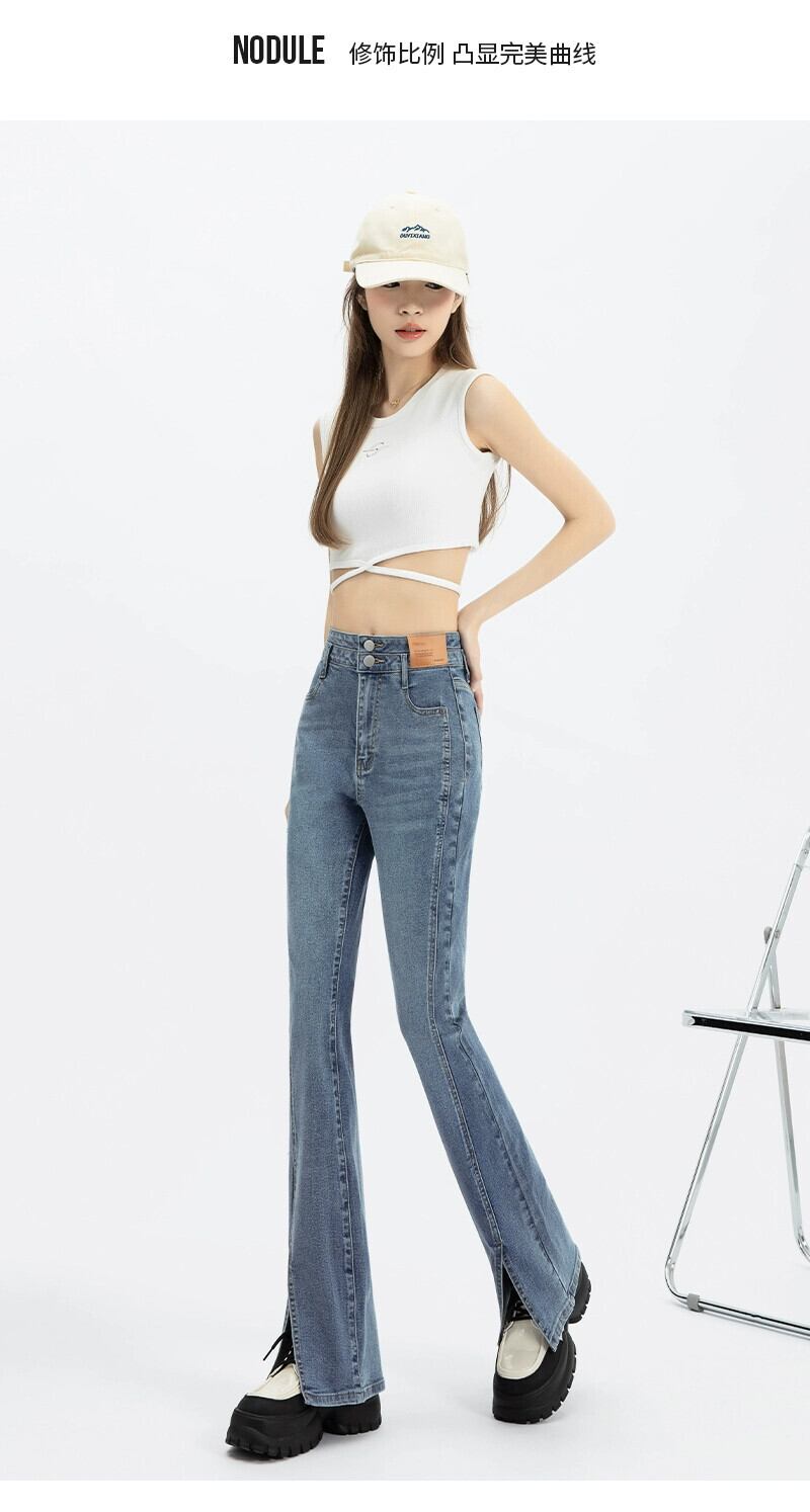 スリットマイクロフレアジーンズレディース、春と秋、レトロ、スリム、スリム、多用途、ナローバージョン、ハイウエストストレートパンツ レッド スプリング 春物 オータム 秋物 7460057662391793 | framboise21