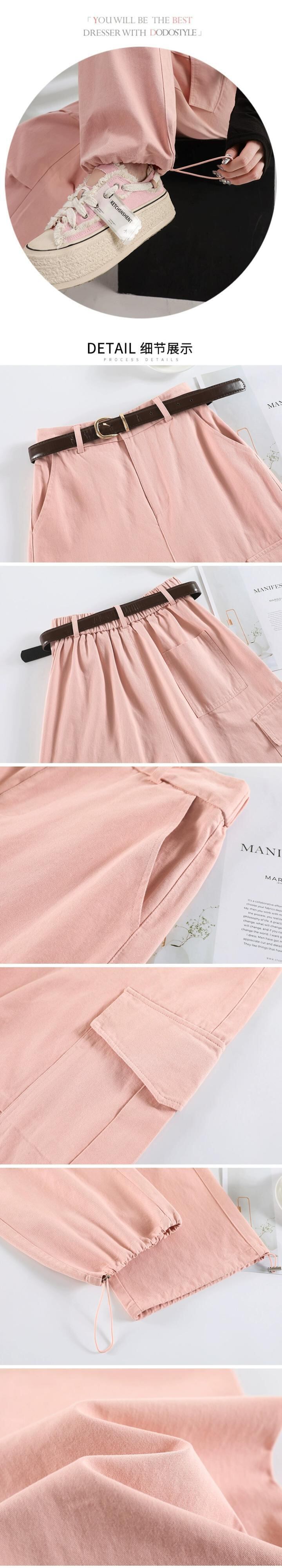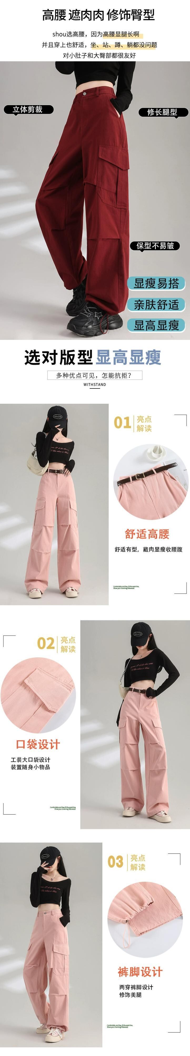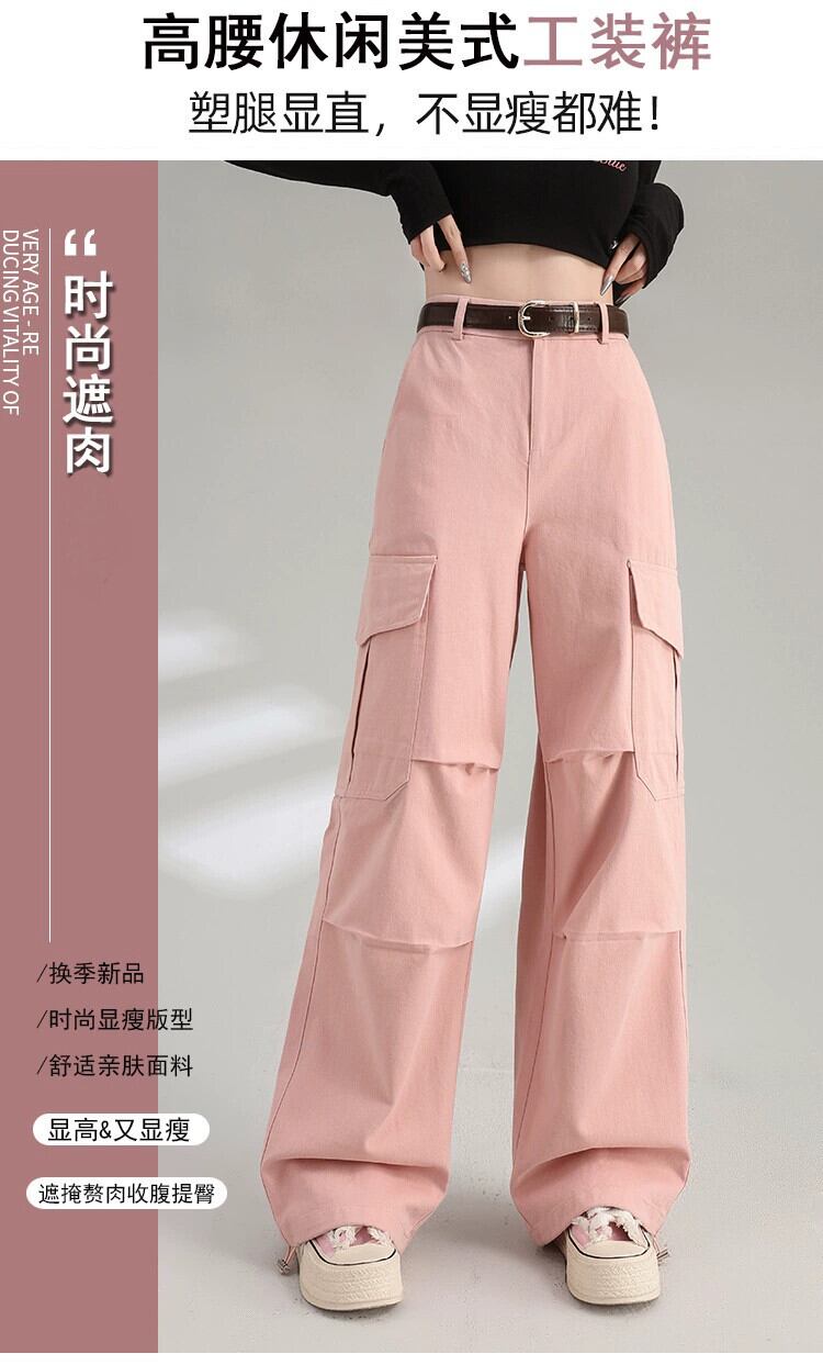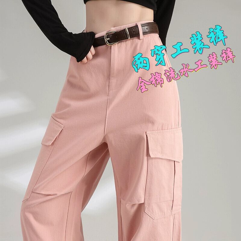 アメリカンピンクのドローストリングアンクルオーバーオールレディース、春と秋のルーズ、スリムで多用途なハイウエストストレートカジュアルワイドレッグパンツ スプリング 春物 オータム 秋物 7460089790769588 | framboise21