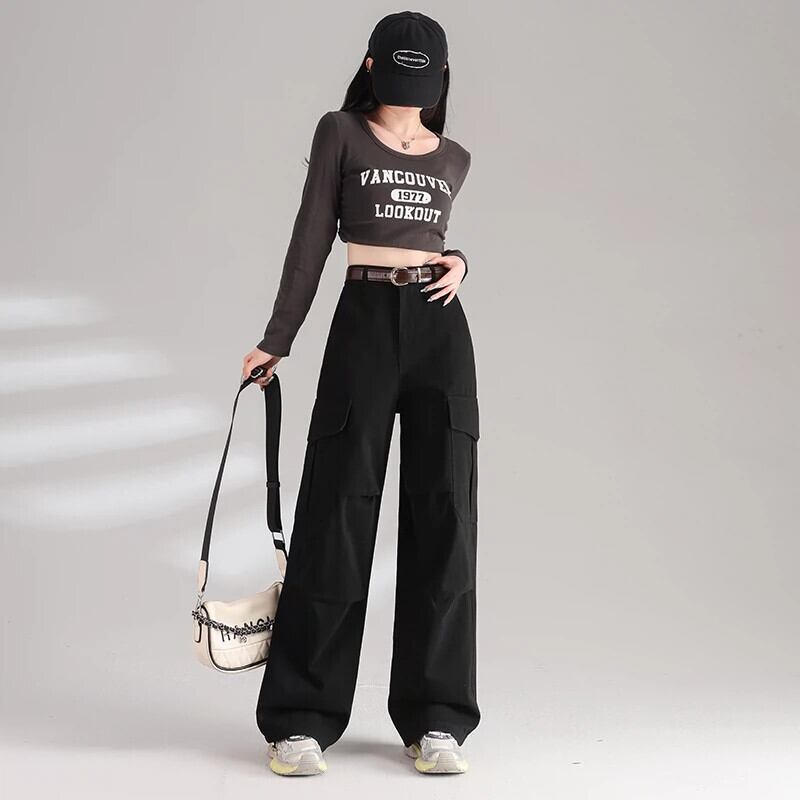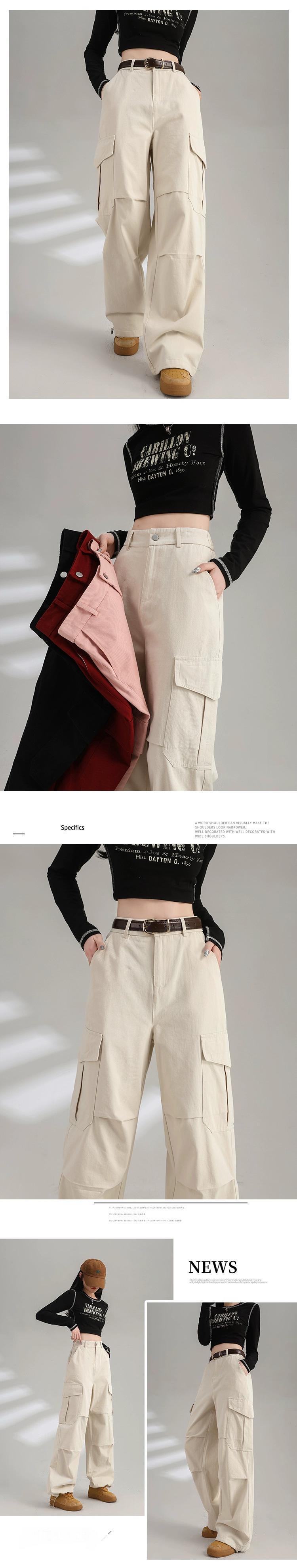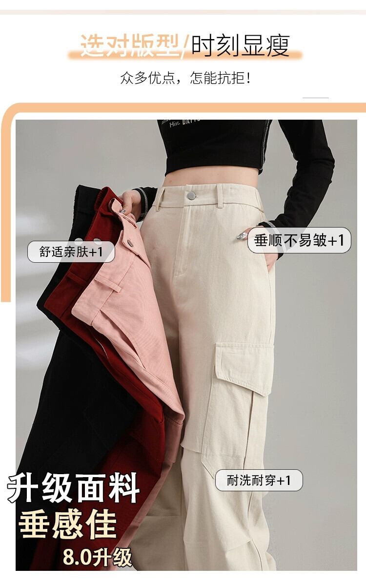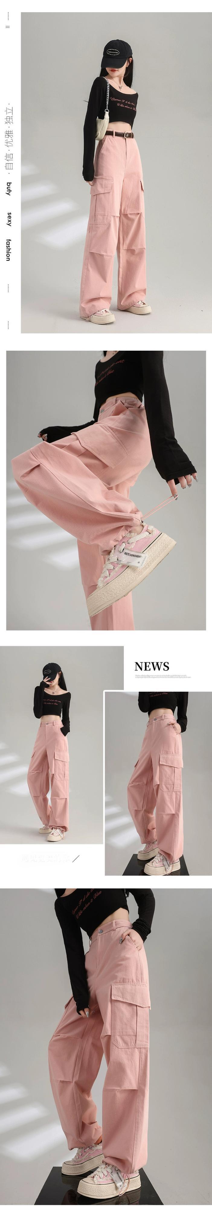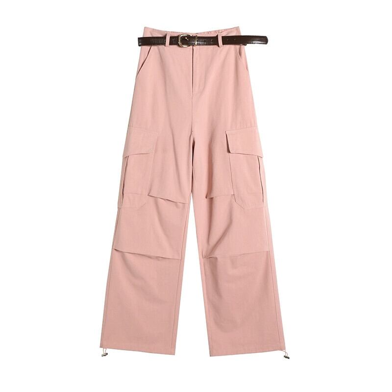 アメリカンピンクのドローストリングアンクルオーバーオールレディース、春と秋のルーズ、スリムで多用途なハイウエストストレートカジュアルワイドレッグパンツ スプリング 春物 オータム 秋物 7460089790769588 | framboise21
