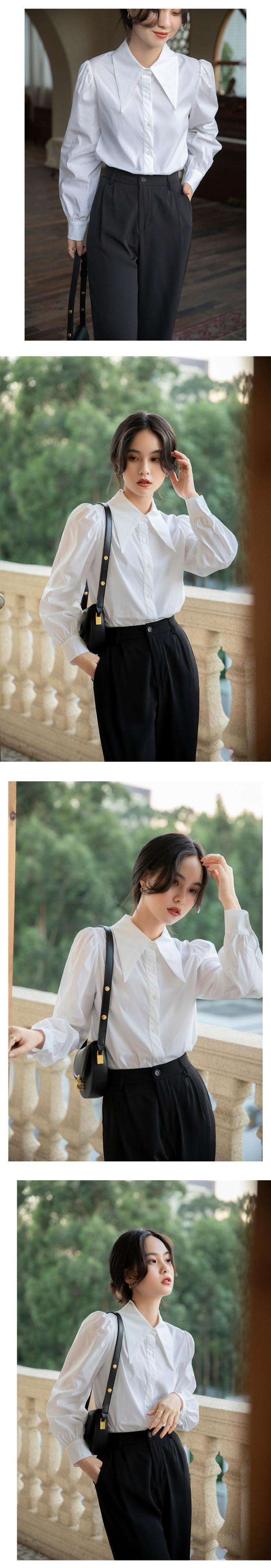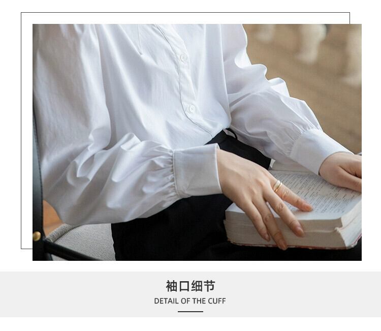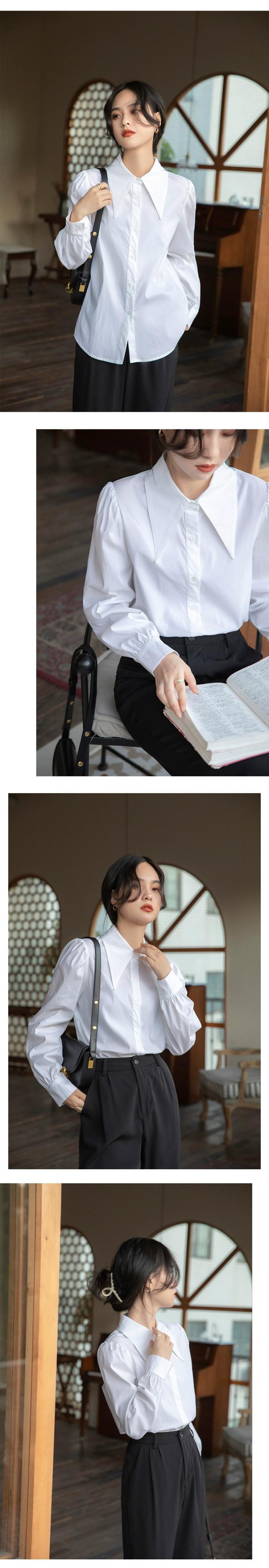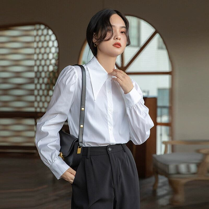 ホワイトパフスリーブシャツレディーストップス春秋ファッションファッショナブルなデザインルーズインナーカラー長袖シャツ ロング スプリング 春物 オータム 秋物 7460073827244860 | framboise21