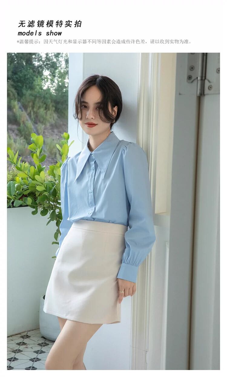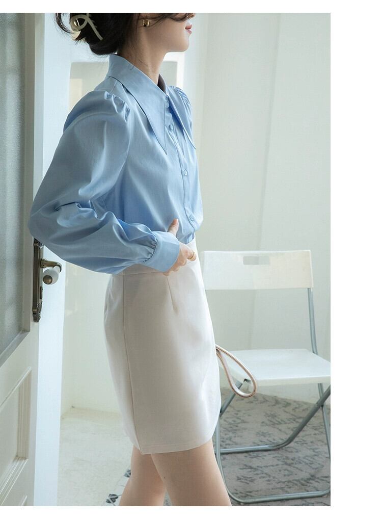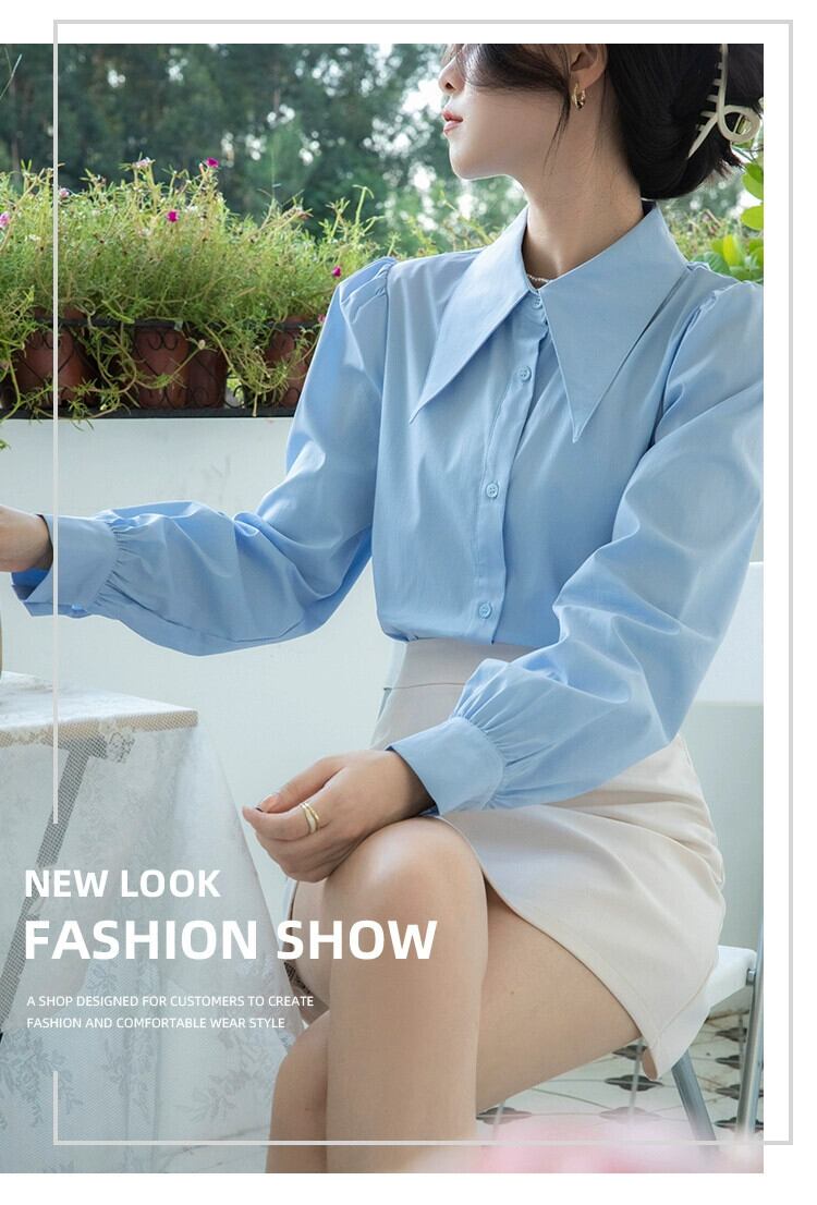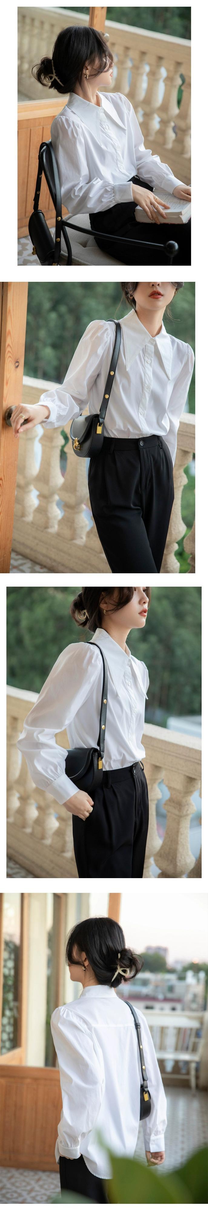 ホワイトパフスリーブシャツレディーストップス春秋ファッションファッショナブルなデザインルーズインナーカラー長袖シャツ ロング スプリング 春物 オータム 秋物 7460073827244860 | framboise21