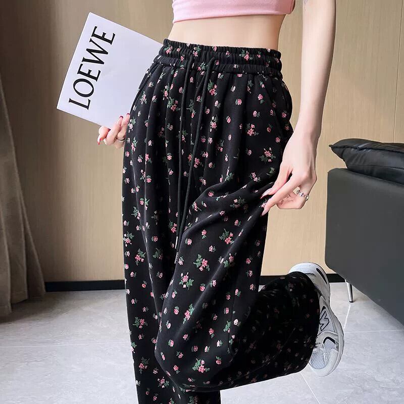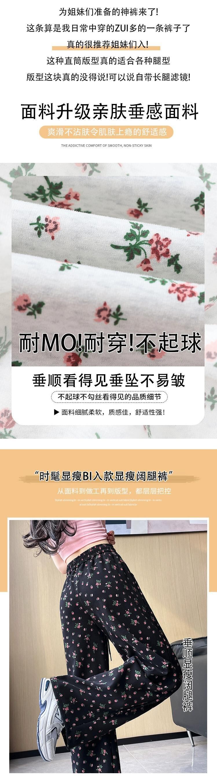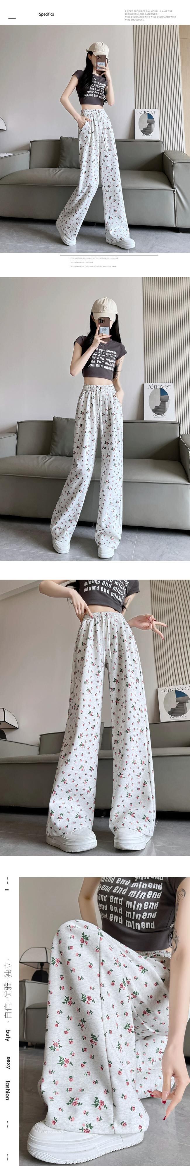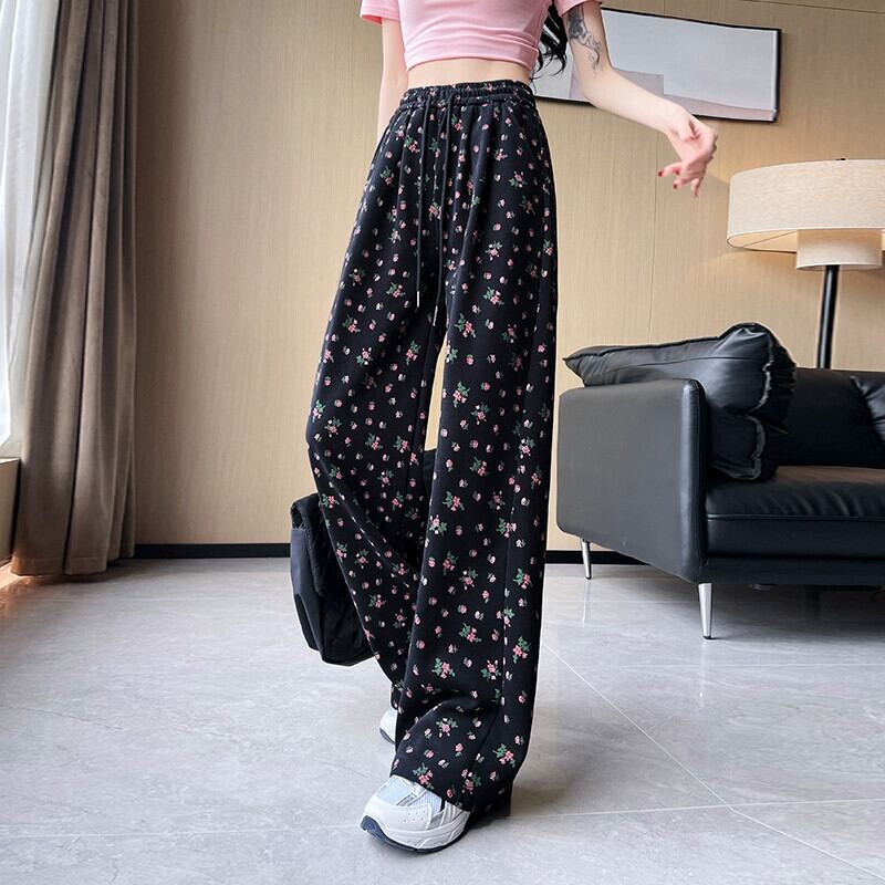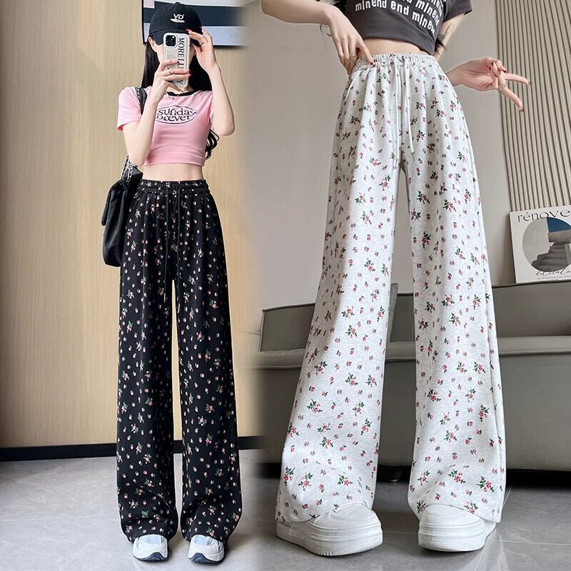 花柄ワイドレッグパンツ女性 2024 春夏の新しいストレートレッグスウェットパンツルーズでドレープのあるフロアレングス弾性ハイウエストカジュアルパンツ エラスティック 伸縮 スプリング 春物 サマー 夏物 7460092654493720 | framboise21