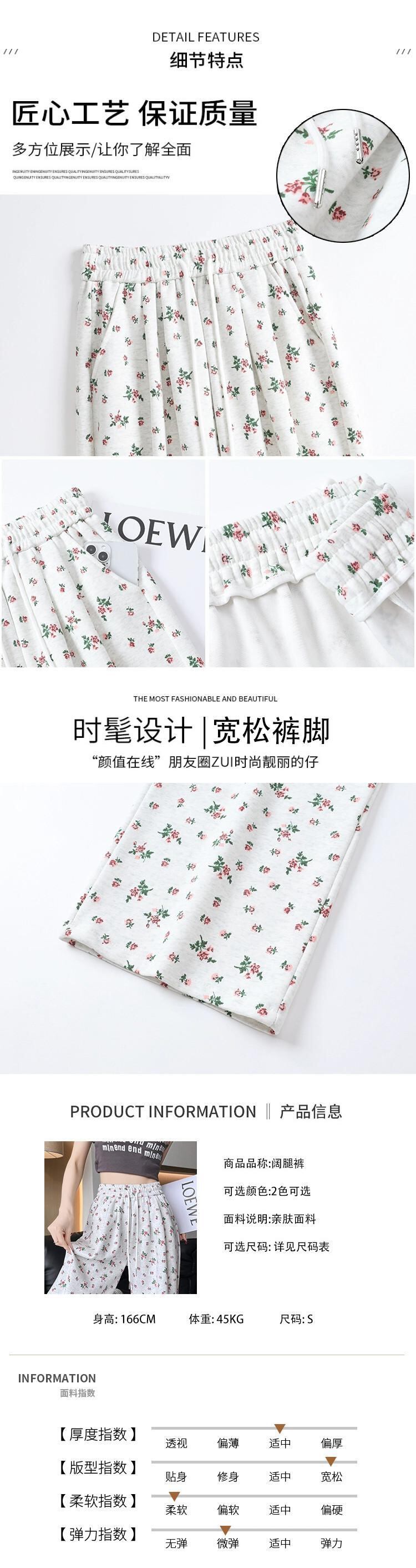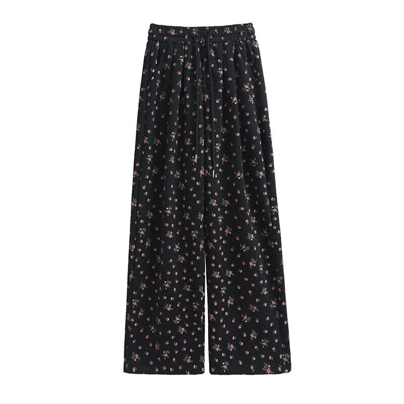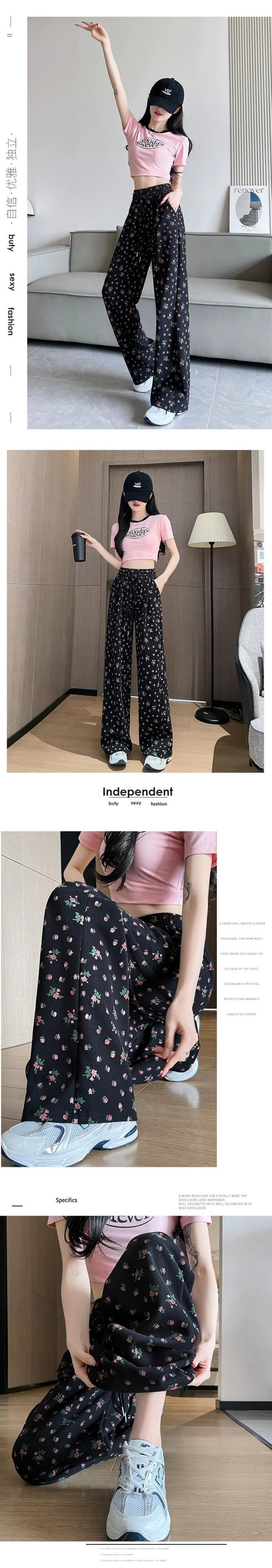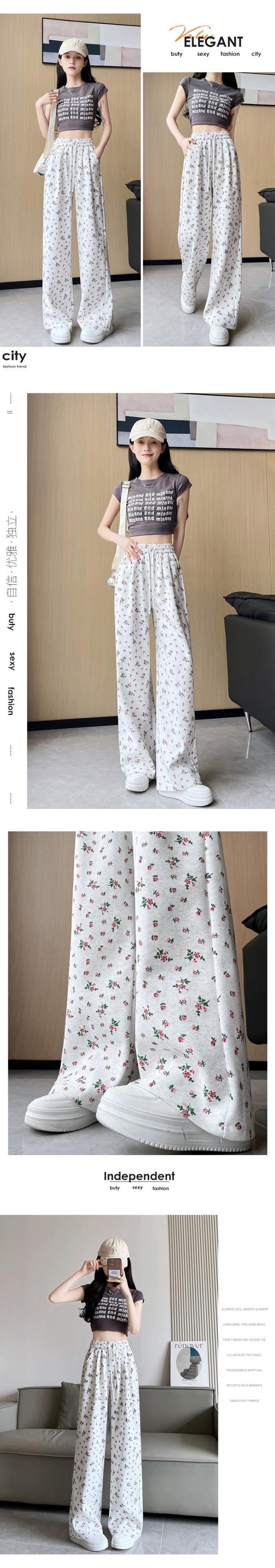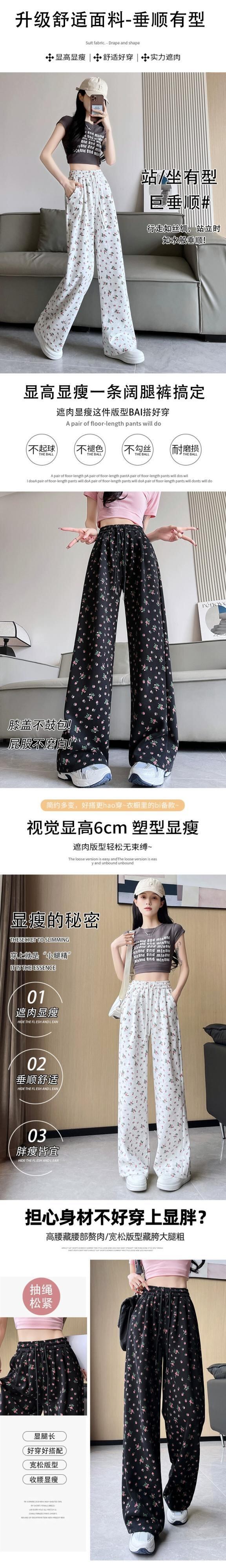 花柄ワイドレッグパンツ女性 2024 春夏の新しいストレートレッグスウェットパンツルーズでドレープのあるフロアレングス弾性ハイウエストカジュアルパンツ エラスティック 伸縮 スプリング 春物 サマー 夏物 7460092654493720 | framboise21