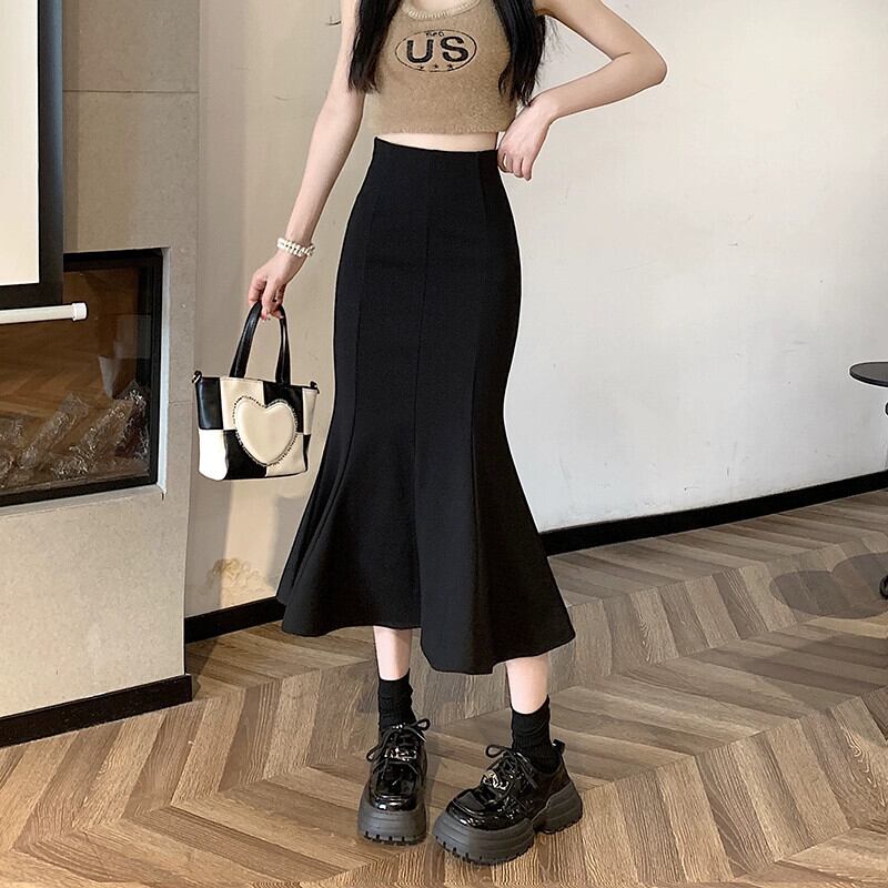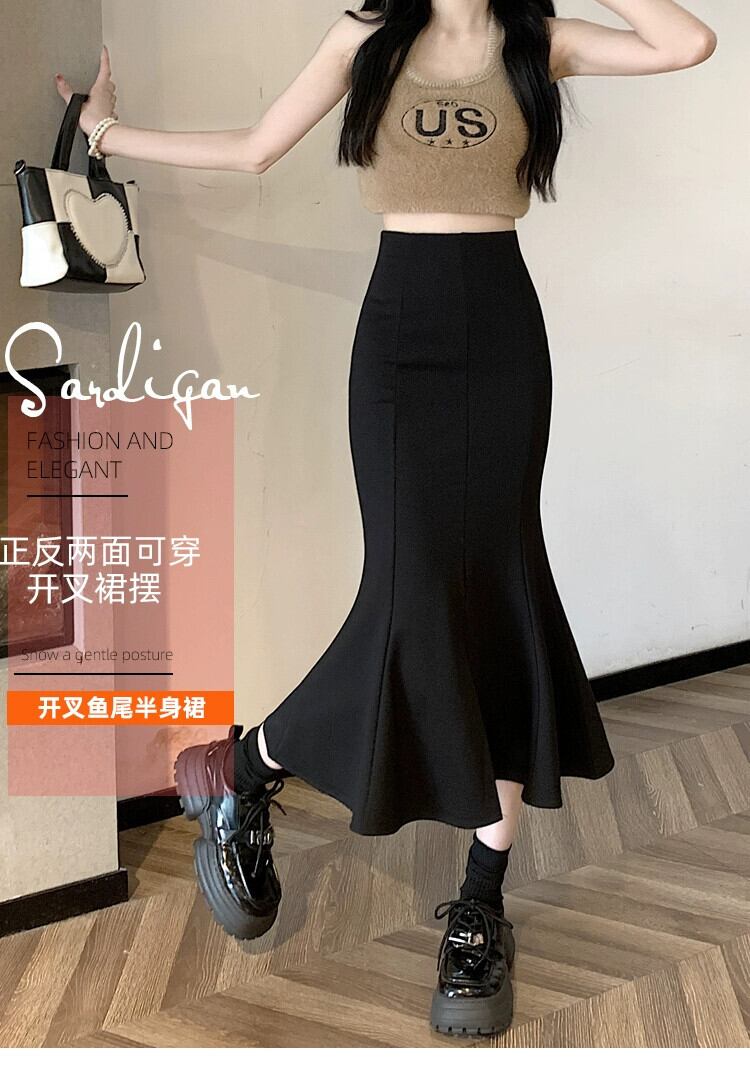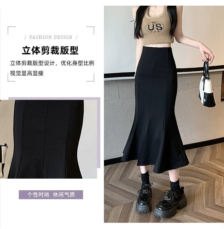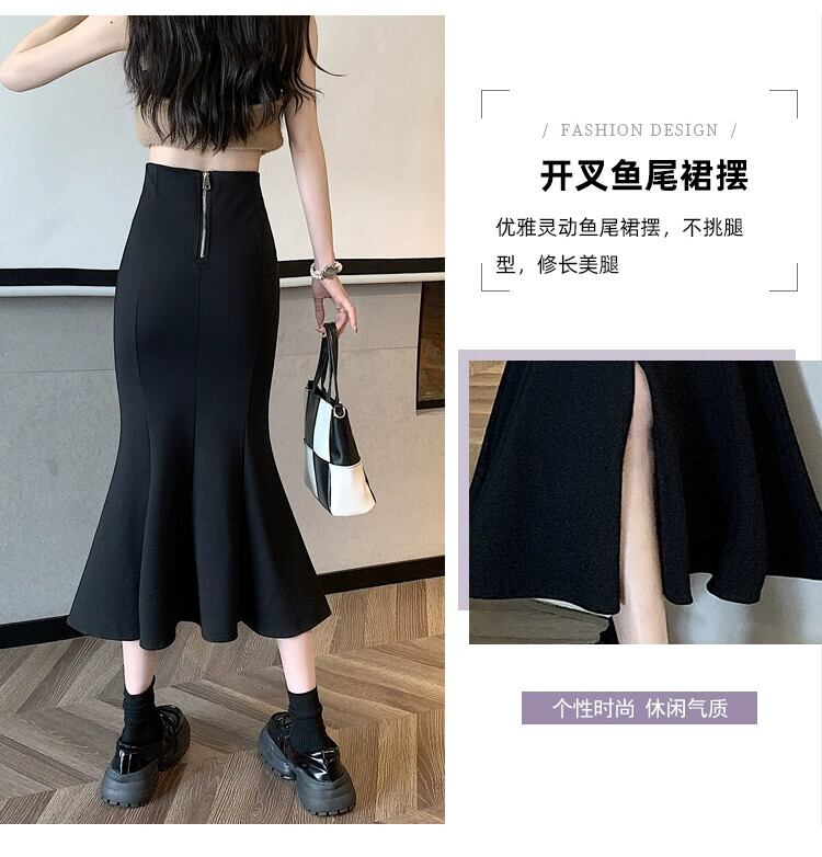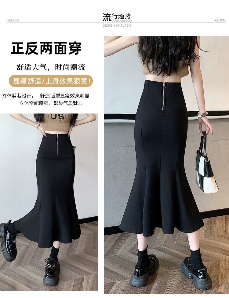 サイドスリット、ヒップを包み込むフィッシュテールスカートレディース、春と秋のスリムフィット、ハイウエスト、ドレープのあるAラインのミドル丈スーツスカート ハイウェスト スプリング 春物 オータム 秋物 7460069859339535 | framboise21