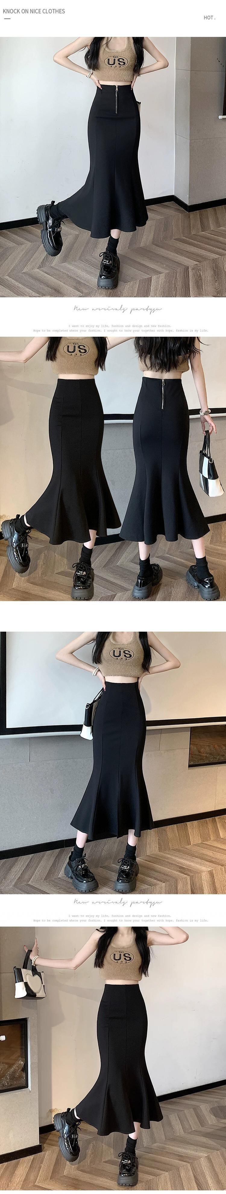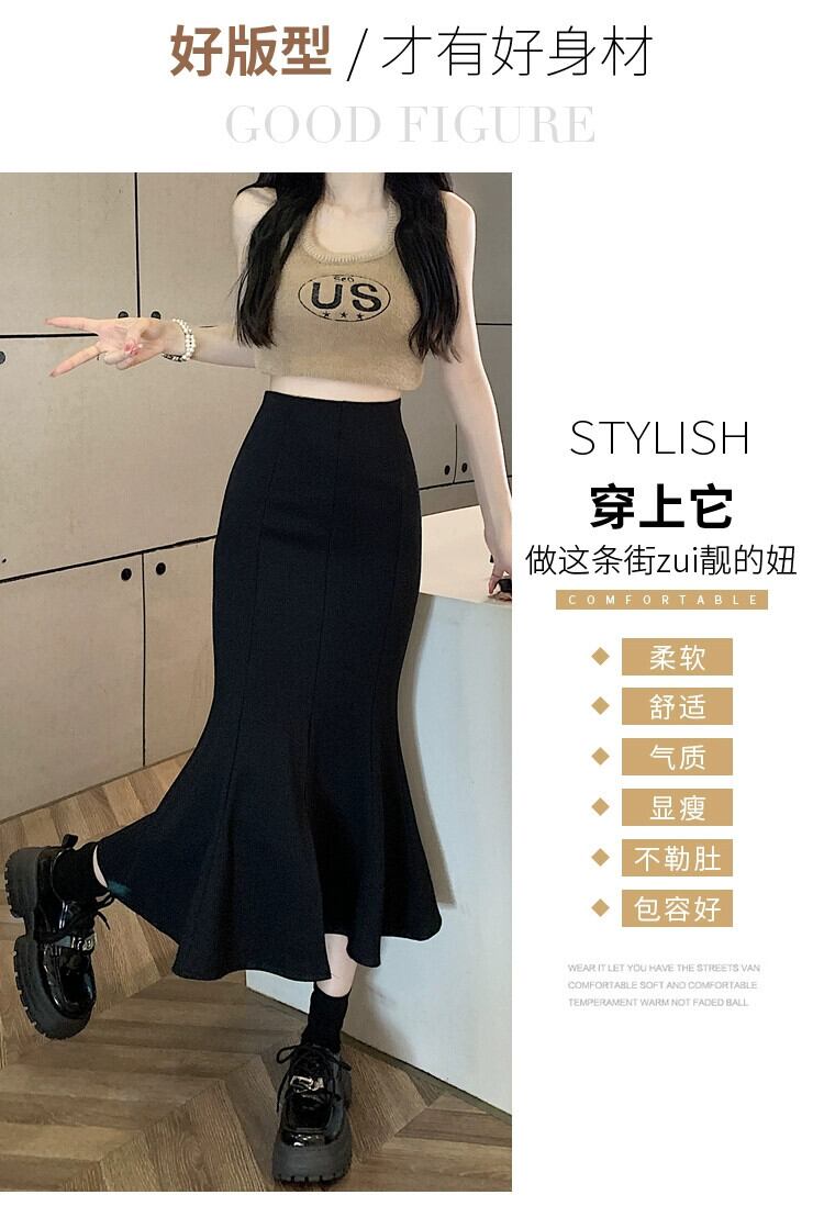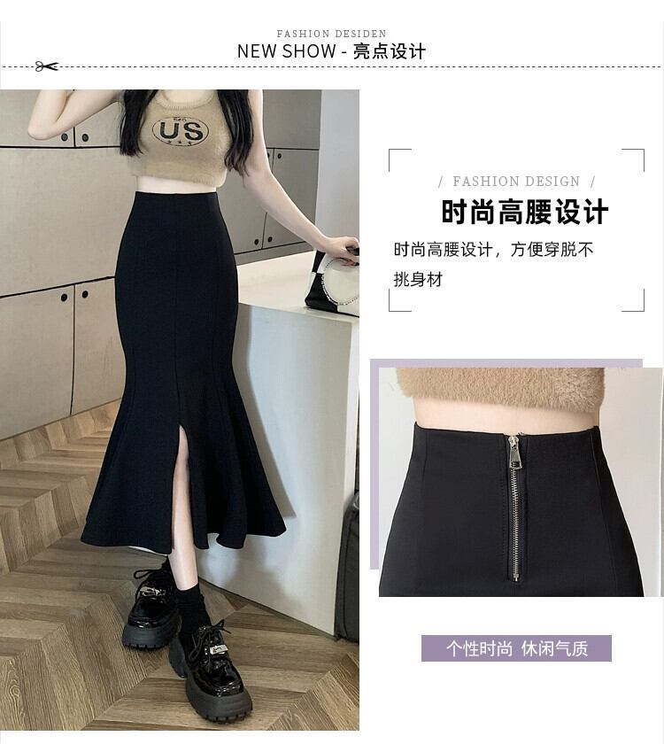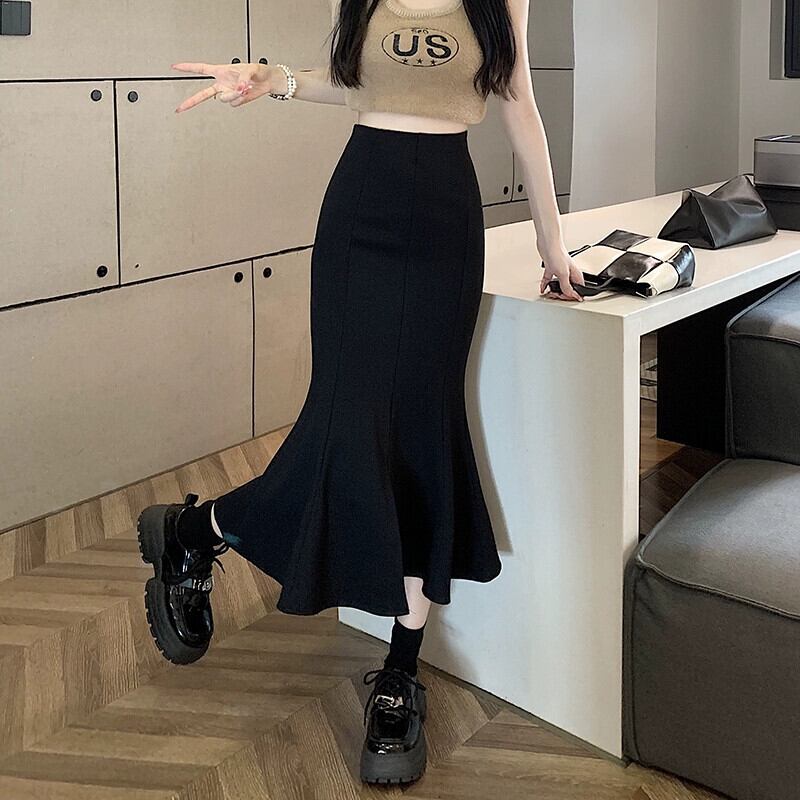 サイドスリット、ヒップを包み込むフィッシュテールスカートレディース、春と秋のスリムフィット、ハイウエスト、ドレープのあるAラインのミドル丈スーツスカート ハイウェスト スプリング 春物 オータム 秋物 7460069859339535 | framboise21