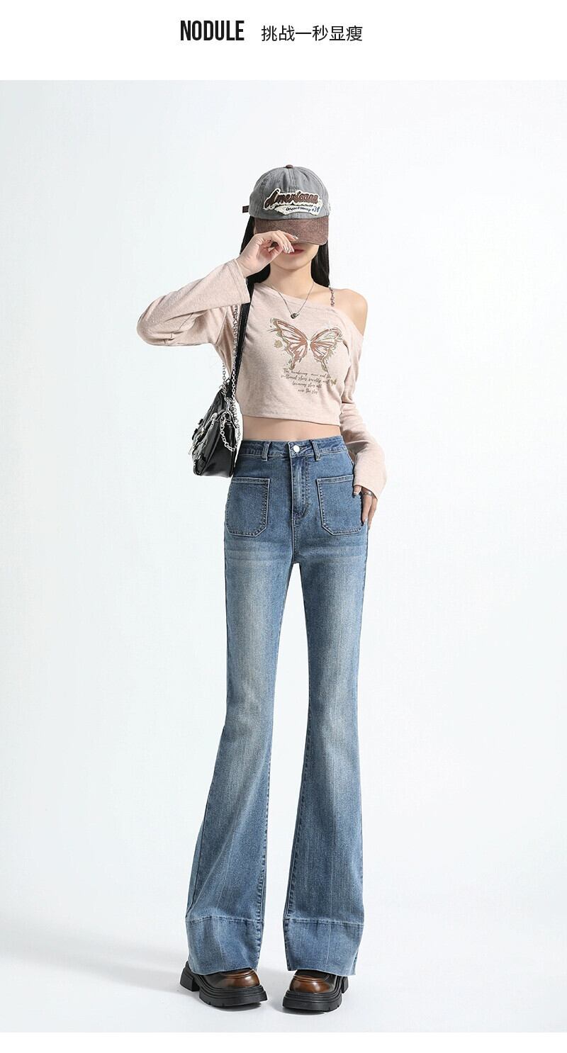マイクロフレアストレートジーンズレディース、春と秋の新しいハイウエスト馬蹄パンツ、スリムフィット、多用途ストレッチモップパンツ スプリング 春物 オータム 秋物 7460074827164458 | framboise21