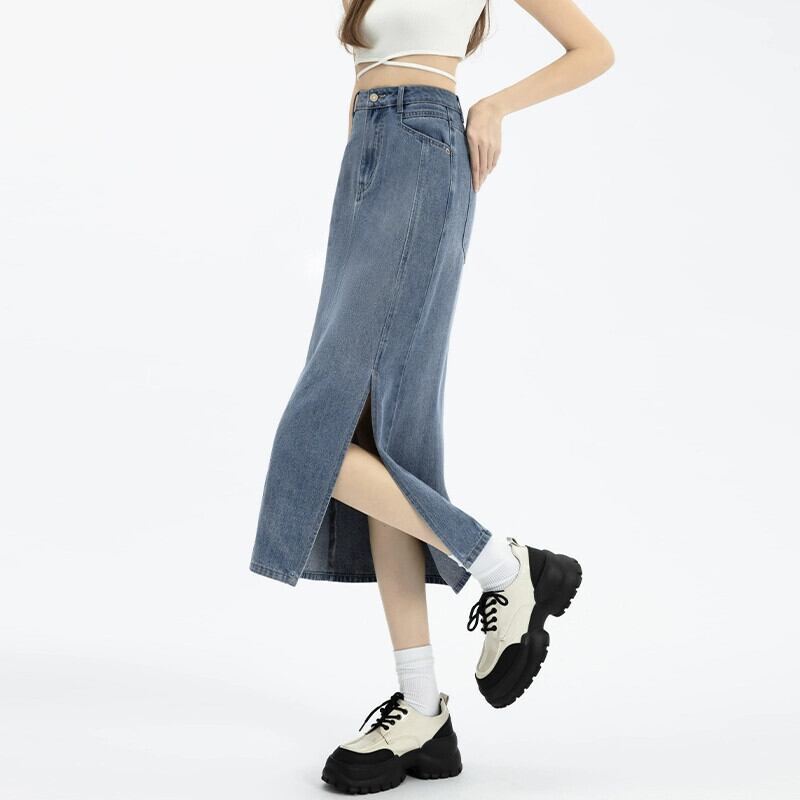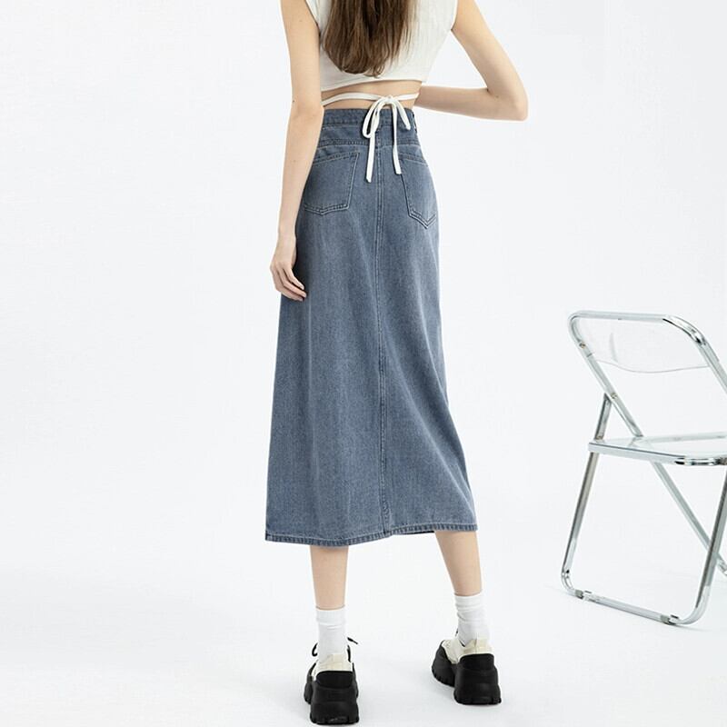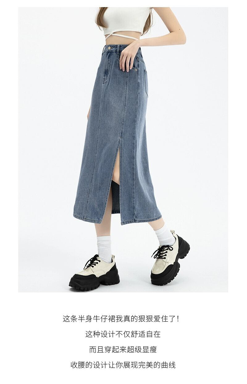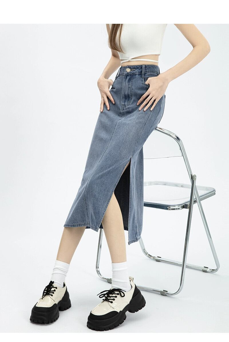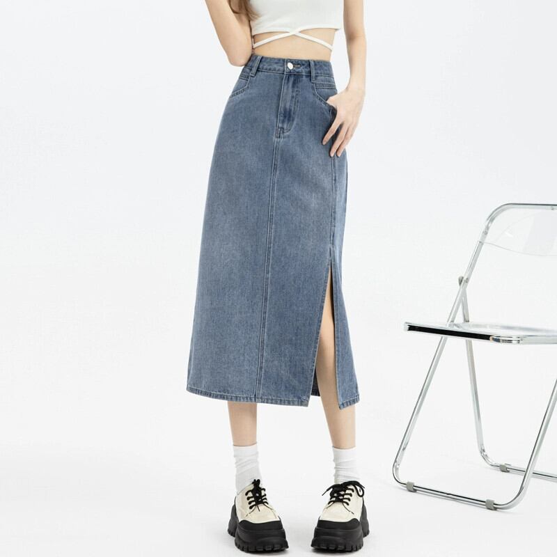 サイドスリットデニムスカートスカート女性春と秋の新スタイルレトロハイウエストスリムストレートaラインミッドレングスヒップスカート スプリング 春物 オータム 秋物 7460067153548637 | framboise21