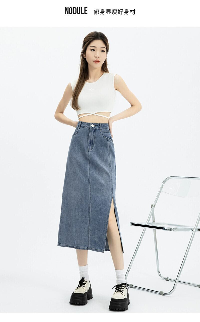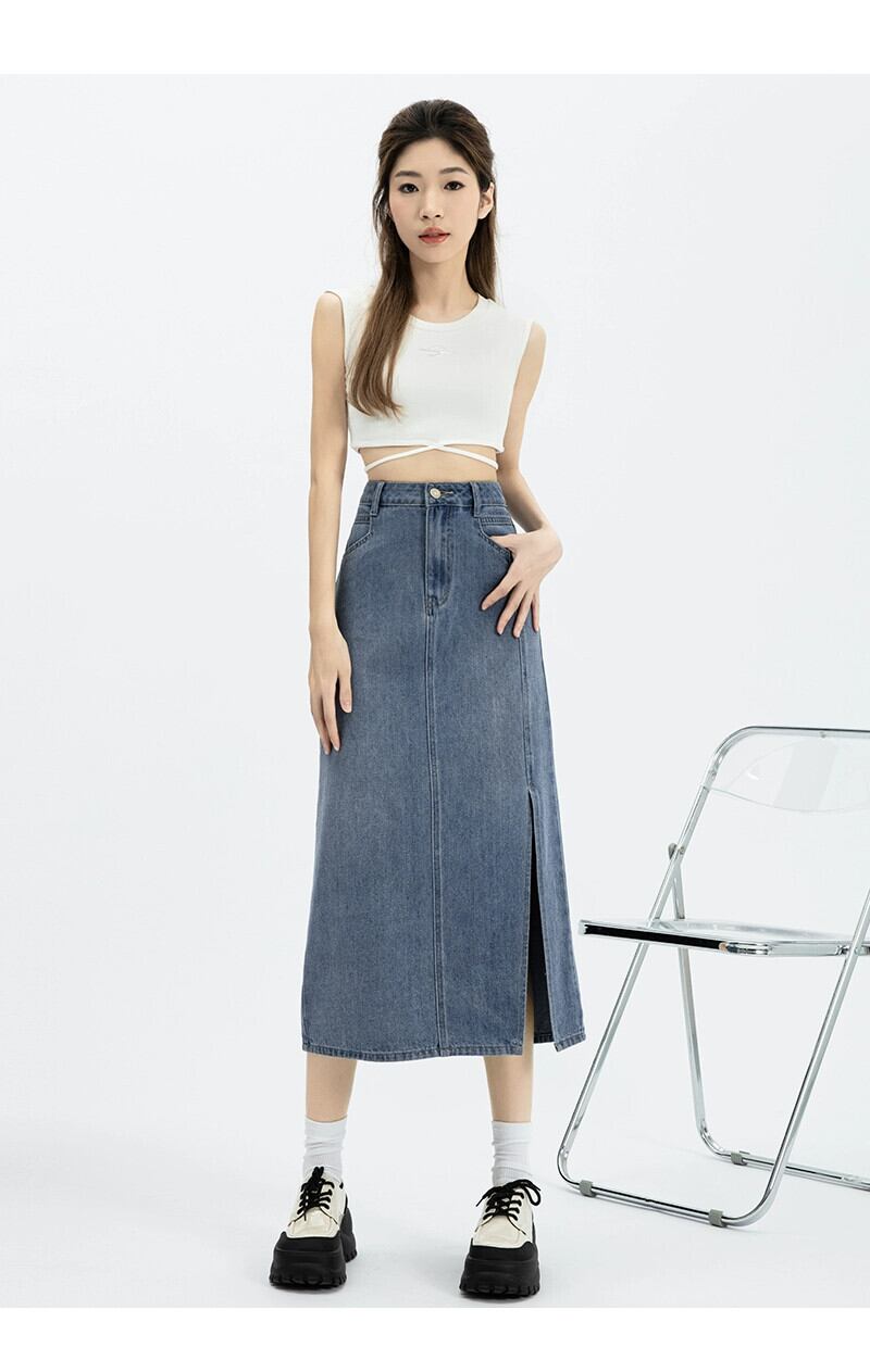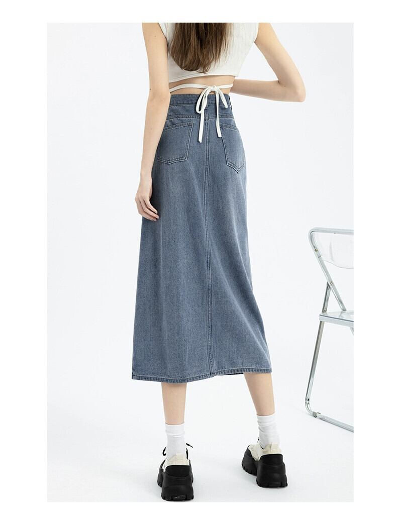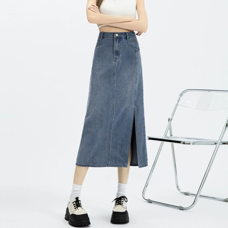 サイドスリットデニムスカートスカート女性春と秋の新スタイルレトロハイウエストスリムストレートaラインミッドレングスヒップスカート スプリング 春物 オータム 秋物 7460067153548637 | framboise21