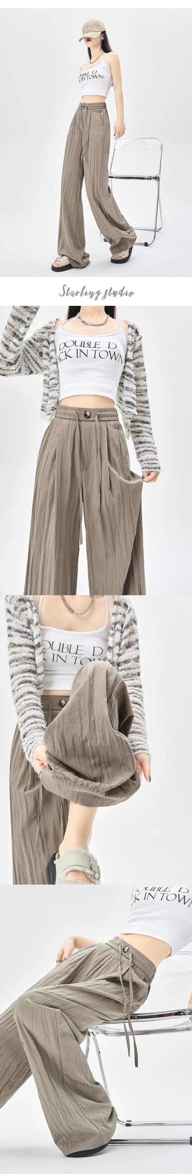 カーキ質感のワイドレッグパンツの女性の春と秋の新しいスタイル怠惰なスタイル山本パンツハイウエストストレートカジュアルパンツ レッド スプリング 春物 オータム 秋物 7460097477702886 | framboise21