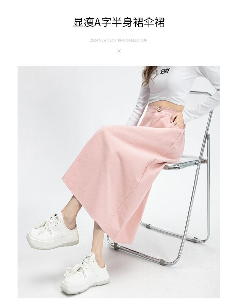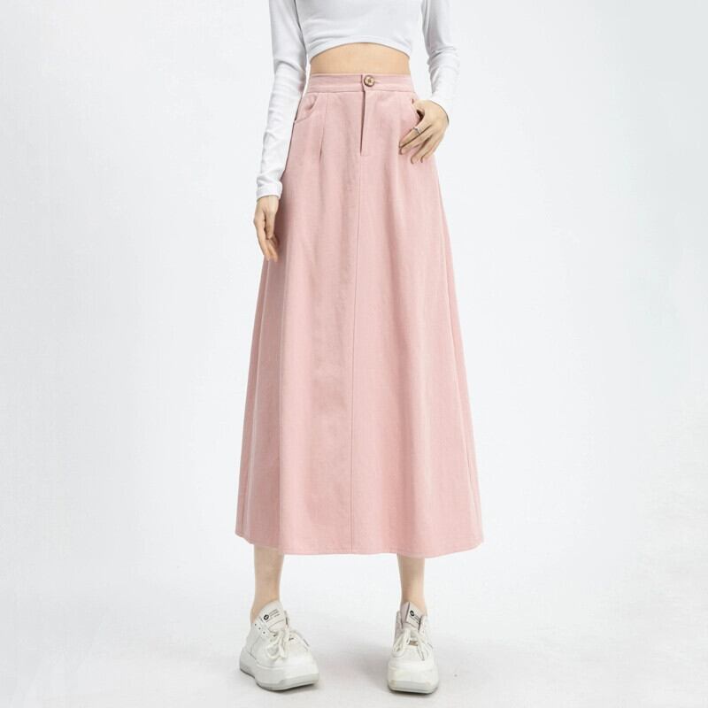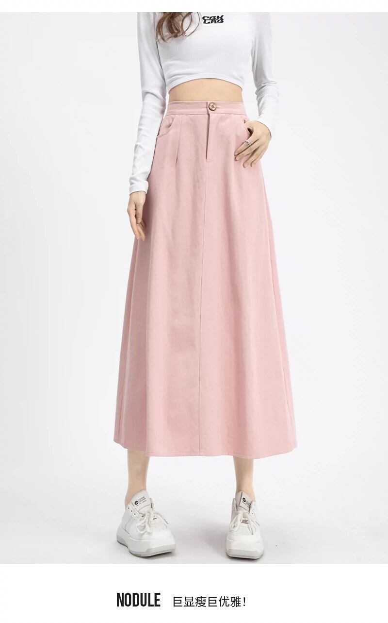 ピンクの A ライン スカートの女性、2024 年春と秋の新しいスタイル、スパンをカバー、スリム、ミッドレングスの弾性ハイウエスト アンブレラ スカート エラスティック 伸縮 スプリング 春物 オータム 秋物 Aライン 7460071270381189 | framboise21