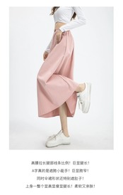 ピンクの A ライン スカートの女性、2024 年春と秋の新しいスタイル、スパンをカバー、スリム、ミッドレングスの弾性ハイウエスト アンブレラ スカート エラスティック 伸縮 スプリング 春物 オータム 秋物 Aライン 7460071270381189