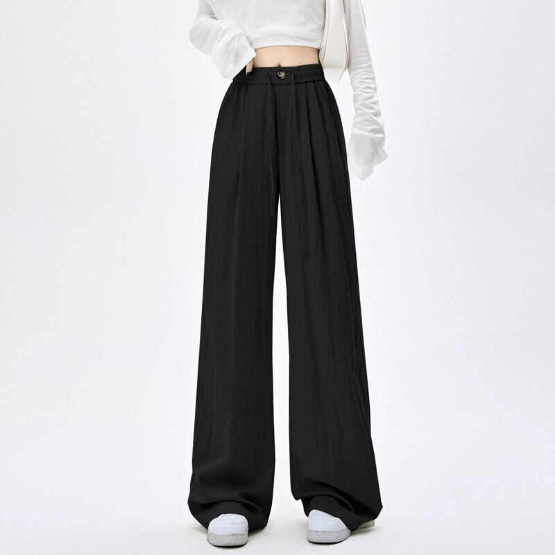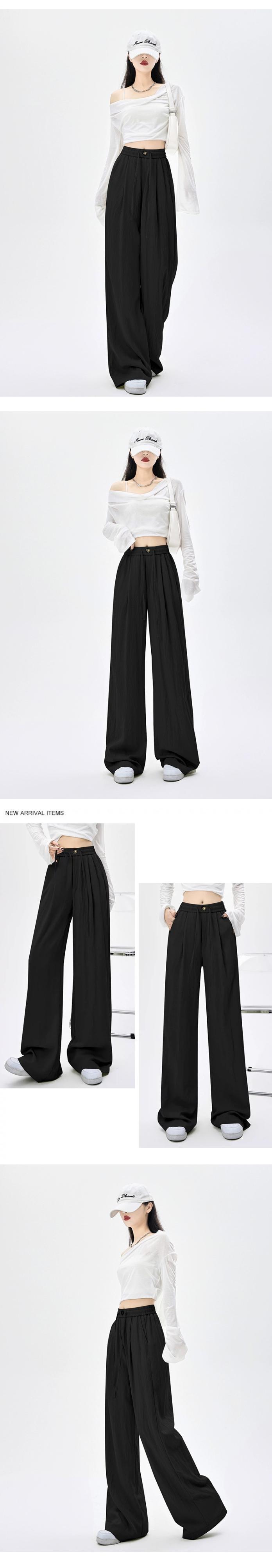 ブラックテクスチャードワイドレッグパンツレディース、2024年春秋の新作パンツ、ハイウエスト、スリム、フロアレングスストレートカジュアルパンツ レッド スプリング 春物 オータム 秋物 746006615326821 | framboise21