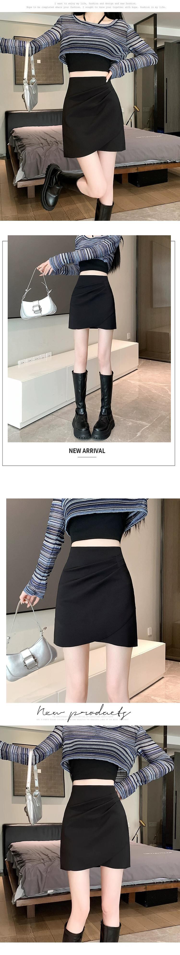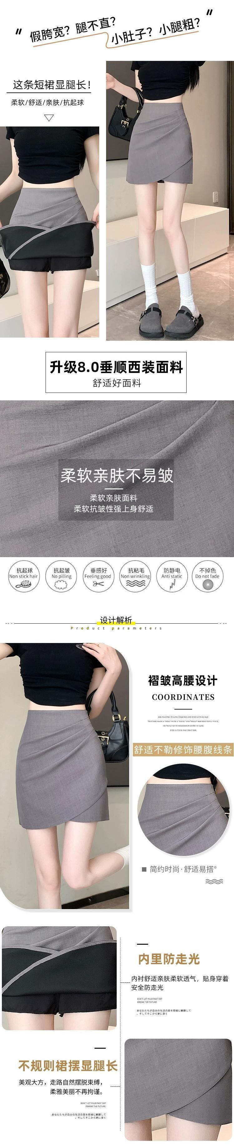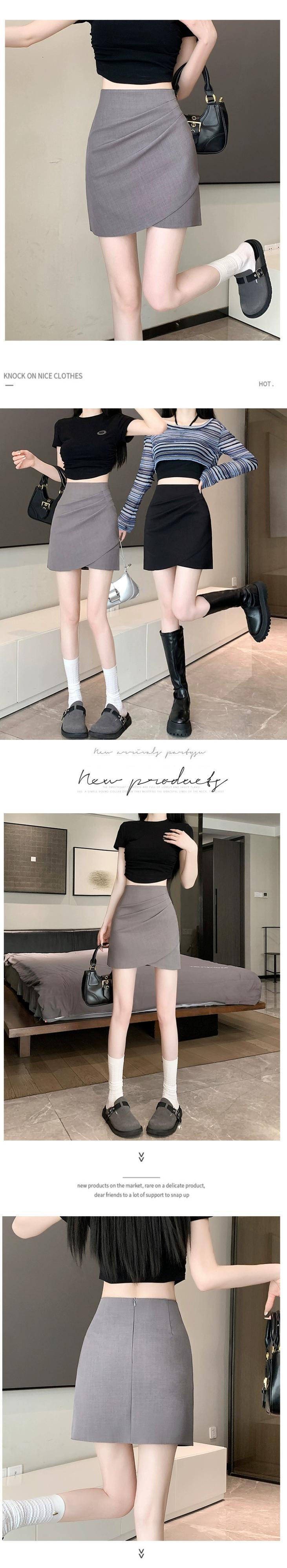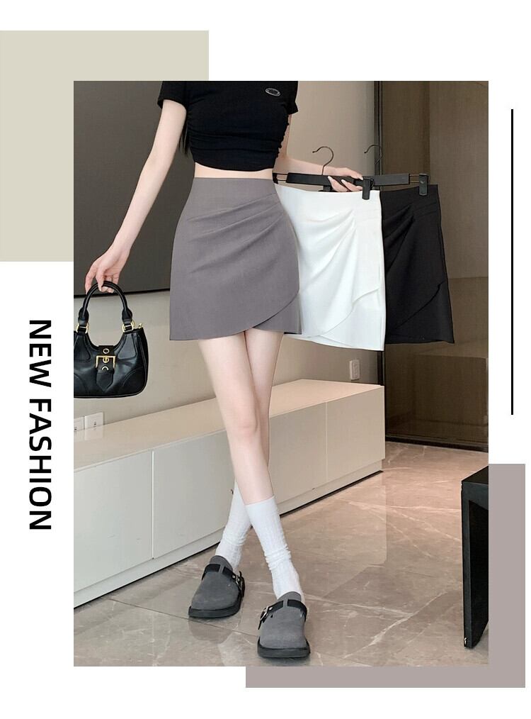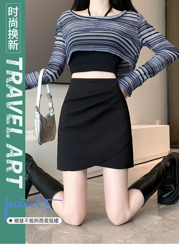 プリーツスーツスカート女性春と秋 2024 新しいスタイルの小さなハイウエストスリム多目的不規則なヒップカバーショートスカート スプリング 春物 オータム 秋物 7460047271360941 | framboise21