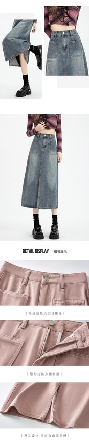 ピンクデニムスカートレディース2024春秋新作ハイウエストスリムミッドレングススリットハイウエストヒップスカート ハイウェスト スプリング 春物 オータム 秋物 7460043747876456