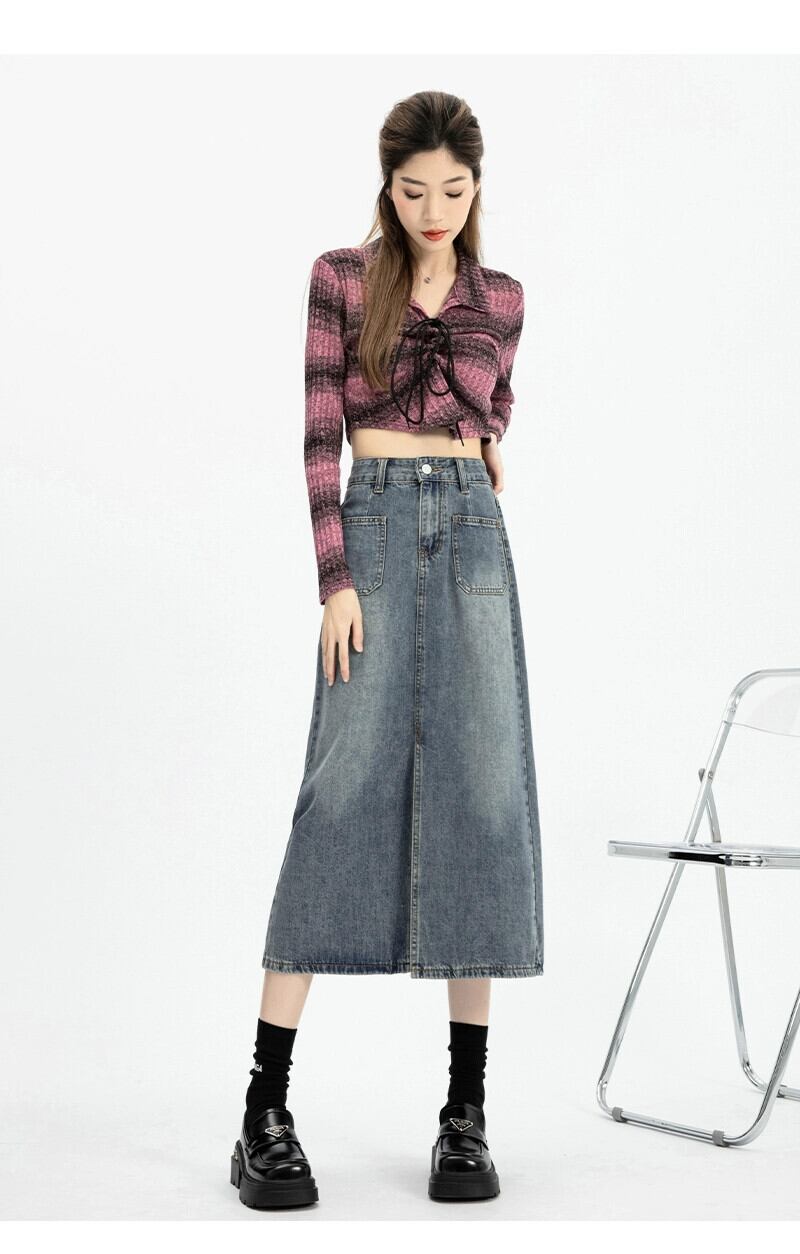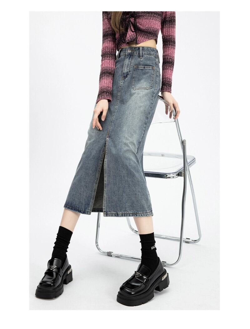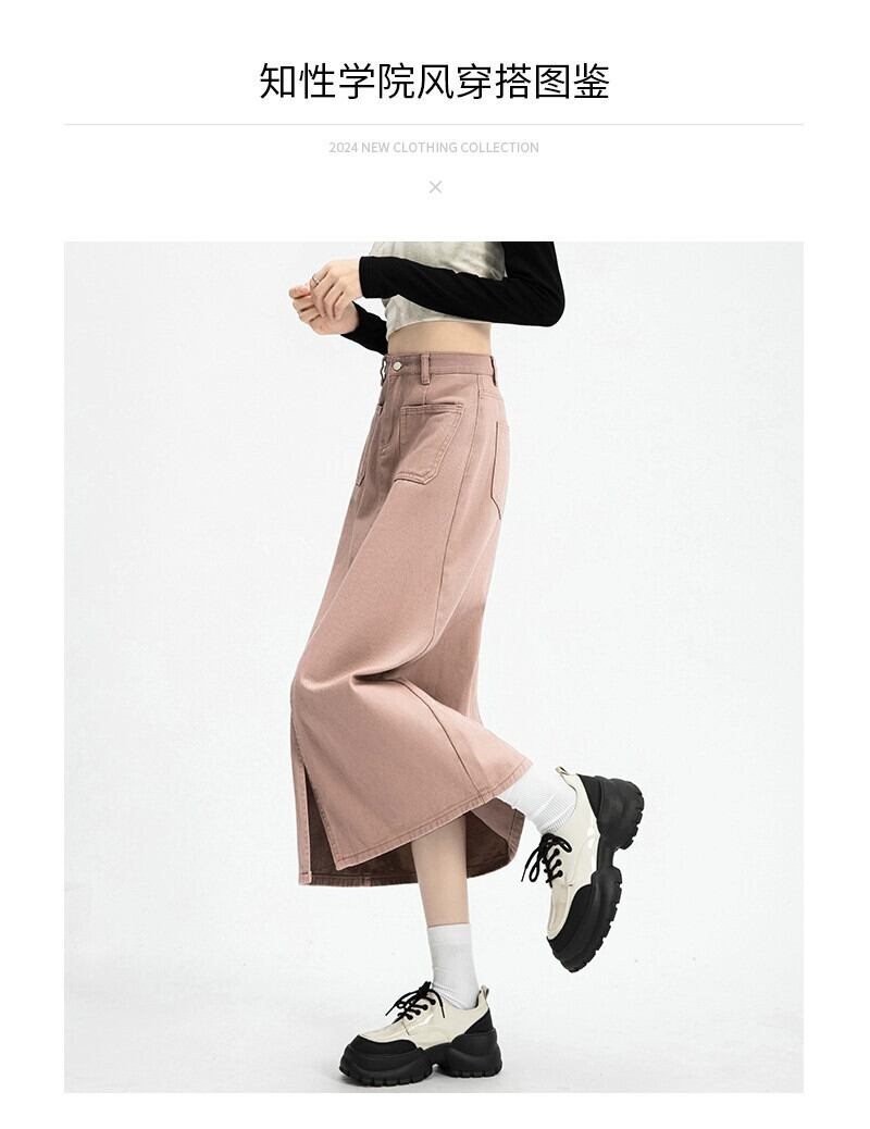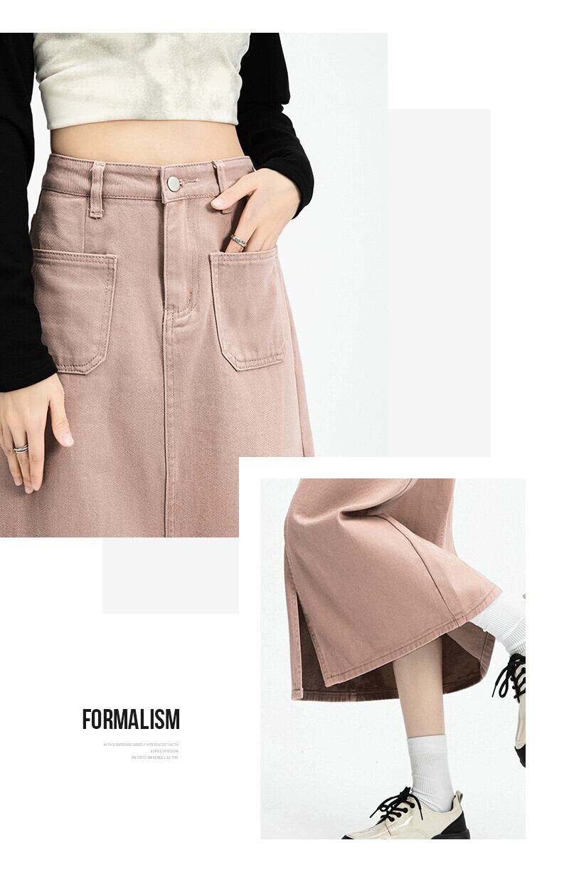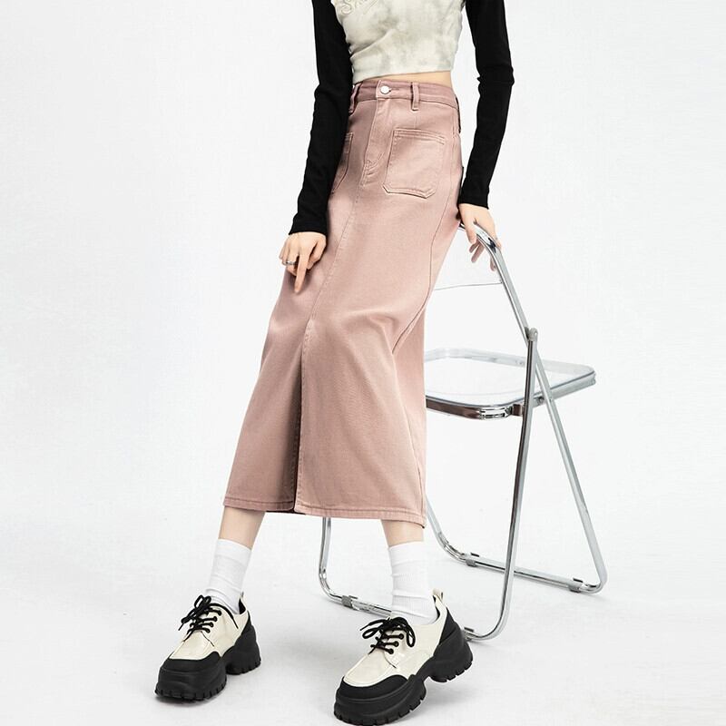ピンクデニムスカートレディース2024春秋新作ハイウエストスリムミッドレングススリットハイウエストヒップスカート ハイウェスト スプリング 春物 オータム 秋物 7460043747876456 | framboise21