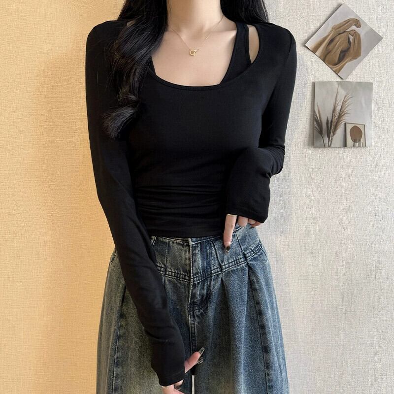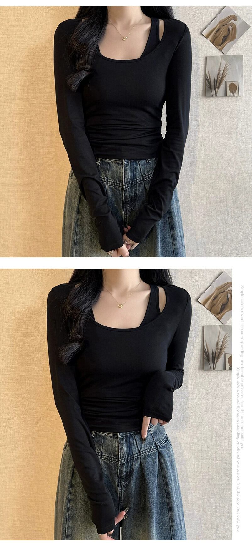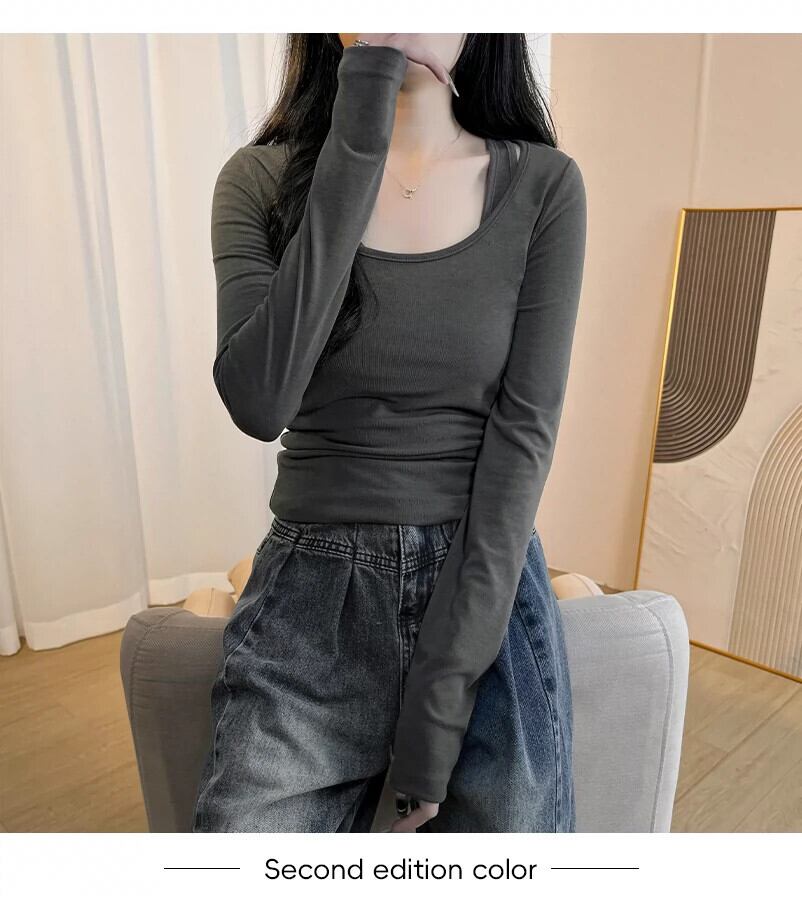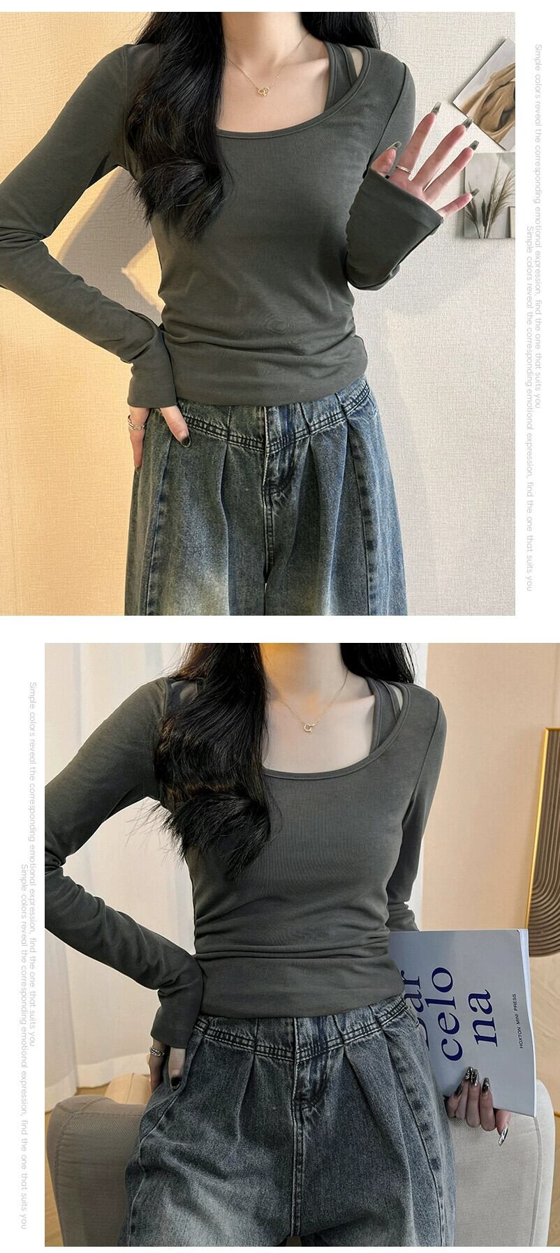 フェイクツーピースホルターネックショートトップレディース、春デザイン、ローネックボトムシャツ、スリムフィット、長袖Tシャツ ロング スプリング 春物 7460047760348730 | framboise21