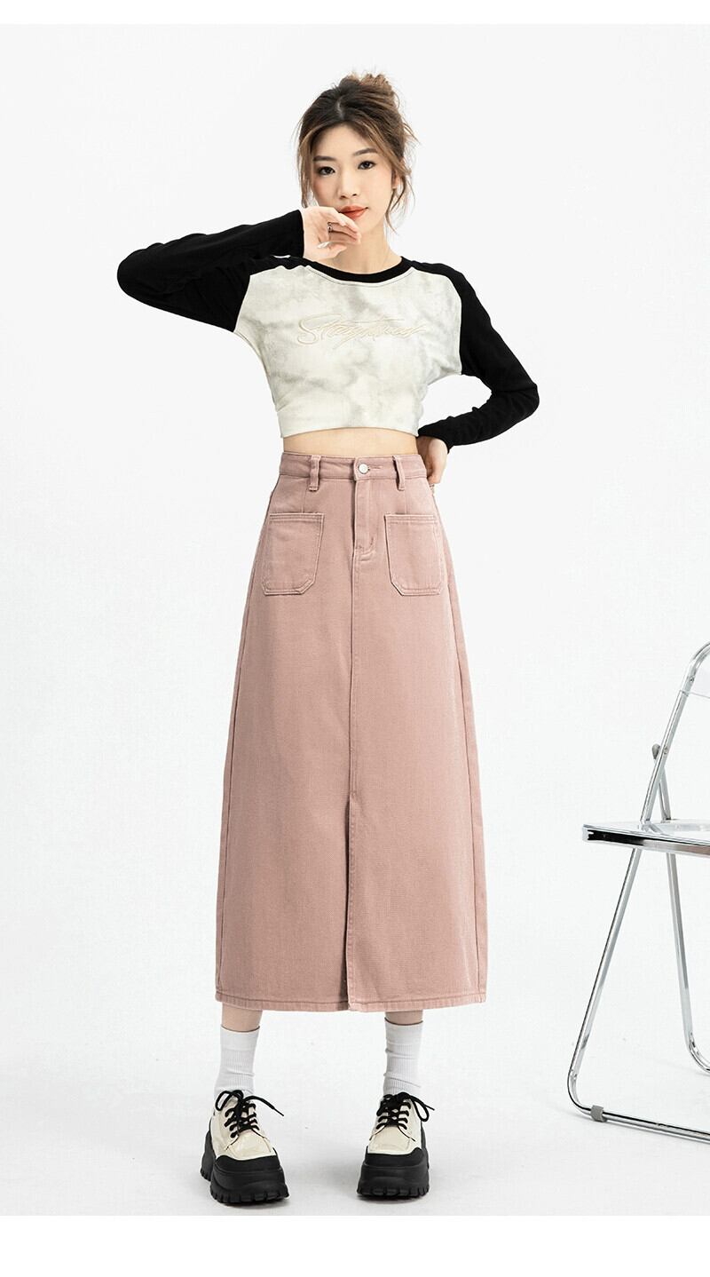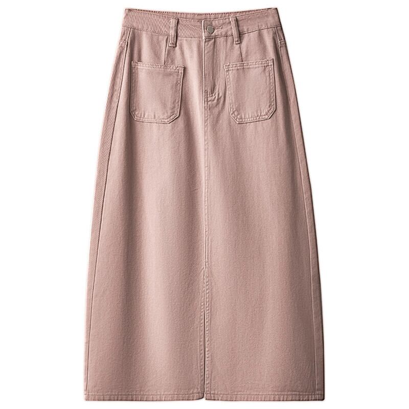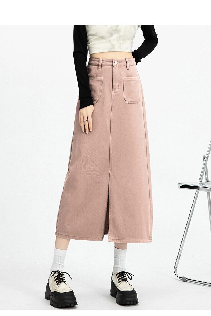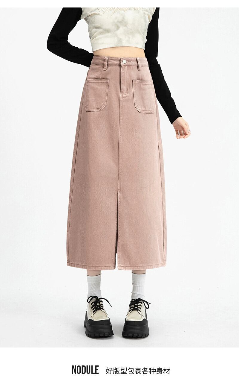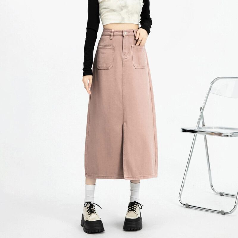 ピンクのハイウエストデニムスカート女性春と秋 2024 新しいハイウエスト痩身 a ラインミッドレングススリットヒップスカート スプリング 春物 オータム 秋物 Aライン 7460017000258013 | framboise21