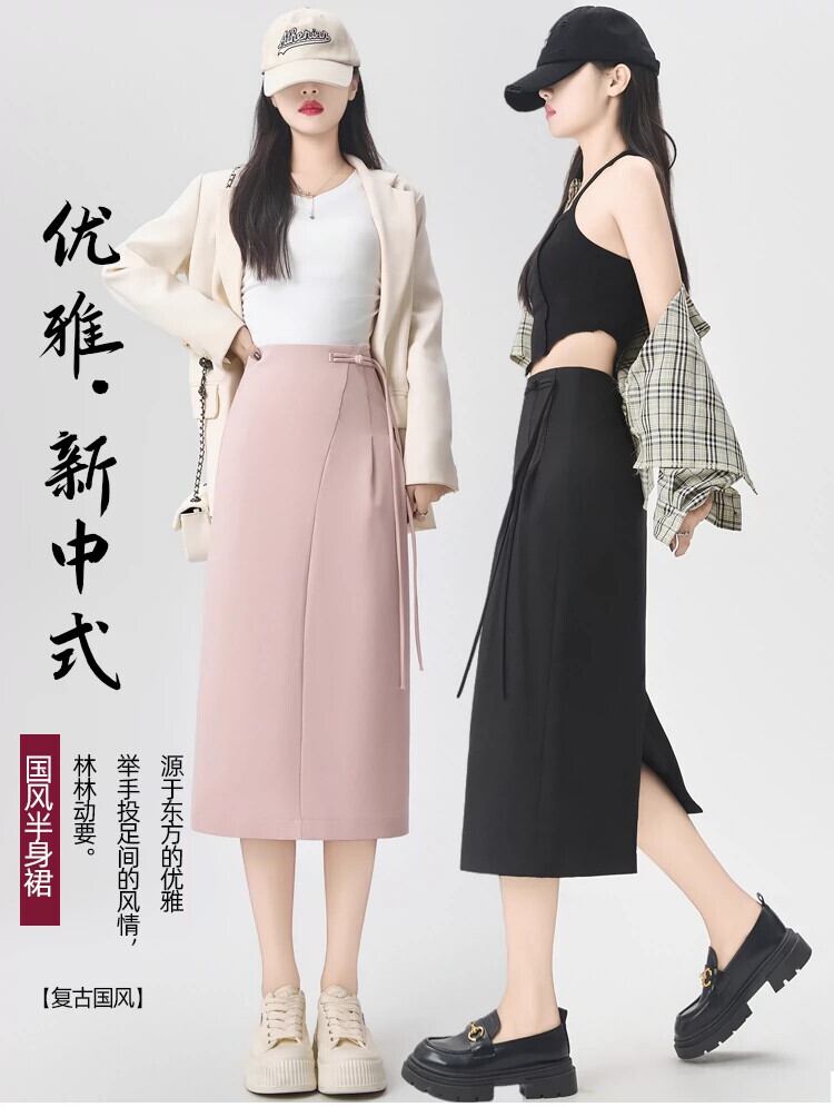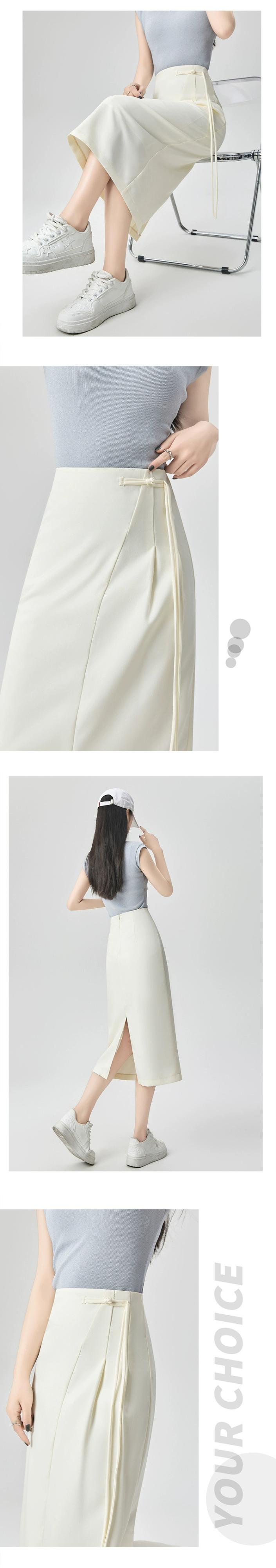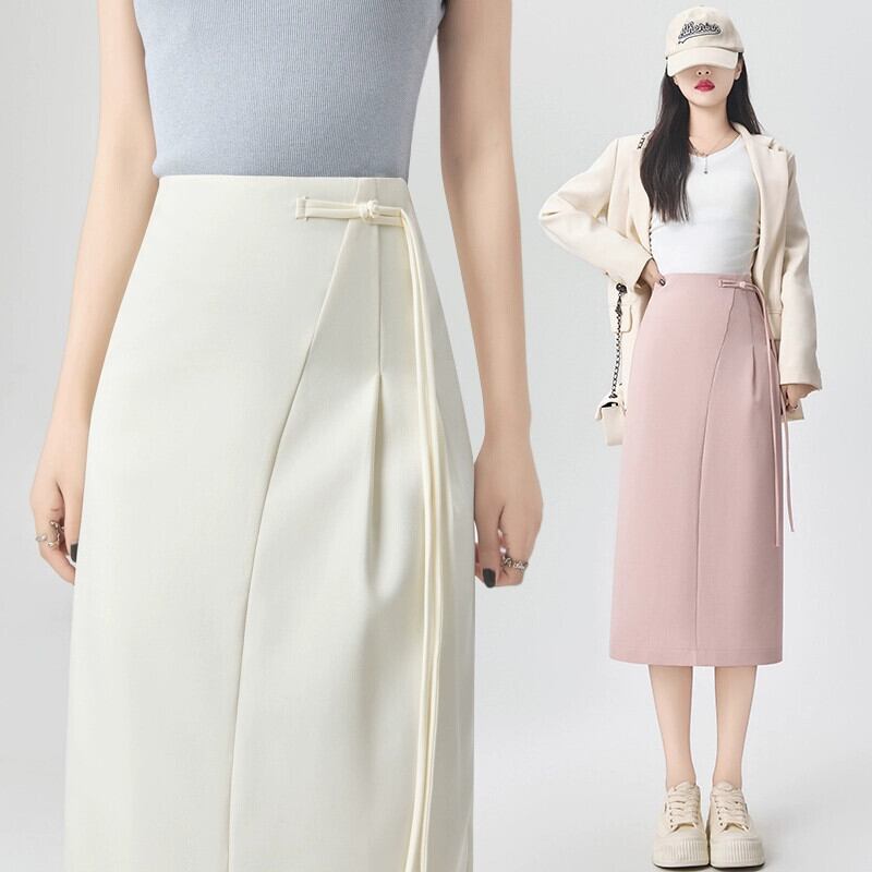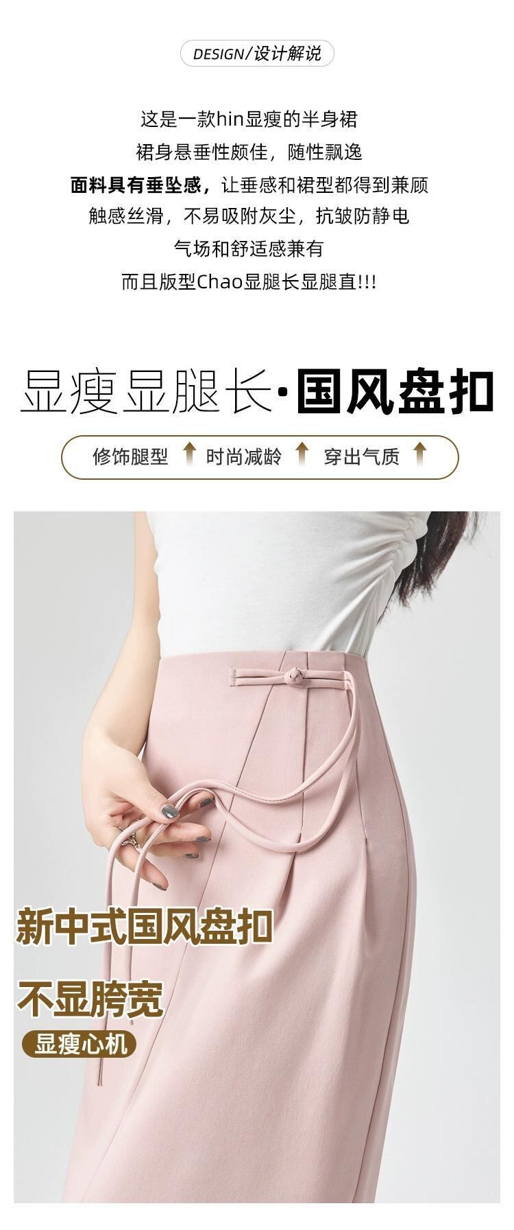 中国風のライト国民風バックルスカート女性の夏のハイウエストスリムドレープストレートバックスリットヒップカバースーツスカート ハイウェスト サマー 夏物 746009576335370 | framboise21