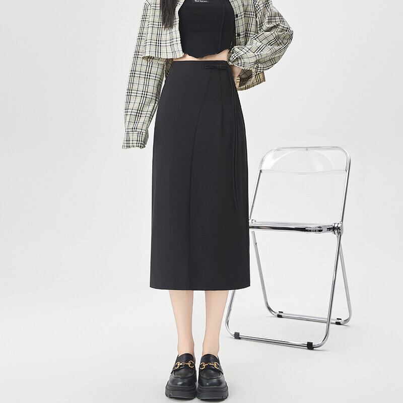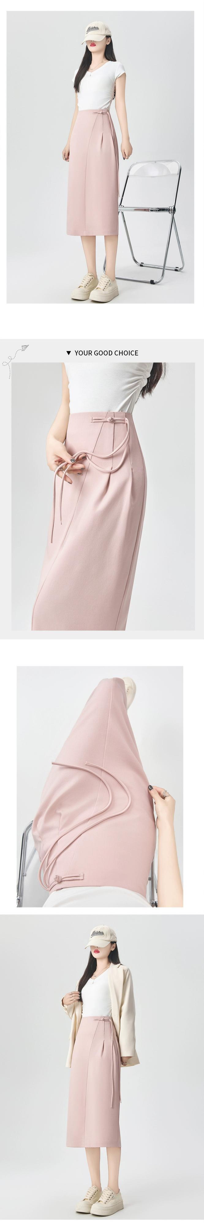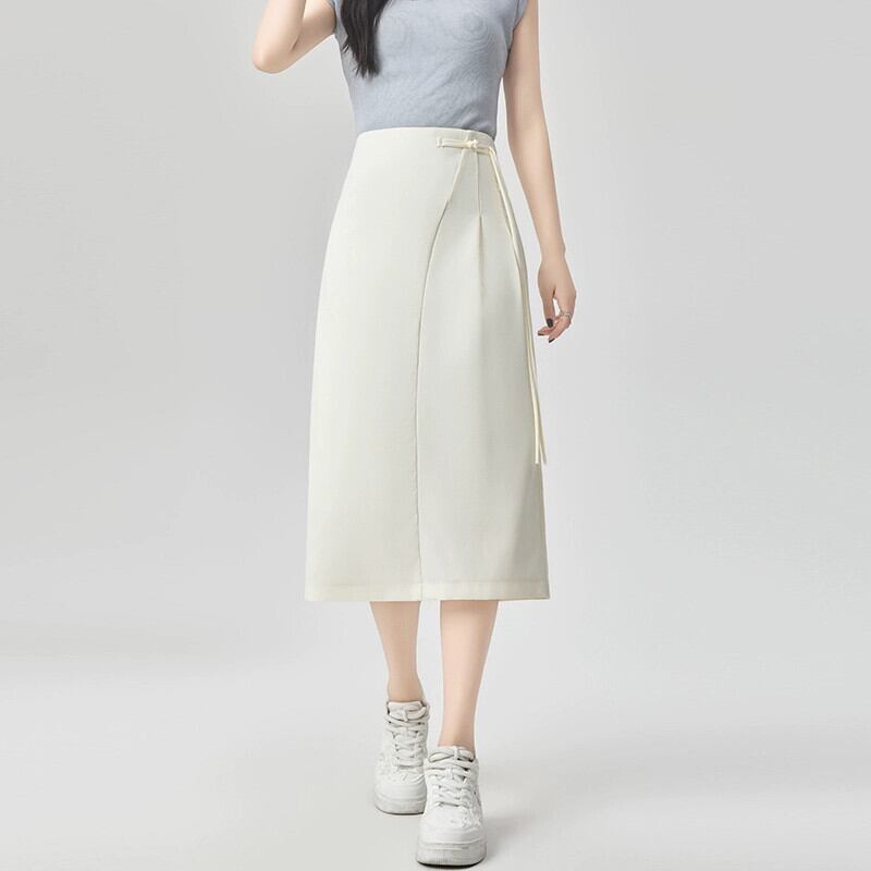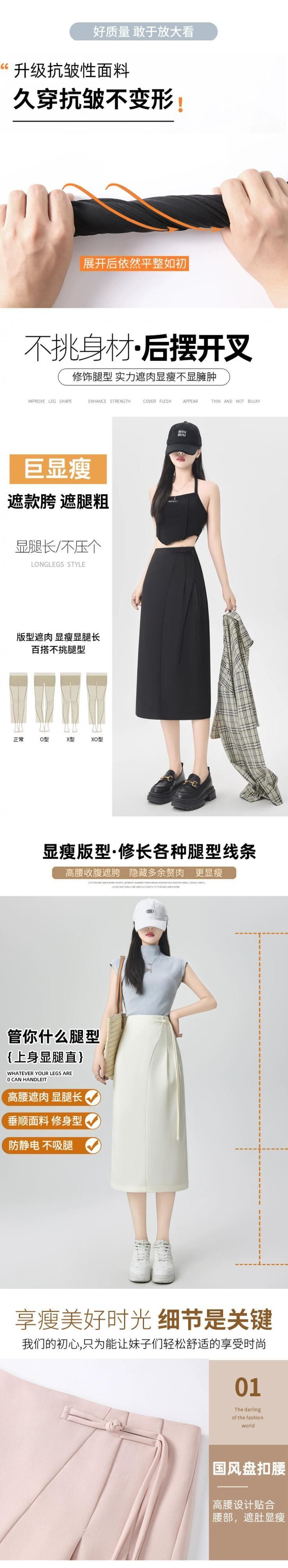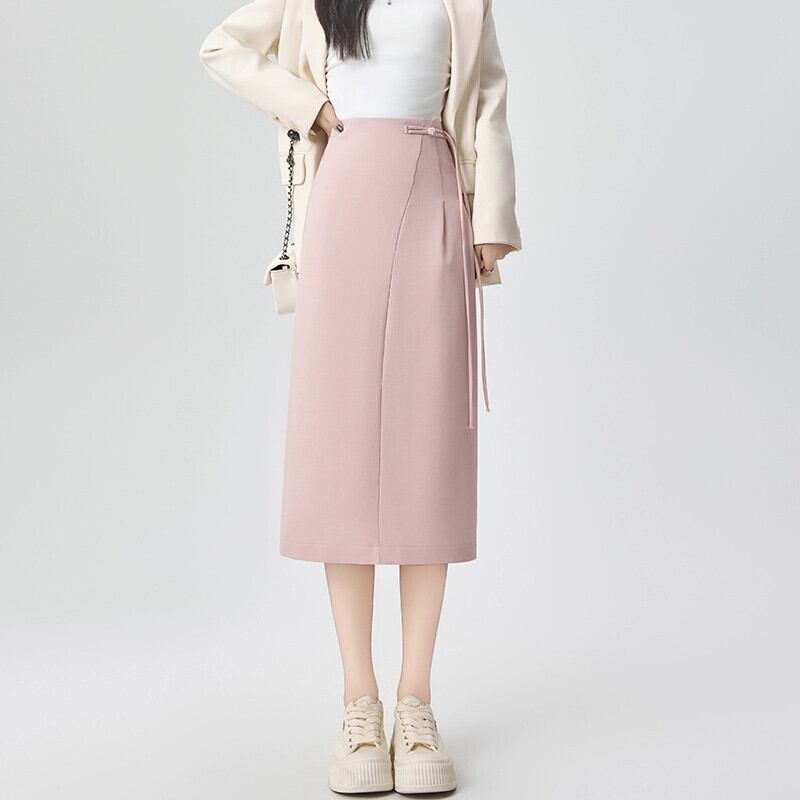 中国風のライト国民風バックルスカート女性の夏のハイウエストスリムドレープストレートバックスリットヒップカバースーツスカート ハイウェスト サマー 夏物 746009576335370 | framboise21