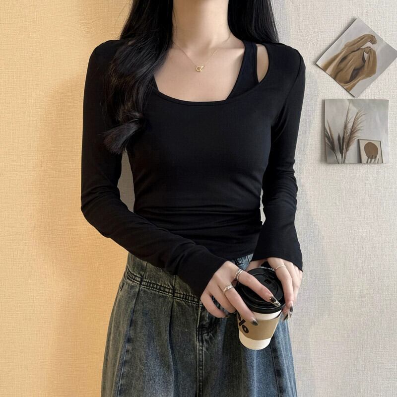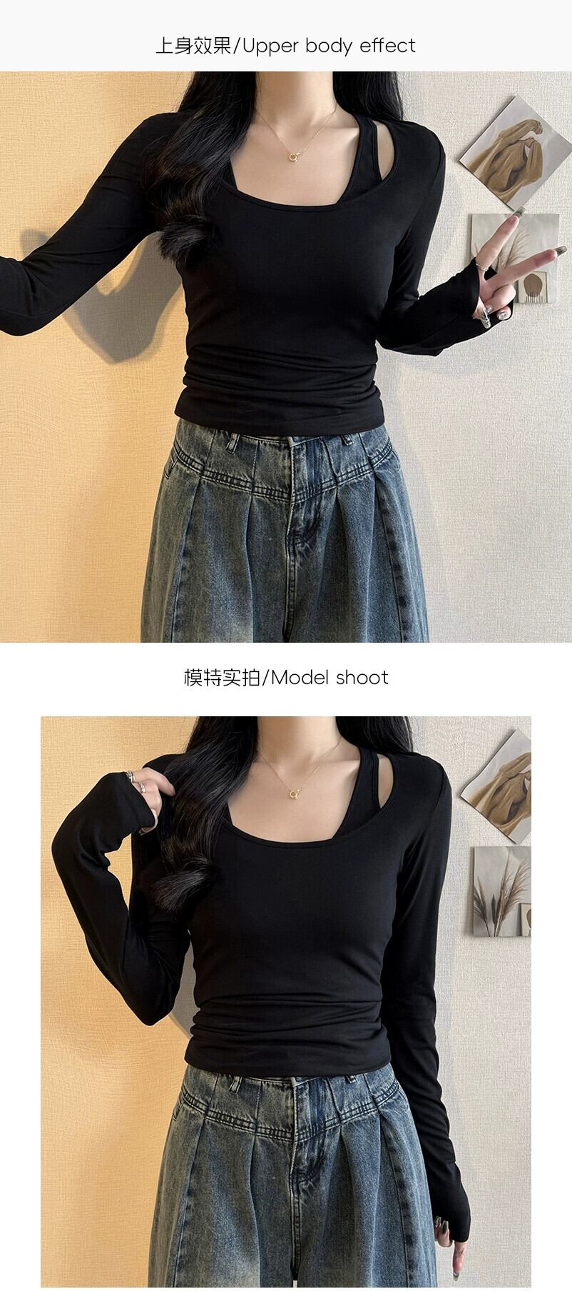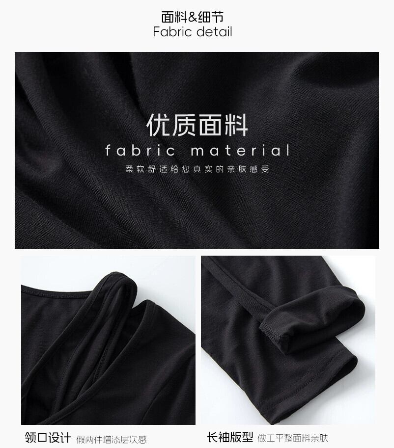 フェイクツーピースホルターネック長袖Tシャツレディース、2024年春秋の新デザイン、スリムフィット、ショートトップ ロング スプリング 春物 オータム 秋物 7460080198810004 | framboise21