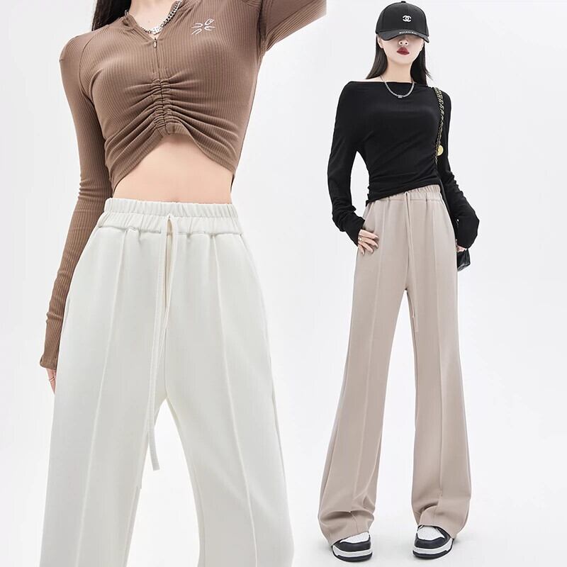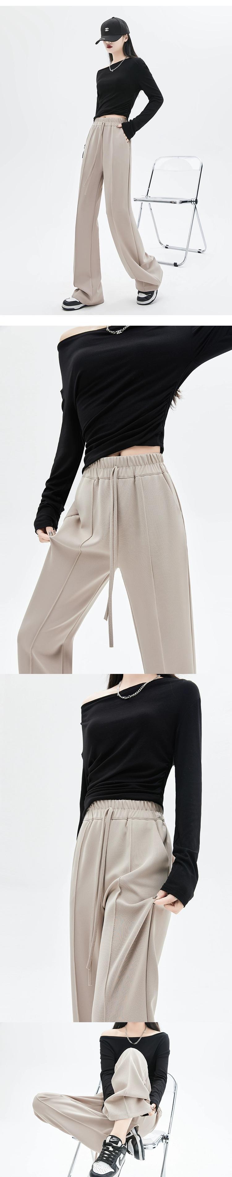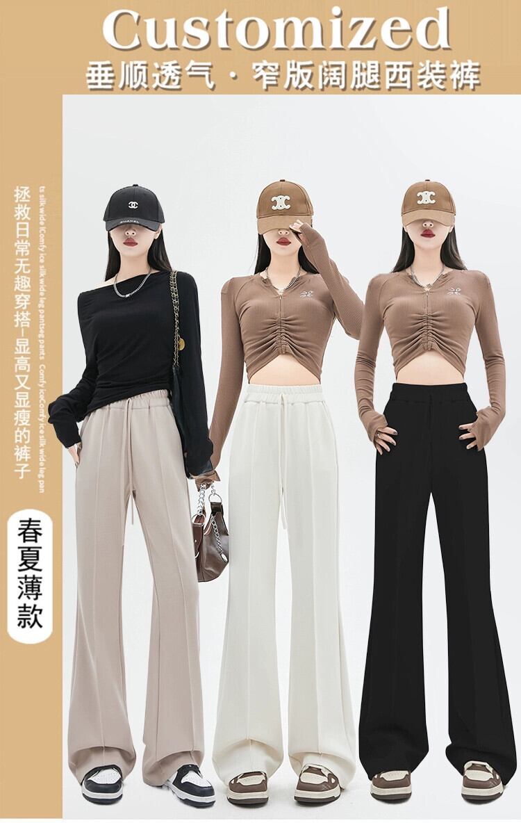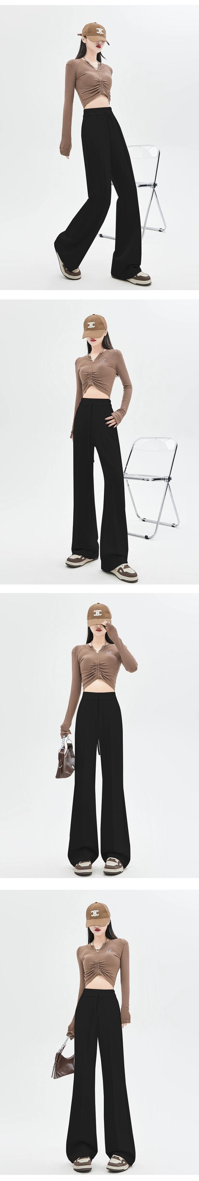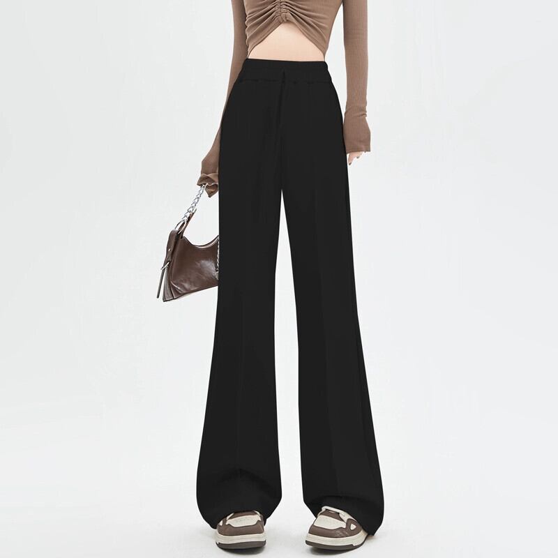 黒のマイクロフレアストレートスーツパンツレディース、春と秋のスタイル、ハイエンド、スリム、フロアレングス、カジュアルハイウエストワイドレッグパンツ レッド ブラック スプリング 春物 オータム 秋物 7460019269732045 | framboise21