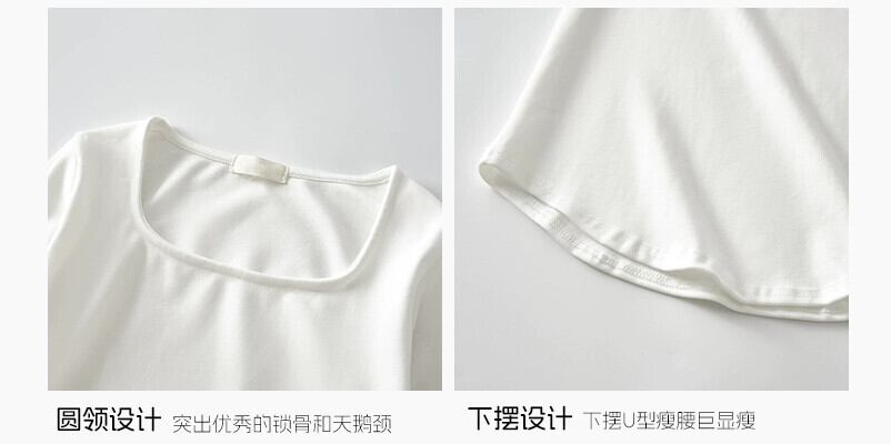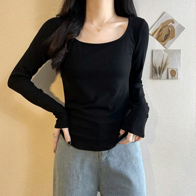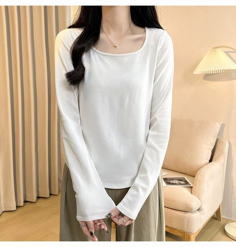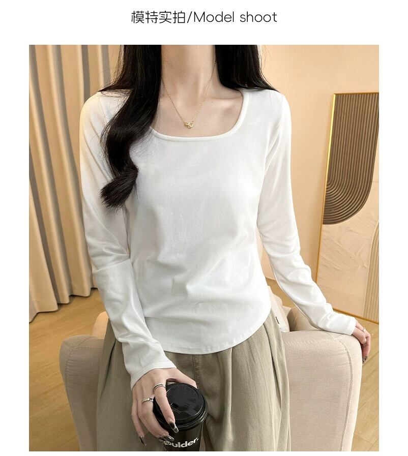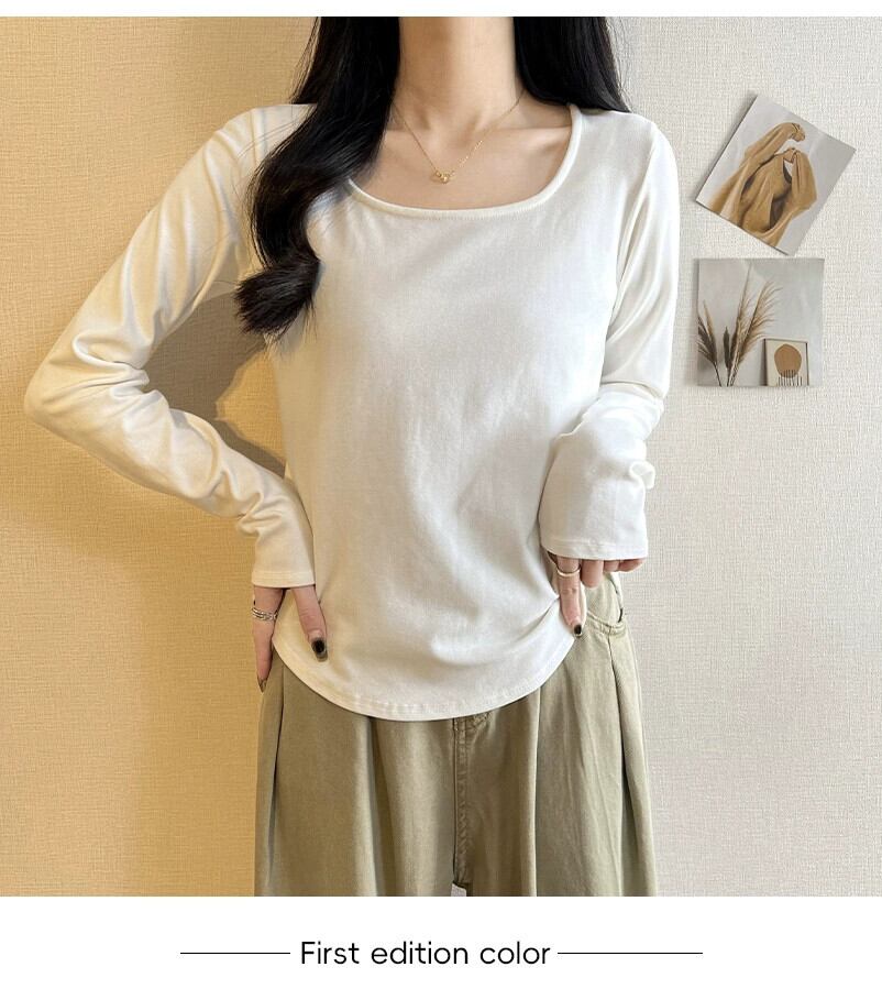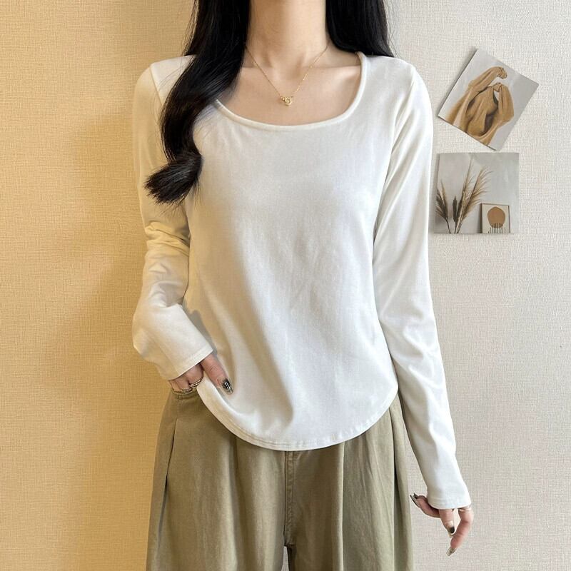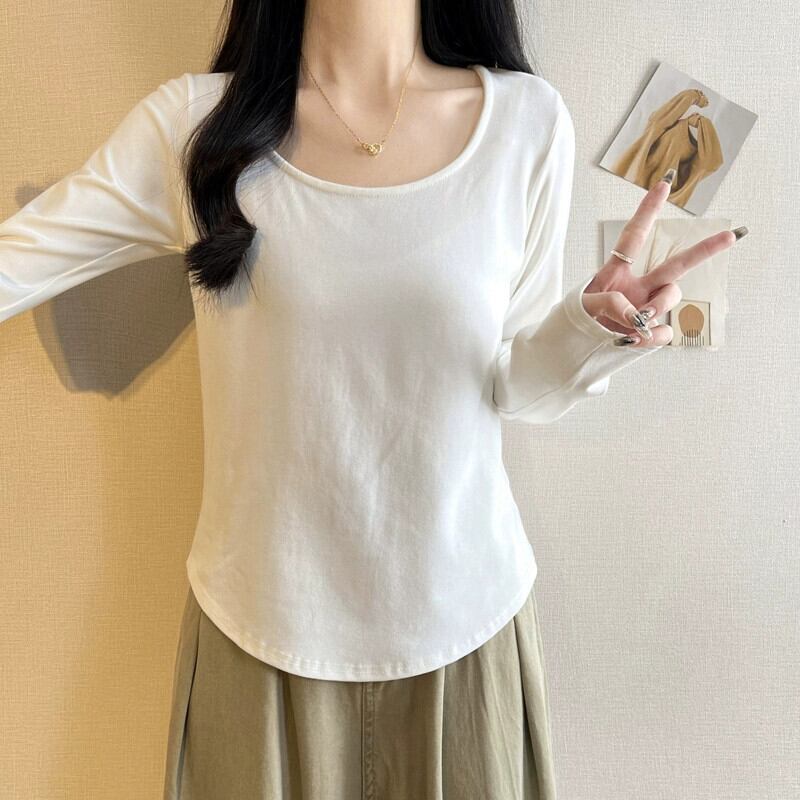 ホワイトコットン長袖 Tシャツ女性 2024 年春の新デザインスリムフィットインナー不規則な U ネックボトムトップ ロング スプリング 春物 7460080459444686 | framboise21