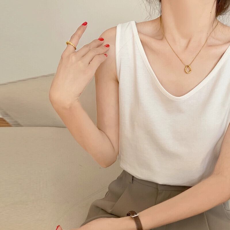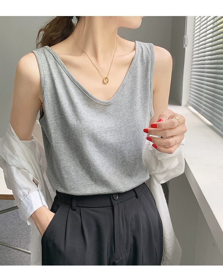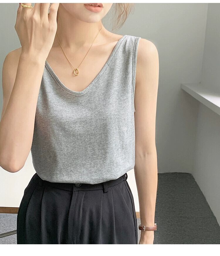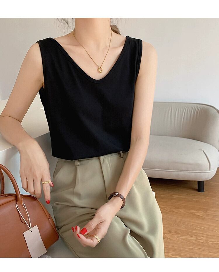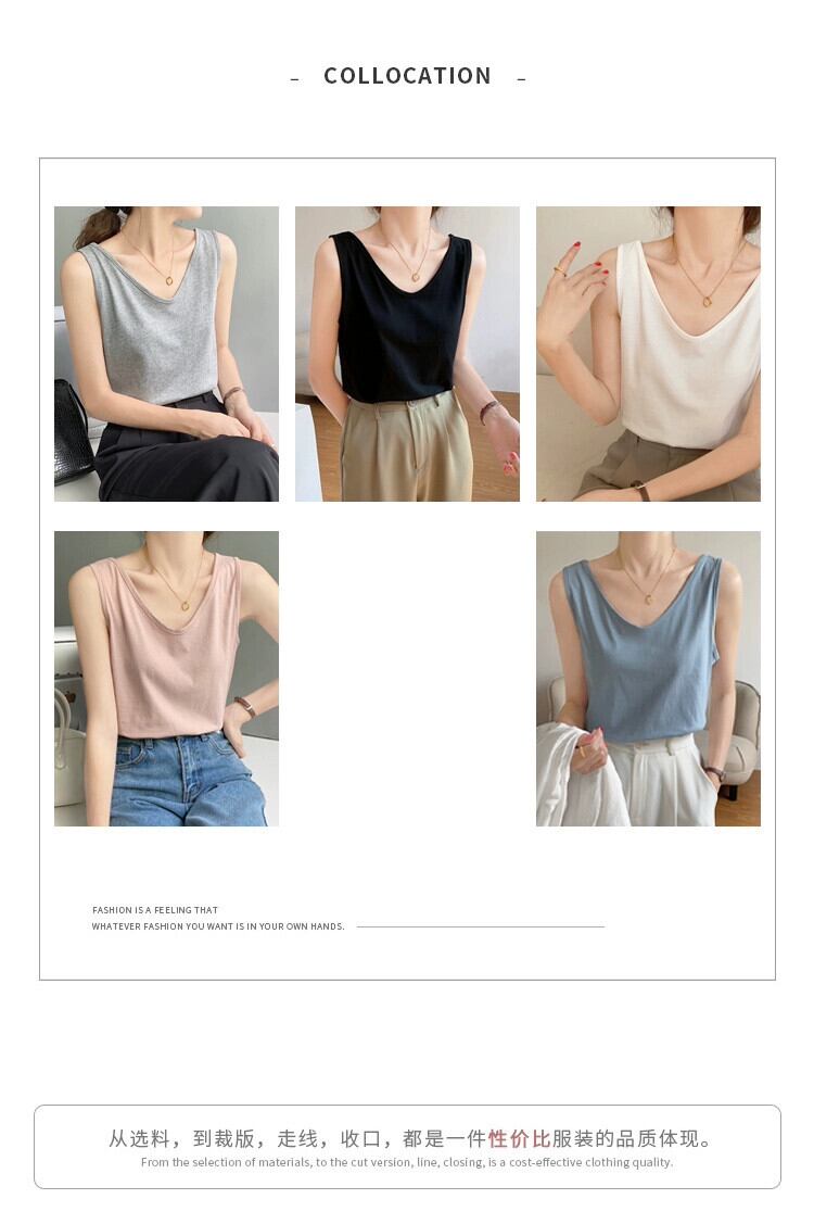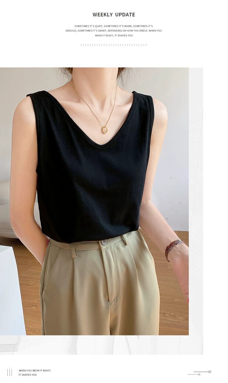 女性の 2024 春夏新作ハイエンド ルーズフィット ブラック ノースリーブ ボトムス トップ、スーツの中にキャミソールが付いています。 スプリング 春物 サマー 夏物 7460073143783429 | framboise21