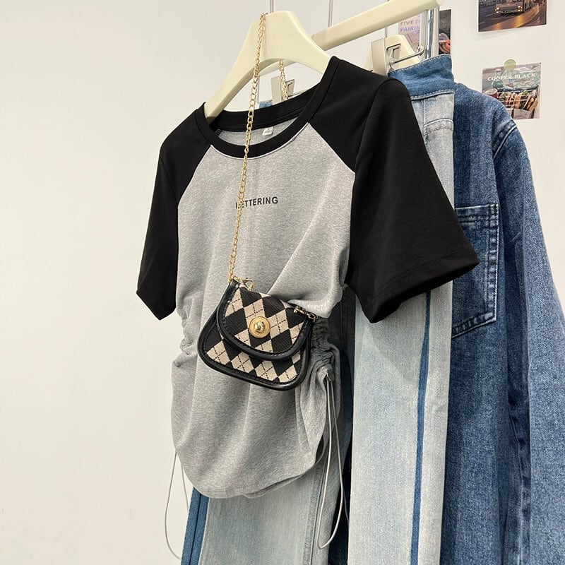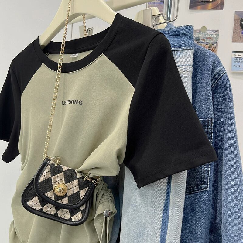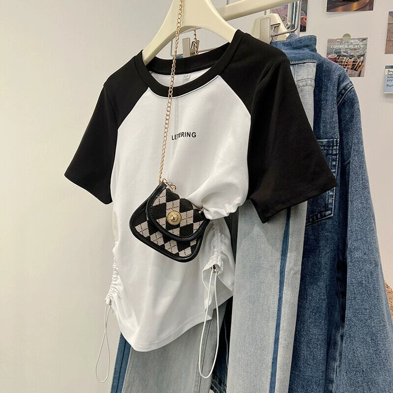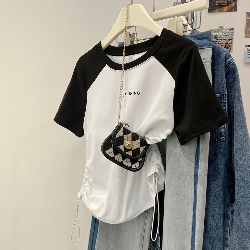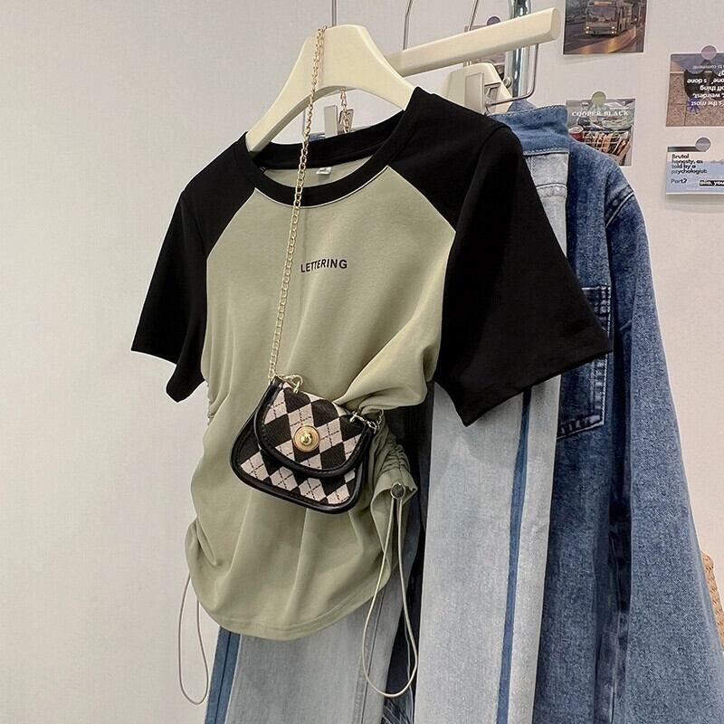 レトロなスリムフィット不規則なプリーツのラウンドネックトップトレンディな夏のアメリカンコットンラグラン半袖Tシャツレディース サマー 夏物 Oネック 7460080291590046 | framboise21