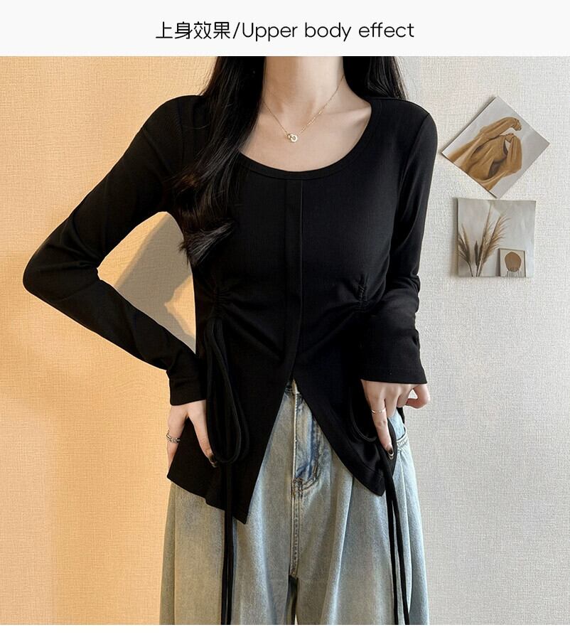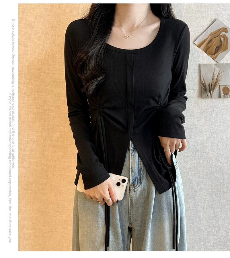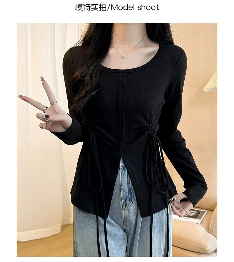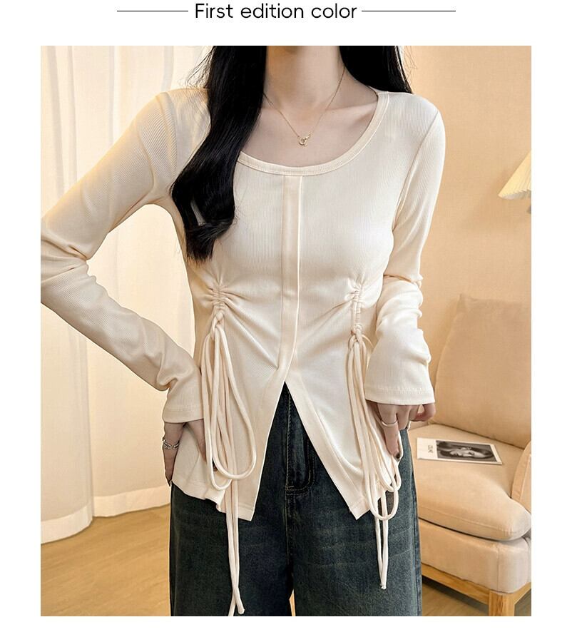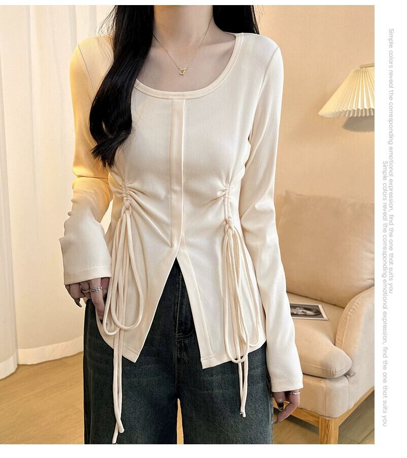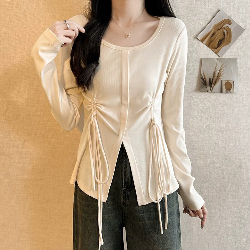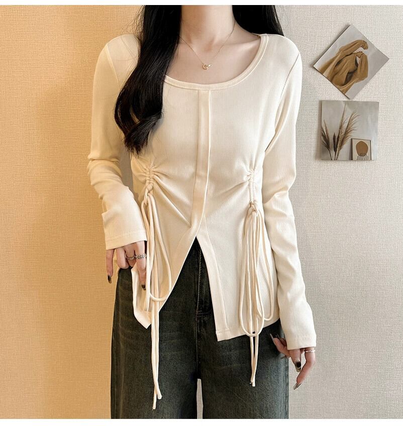 スリット長袖ボトムTシャツレディース、春デザイン、ファッショナブルなウエスト痩身、万能レースアップローネックトップ ロング スプリング 春物 746003406886813 | framboise21