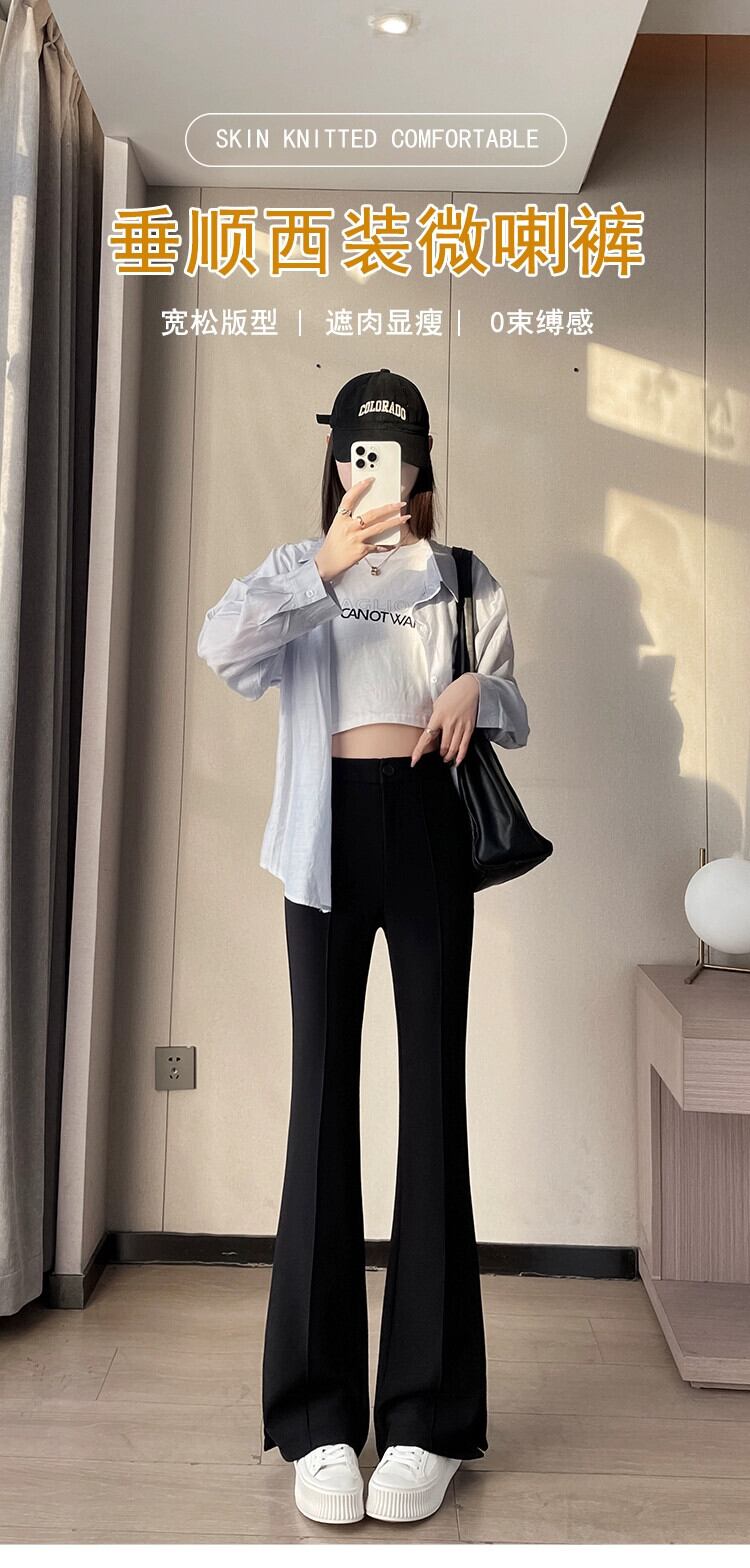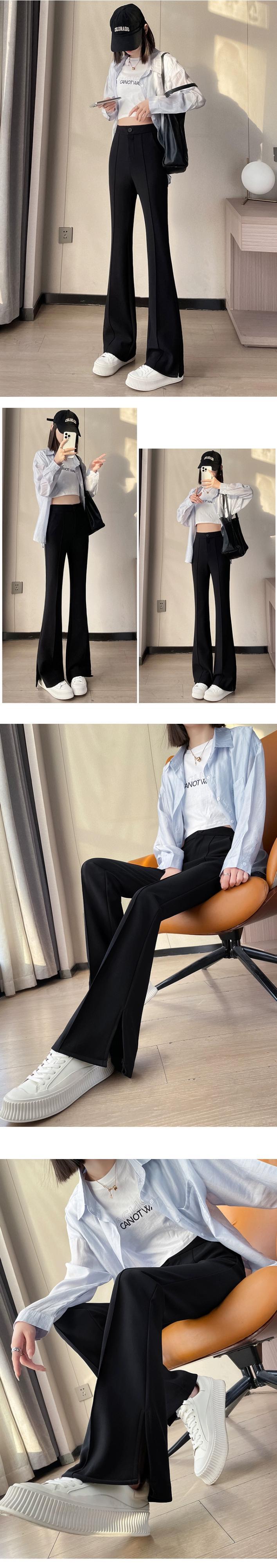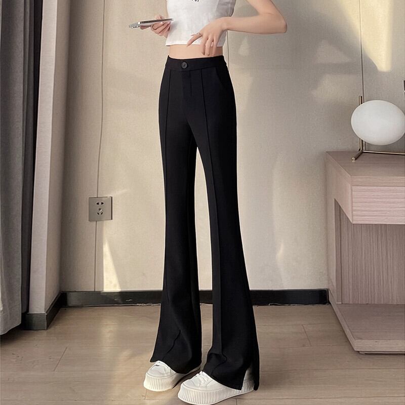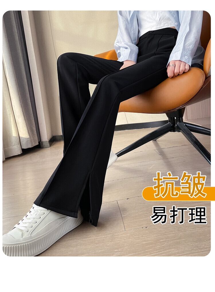 夏用ブラックスリットわずかフレアスーツパンツレディース、ハイウエスト、スリム、多用途、ナローバージョン、ストレートカジュアルフロアレングスフレアパンツ レッド サマー 夏物 7460043383934533 | framboise21