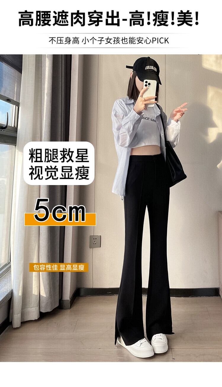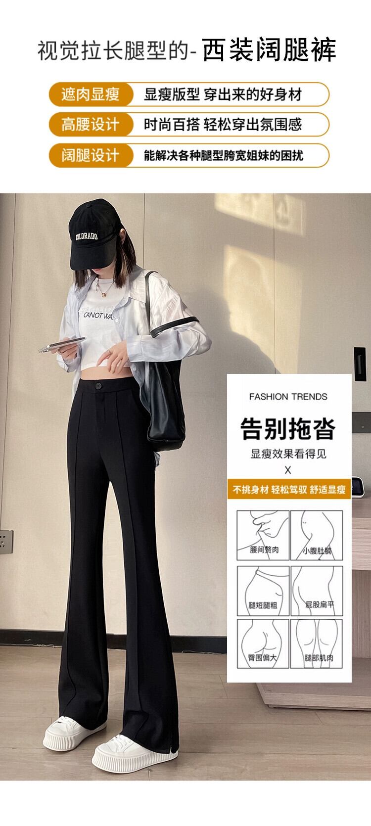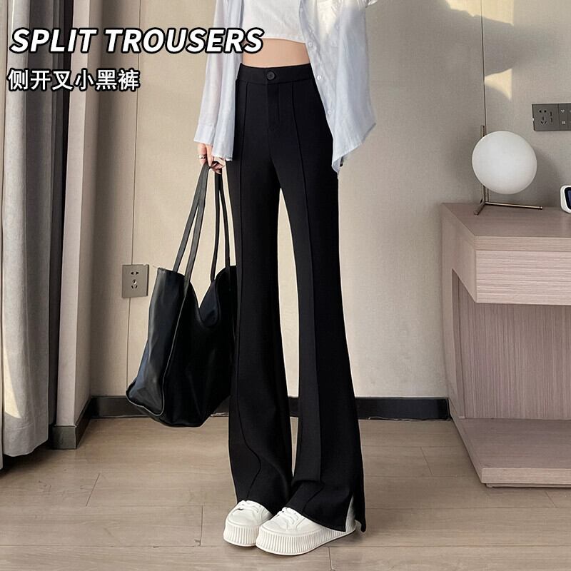 夏用ブラックスリットわずかフレアスーツパンツレディース、ハイウエスト、スリム、多用途、ナローバージョン、ストレートカジュアルフロアレングスフレアパンツ レッド サマー 夏物 7460043383934533 | framboise21