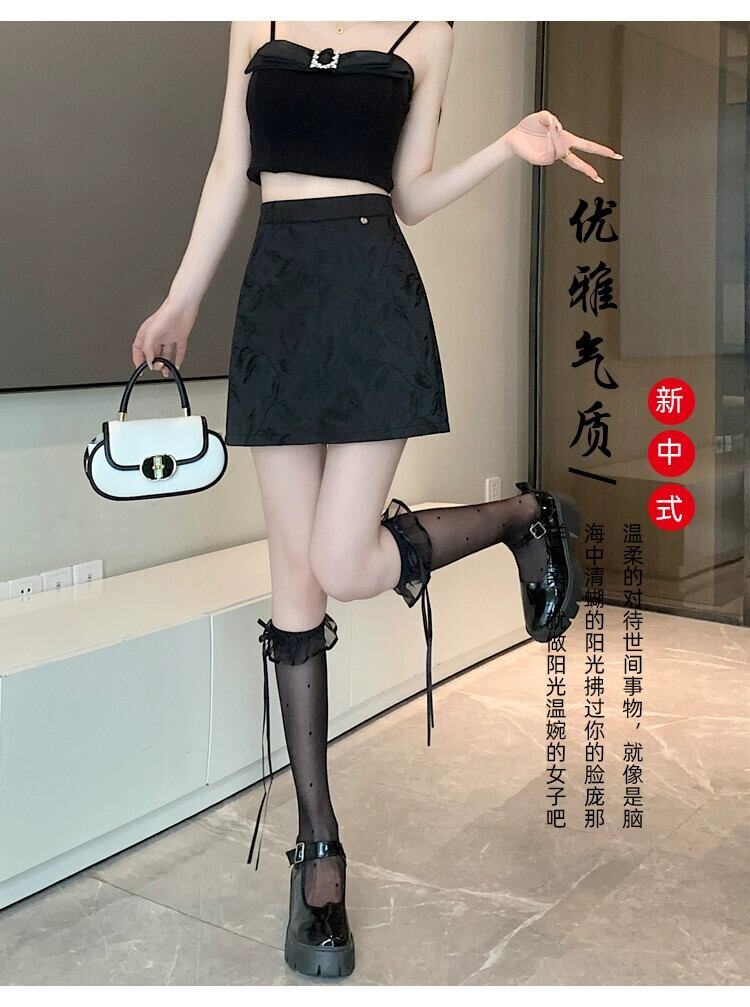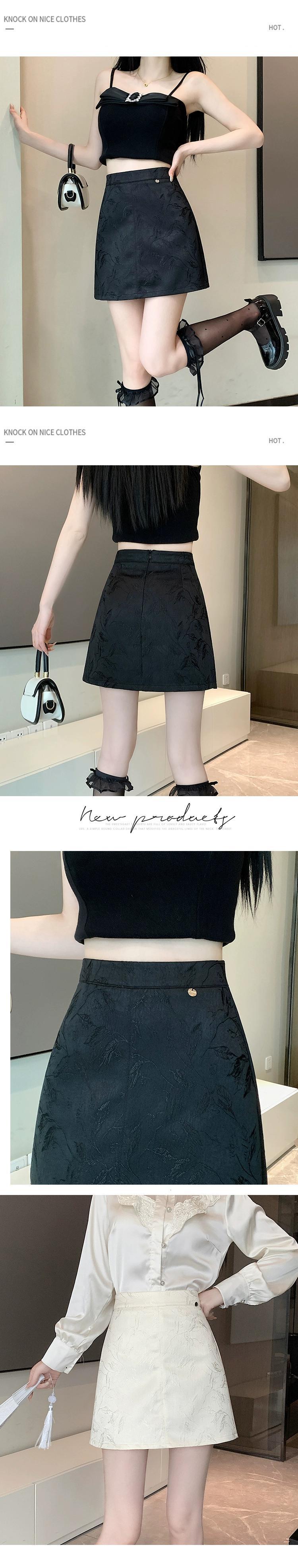 中国風国民風ジャカードスカート女性夏フレンチスタイルプチハイウエスト痩身多用途 A ラインヒップ抱きショートスカート ハイウェスト サマー 夏物 Aライン 746003907072245 | framboise21