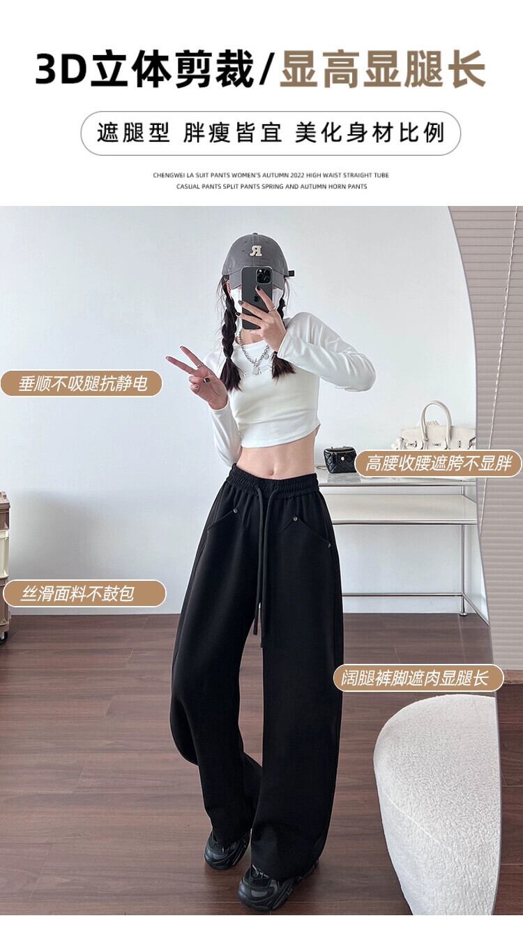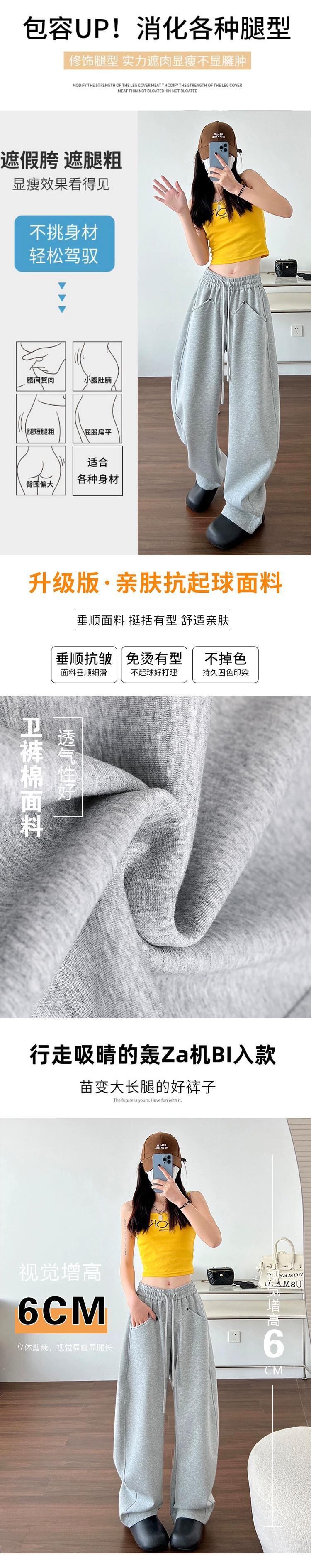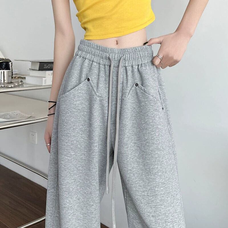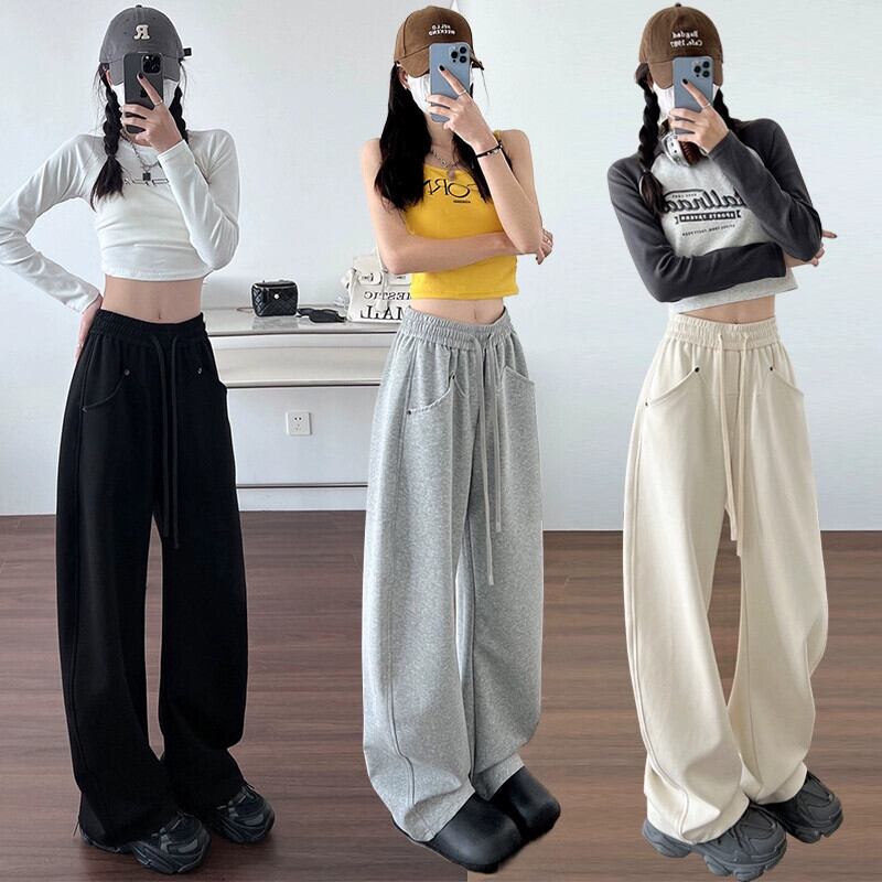 グレーストレートレッグスウェットパンツ女性 2024 新しい夏のカジュアルスウェットパンツハイウエストドレープルーズフロアレングスワイドレッグパンツ サマー 夏物 7460064515138353 | framboise21