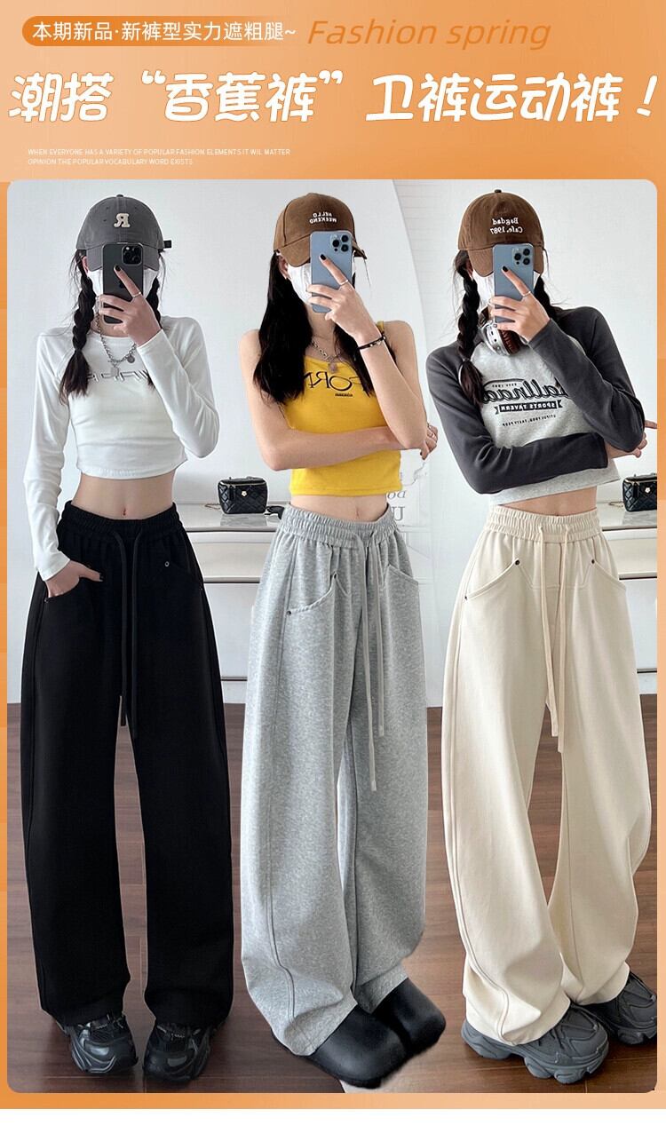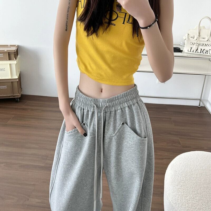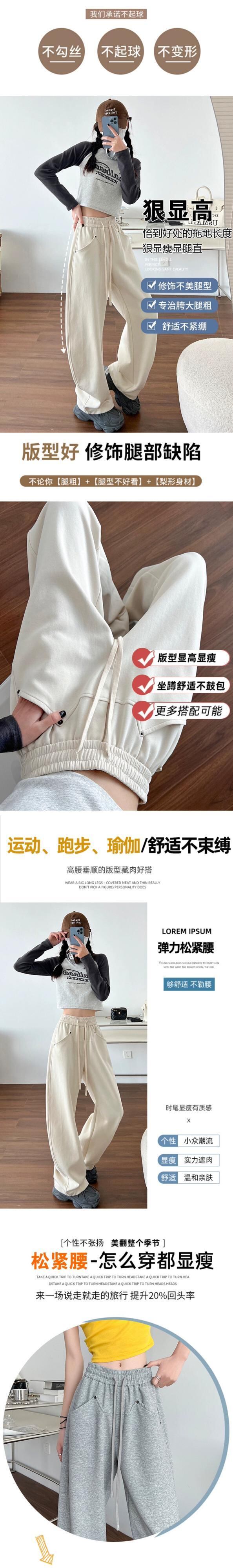 グレーストレートレッグスウェットパンツ女性 2024 新しい夏のカジュアルスウェットパンツハイウエストドレープルーズフロアレングスワイドレッグパンツ サマー 夏物 7460064515138353 | framboise21