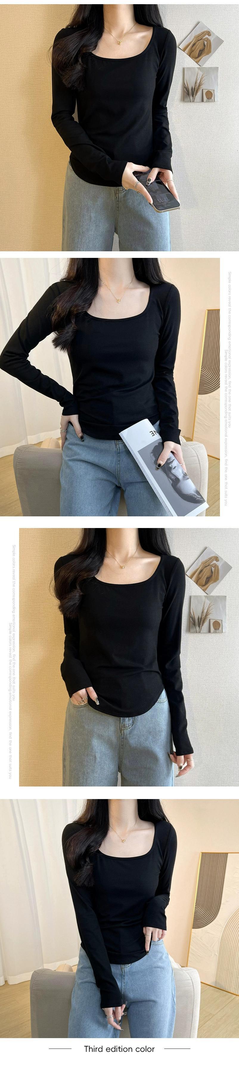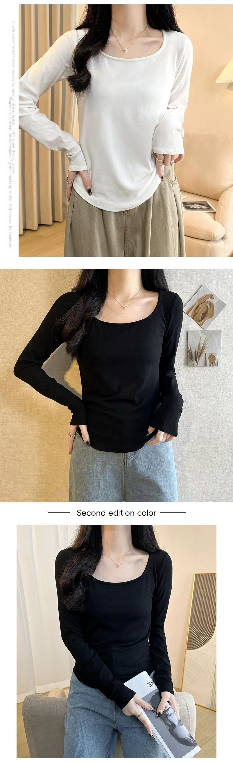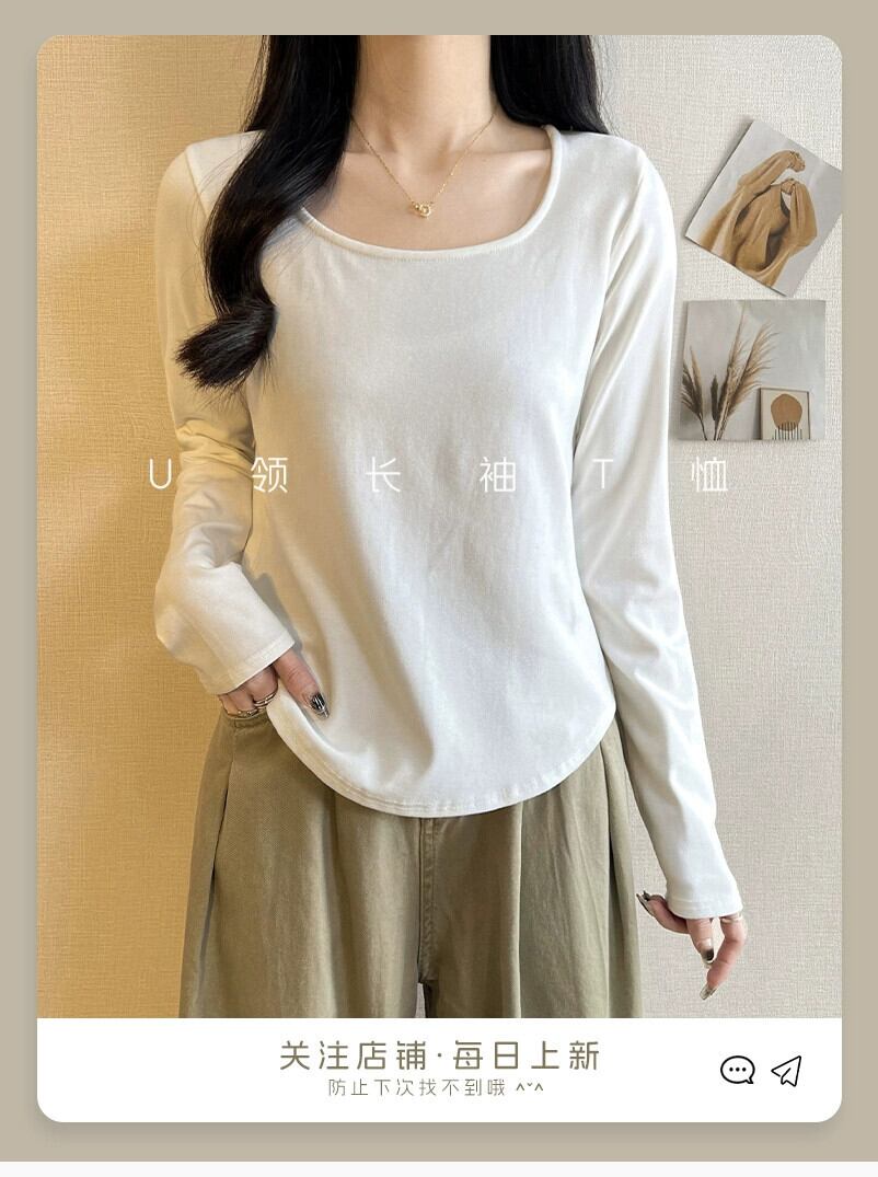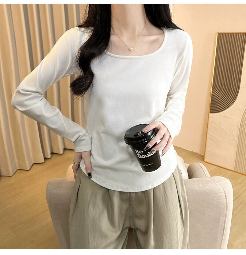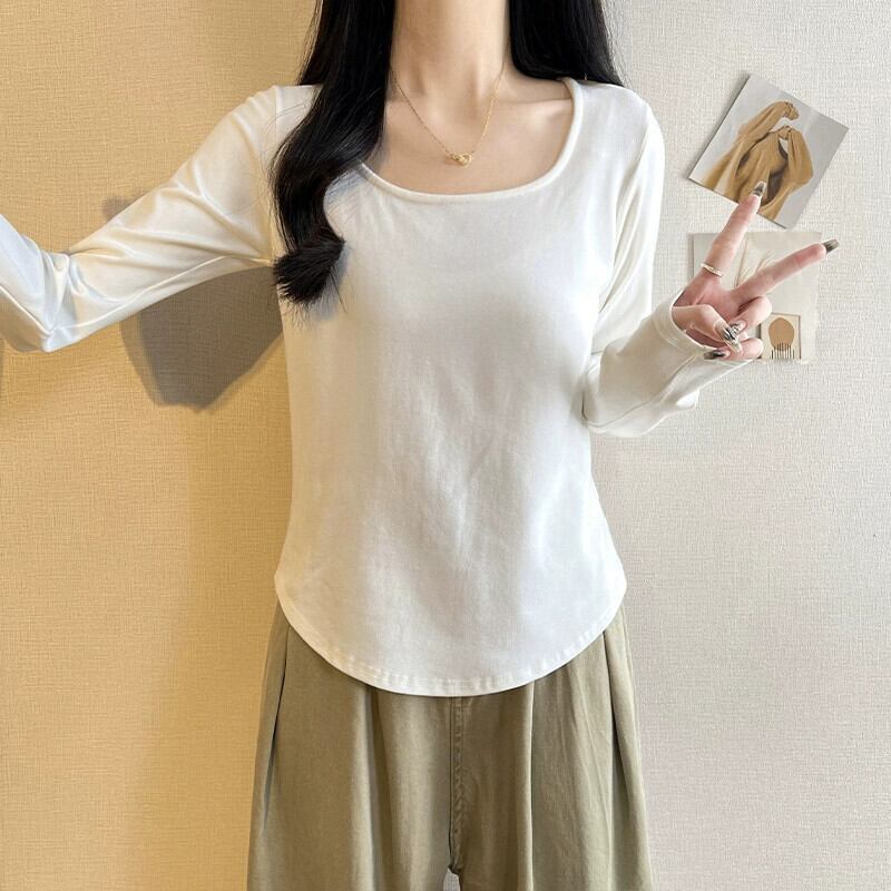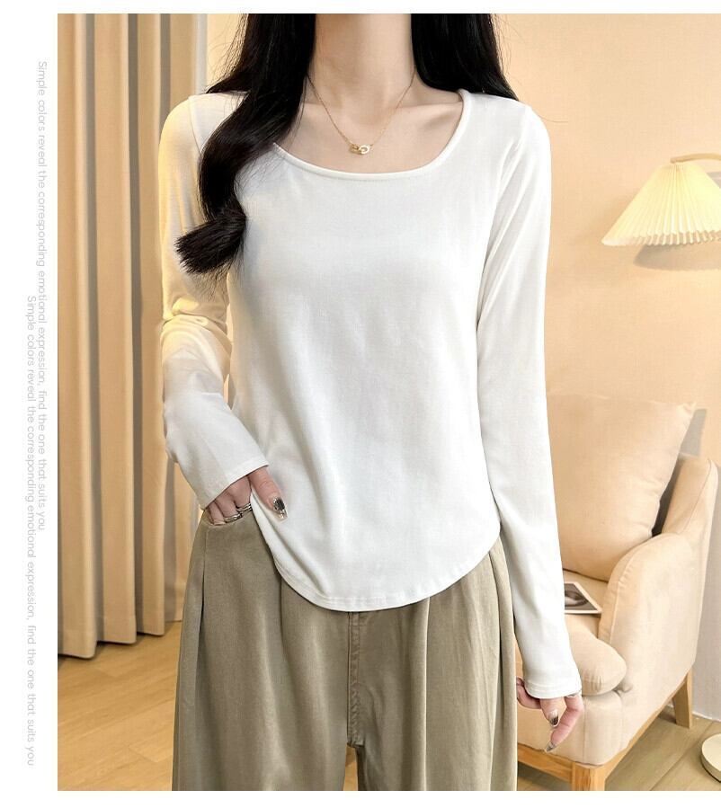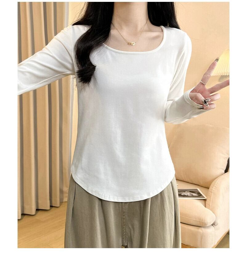 春の黒の純粋な綿の長袖 T シャツの女性、ハイエンドのローネックのボトム シャツ、スリム フィット、不規則なトップの内側 ロング ブラック コットン スプリング 春物 Tシャツ ピュア 7460054280350426 | framboise21