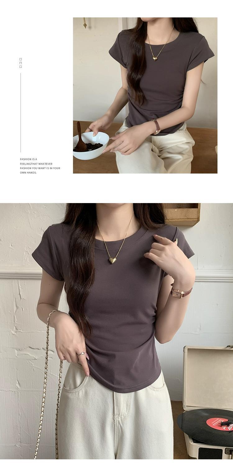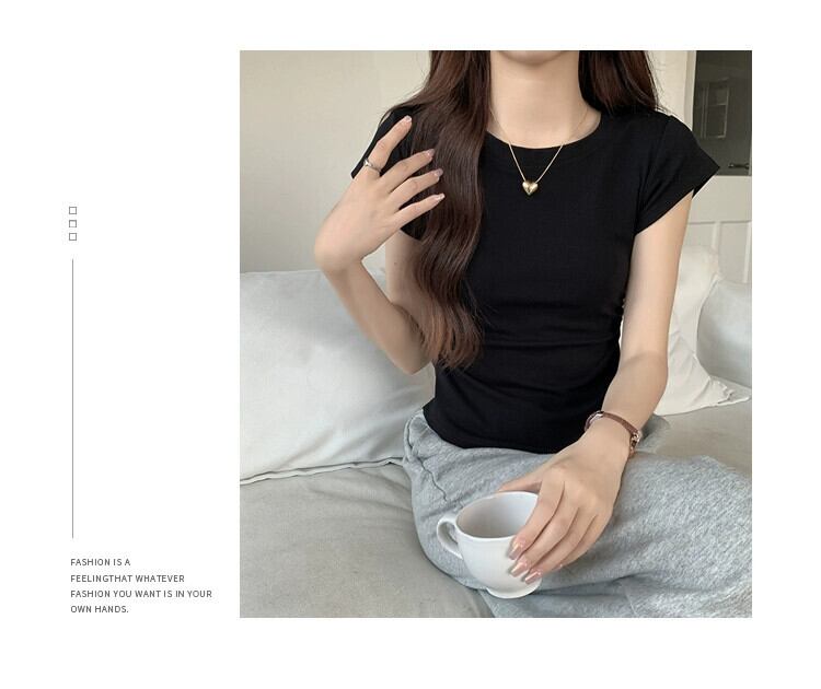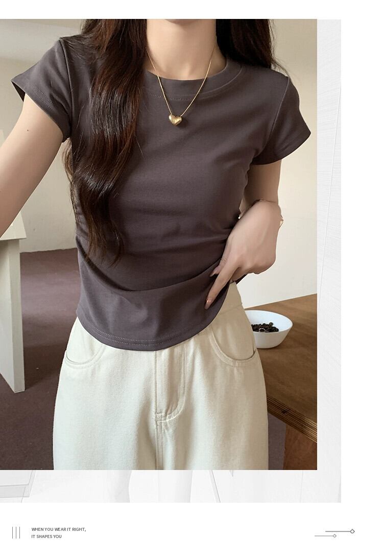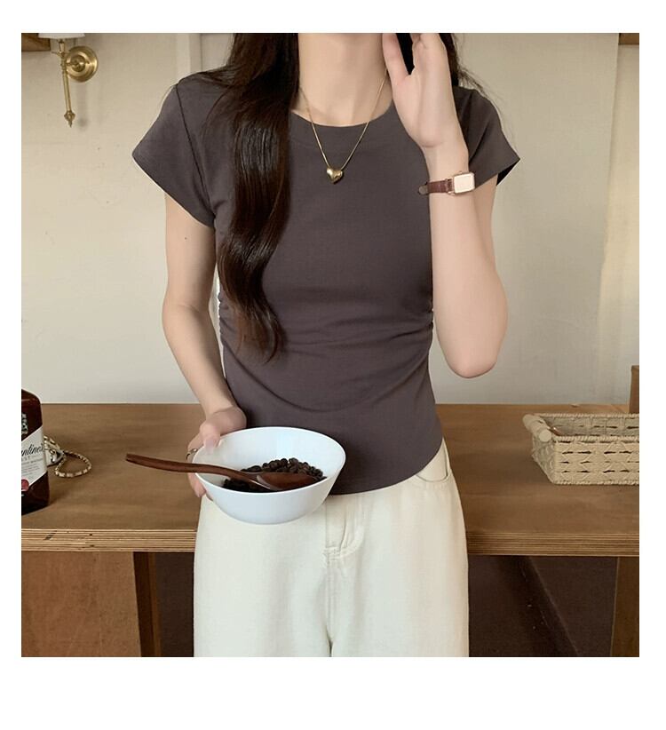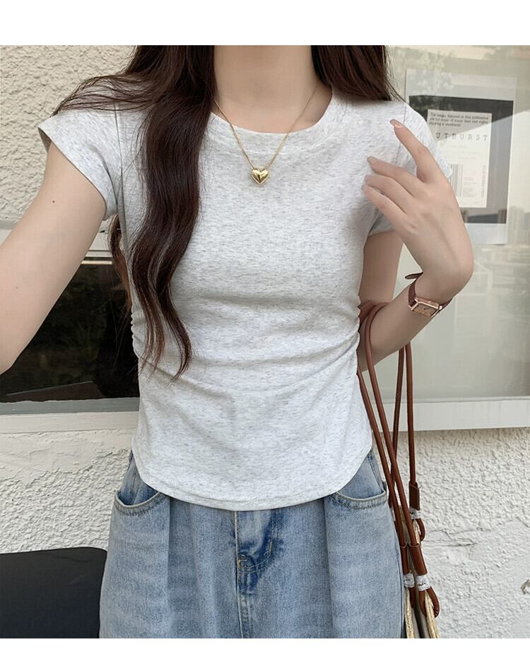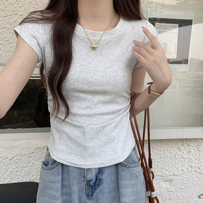 夏のグレーの右肩半袖 T シャツの女性、スリム、ファッショナブル、不規則なプリーツのショート トップ、トレンディな サマー 夏物 Tシャツ 7460010996867207 | framboise21