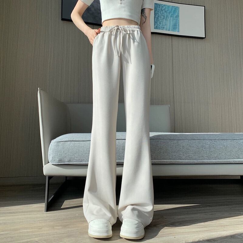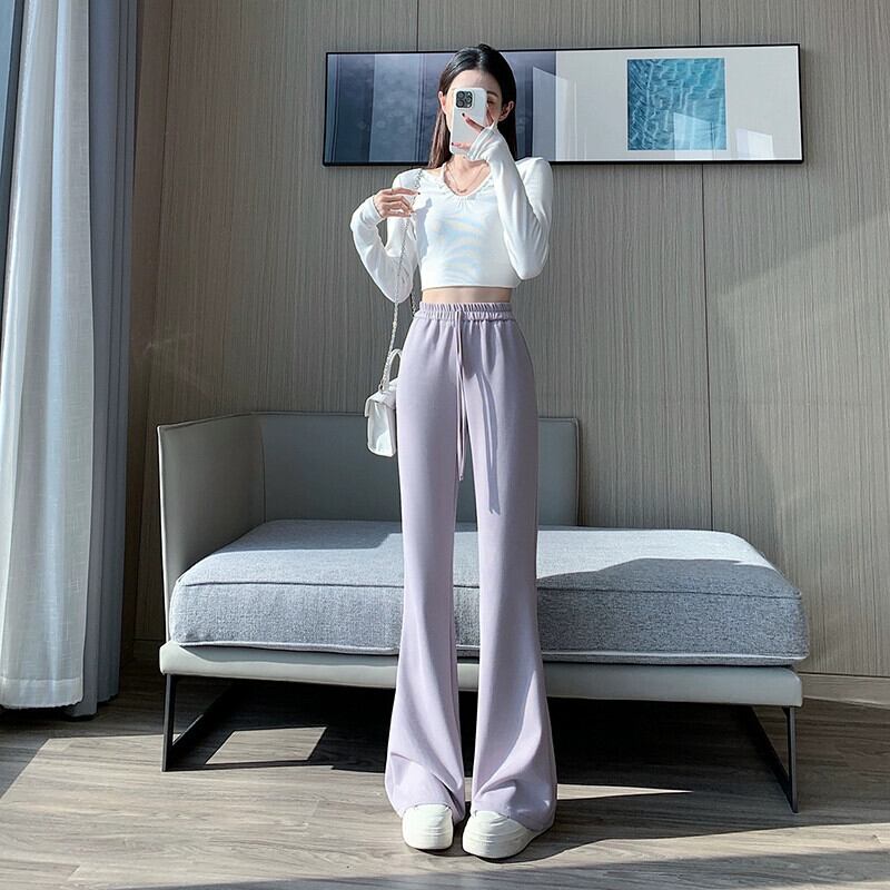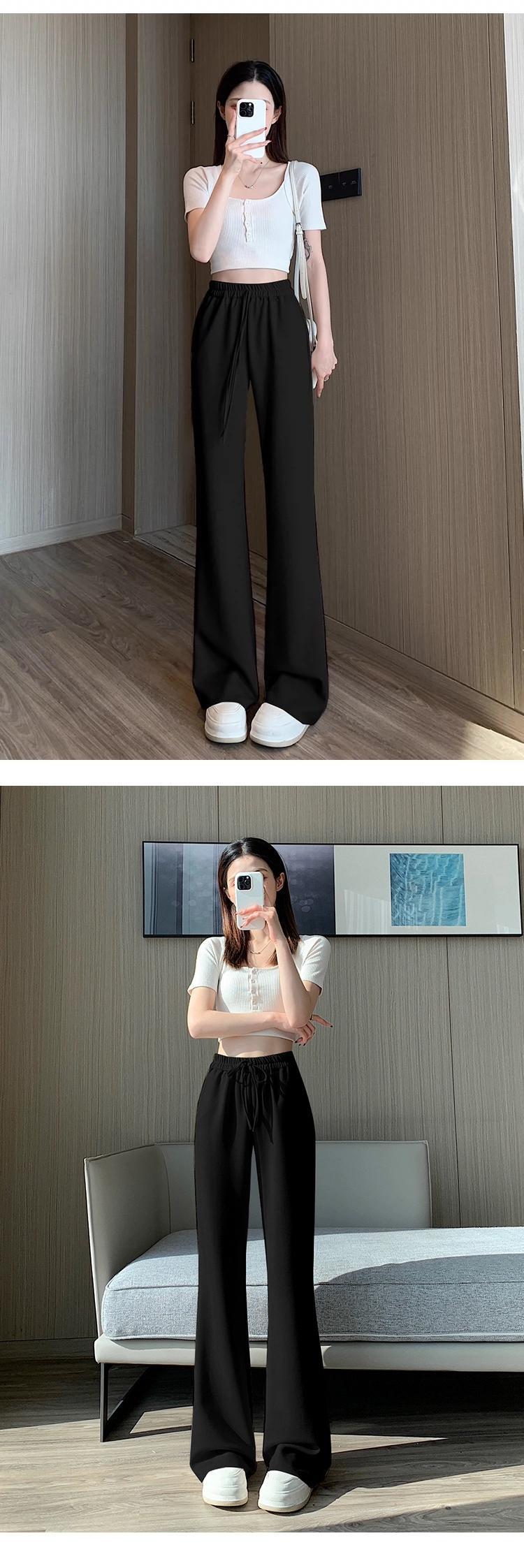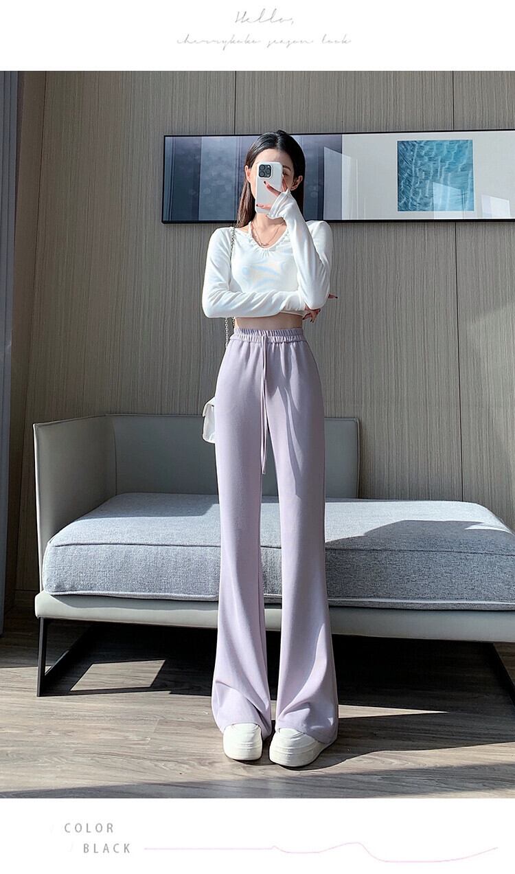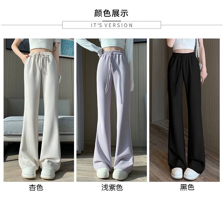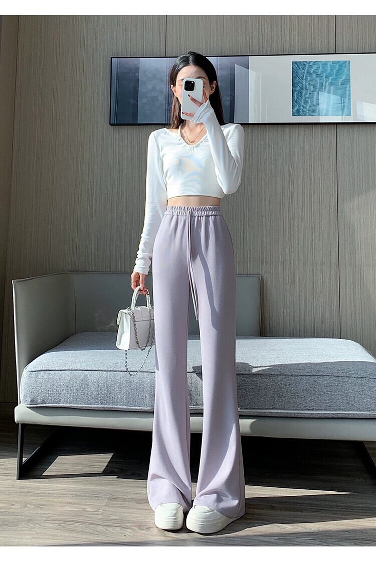 アプリコット ハイウエスト マイクロ フレア パンツ レディース 夏、アイスシルク ナロー ワイドレッグ パンツ、ハイウエスト、スリムでドレープのあるストレート カジュアル パンツ レッド サマー 夏物 7460088009742942 | framboise21