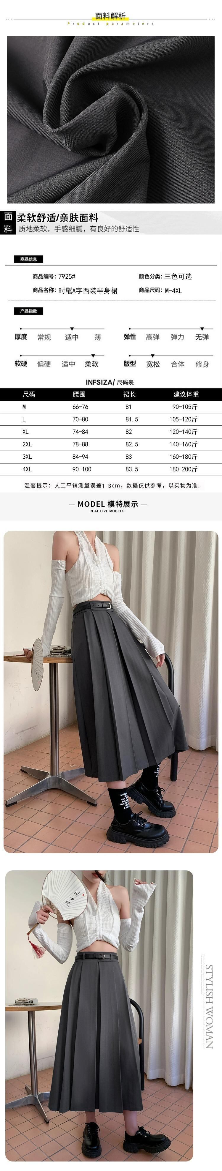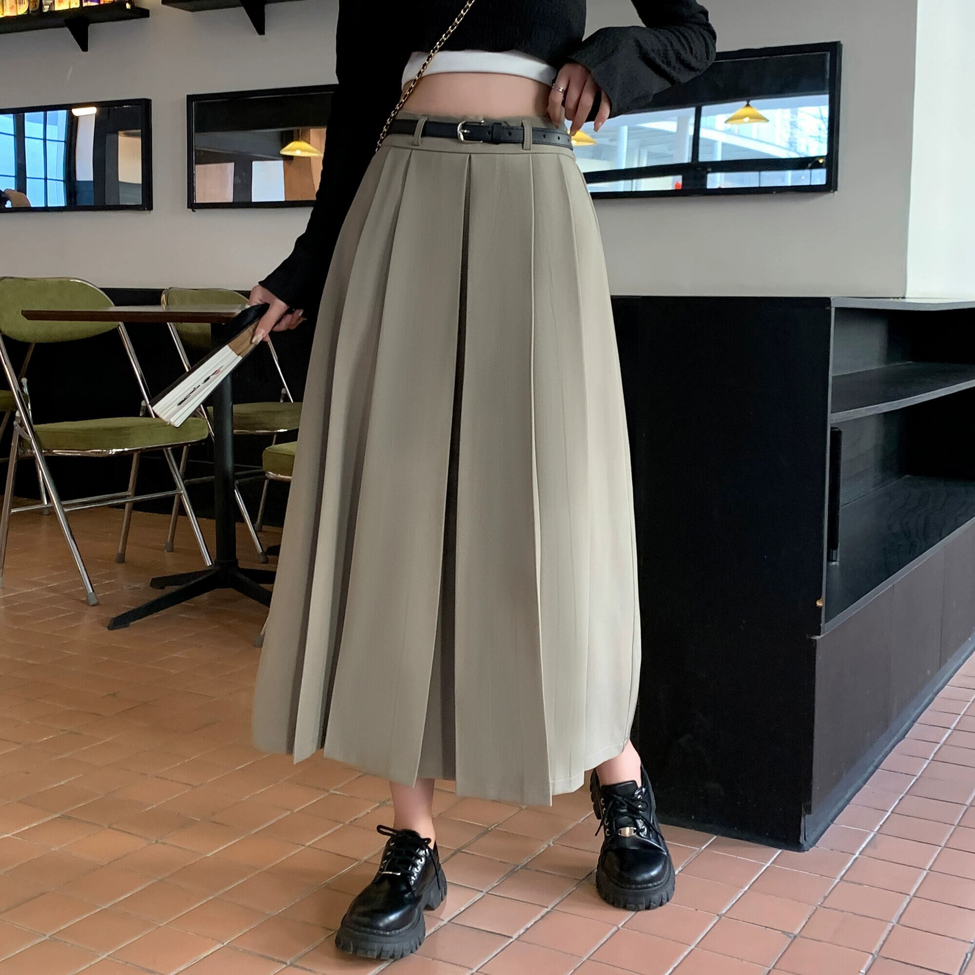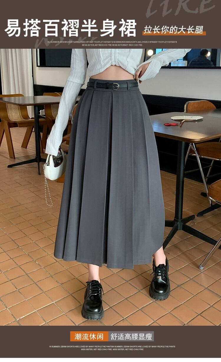 -ウエストスーツプリーツスカートレディース2024春と秋の新作ドレープ股間をカバーし、スリムなaラインミッドレングス大きな裾スカート スプリング 春物 オータム 秋物 7460086435881198 | framboise21
