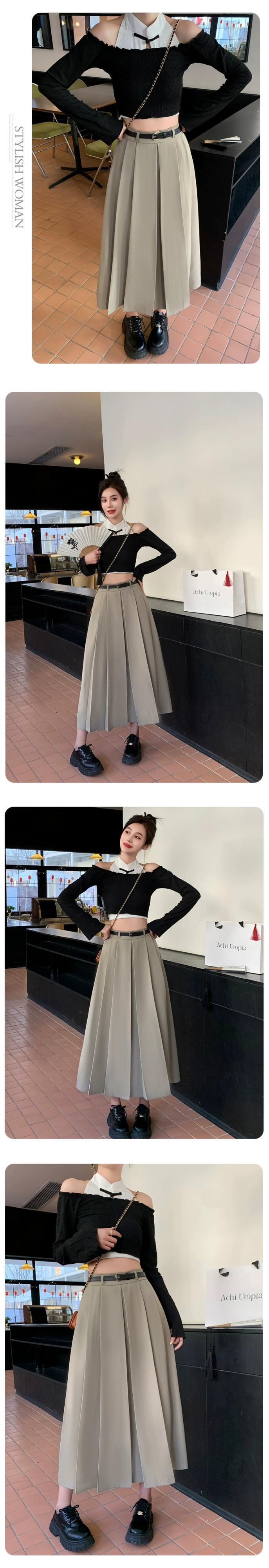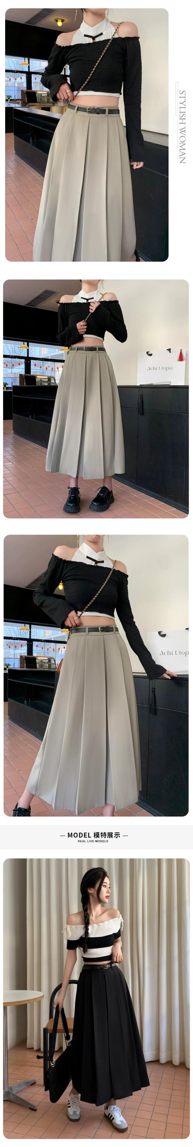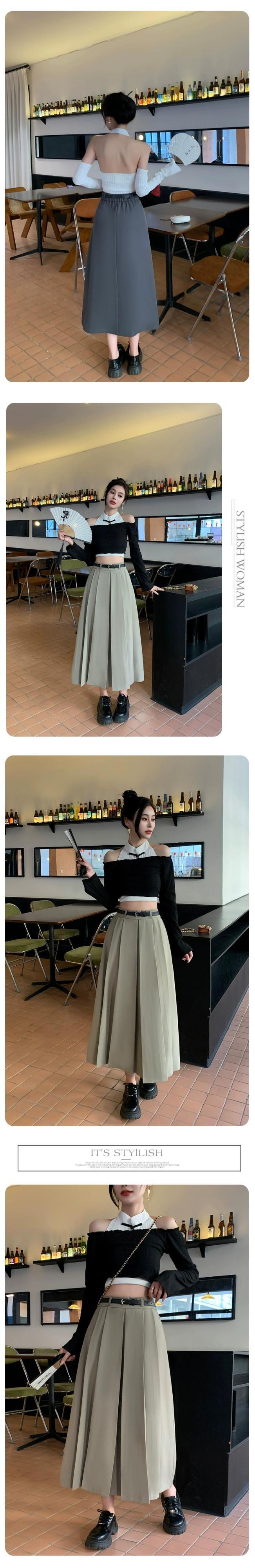 -ウエストスーツプリーツスカートレディース2024春と秋の新作ドレープ股間をカバーし、スリムなaラインミッドレングス大きな裾スカート スプリング 春物 オータム 秋物 7460086435881198 | framboise21