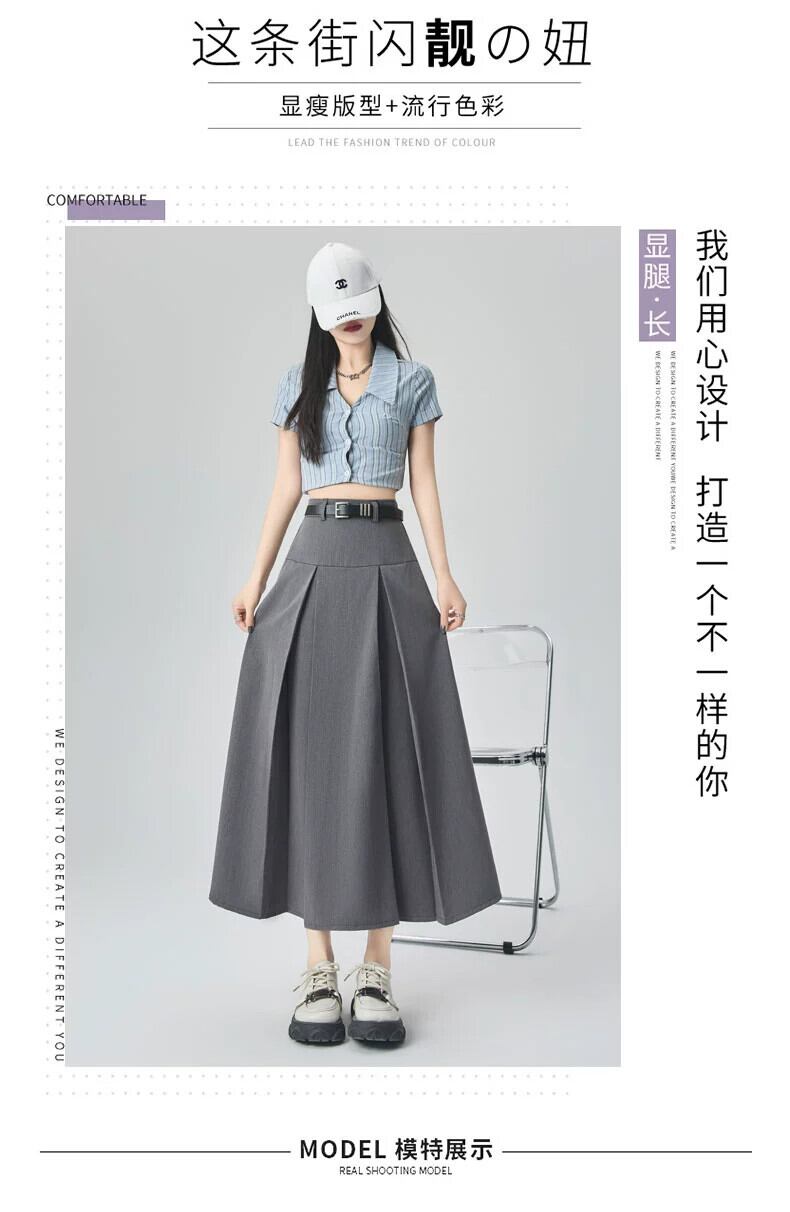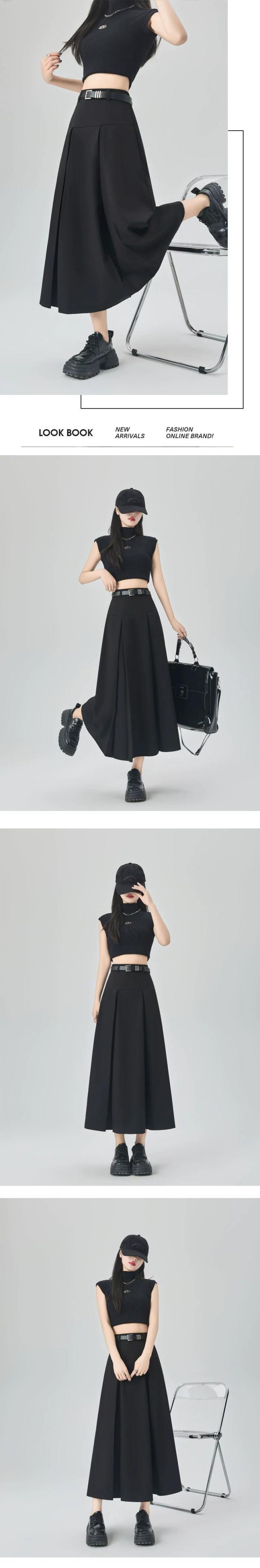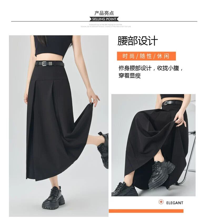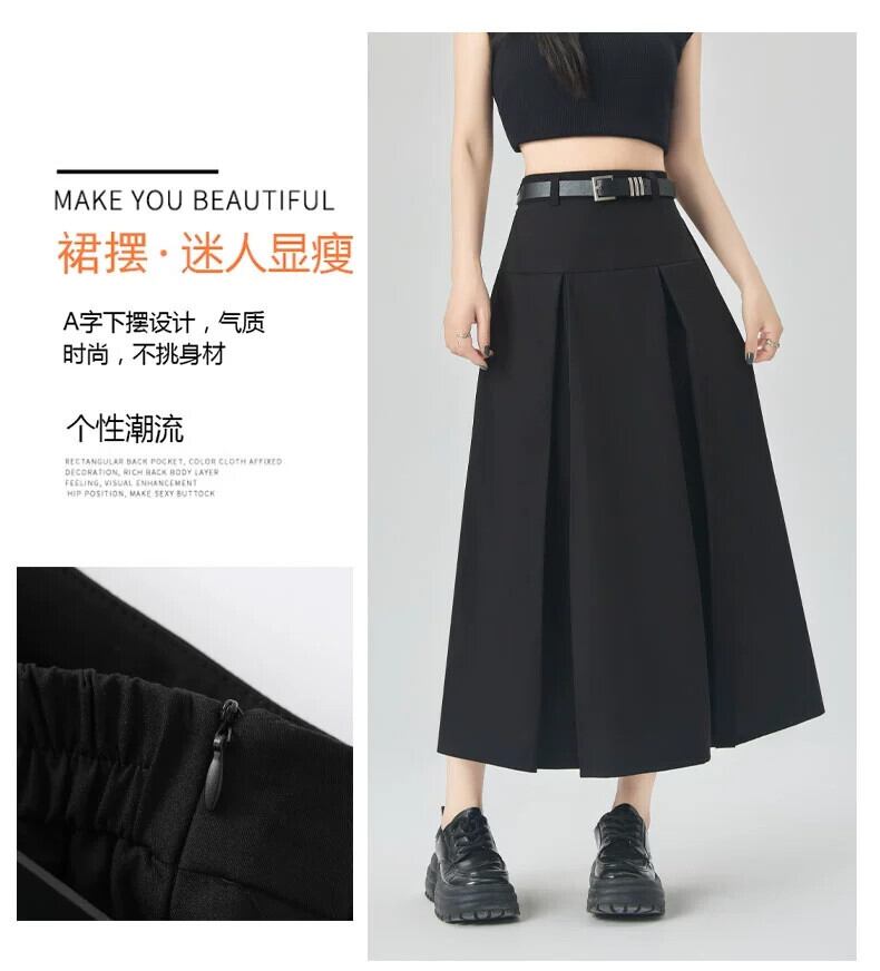 スタイルブラックスーツスカートレディース夏ハイウエストプリーツスカート股間をカバーし、スリムに見える大きな裾のミドル丈のAラインスカート サマー 夏物 7460033276071226 | framboise21