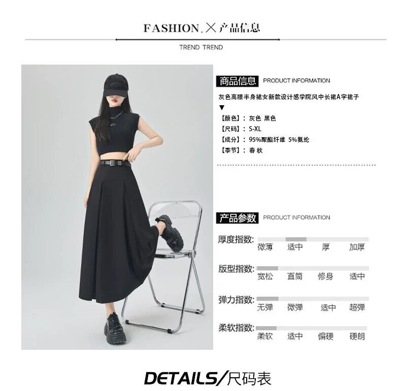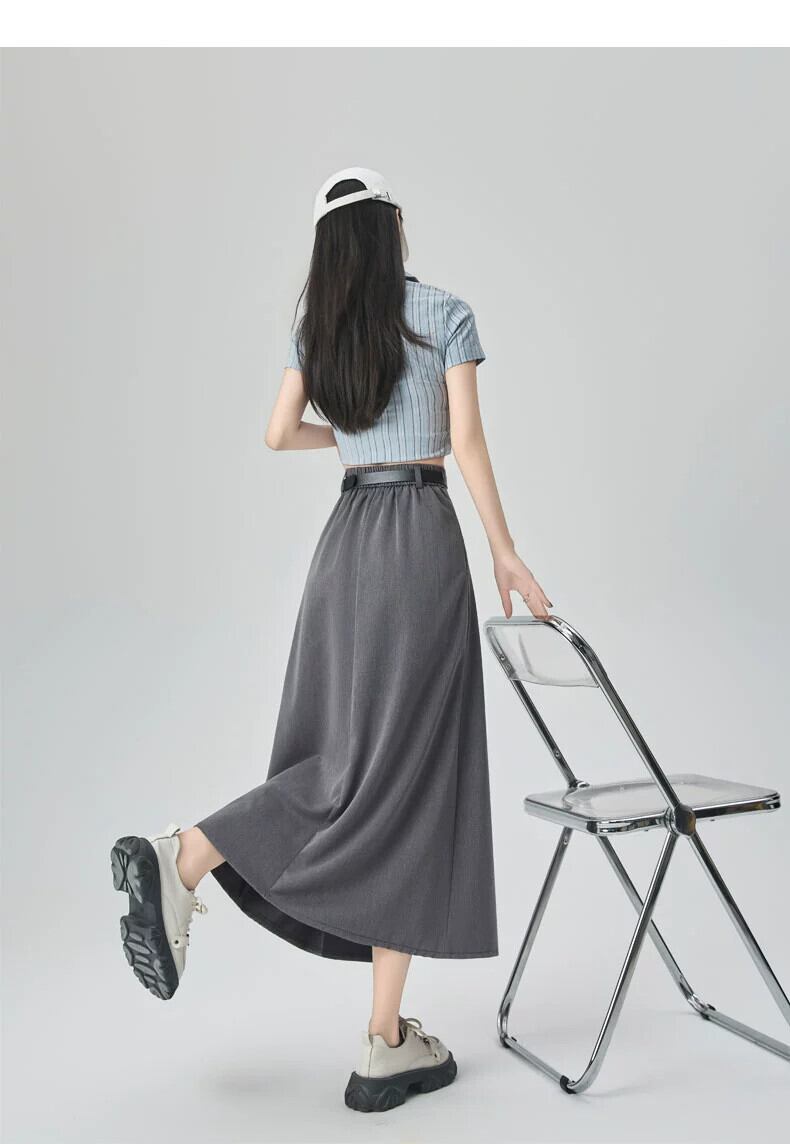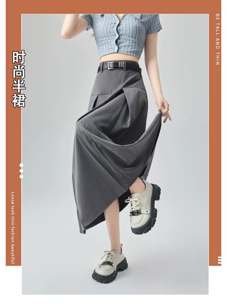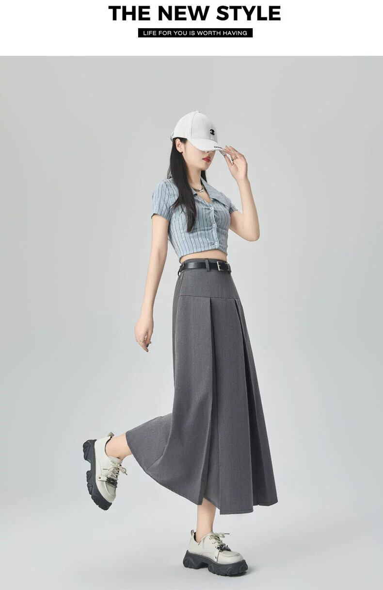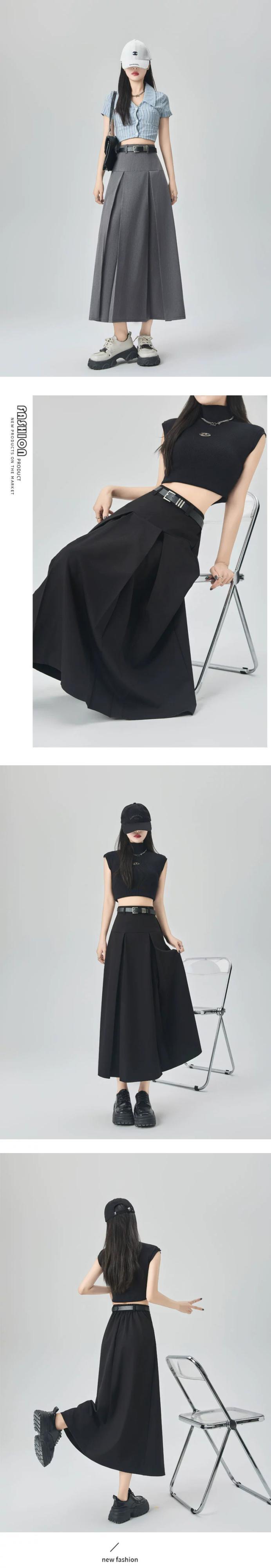 スタイルブラックスーツスカートレディース夏ハイウエストプリーツスカート股間をカバーし、スリムに見える大きな裾のミドル丈のAラインスカート サマー 夏物 7460033276071226 | framboise21